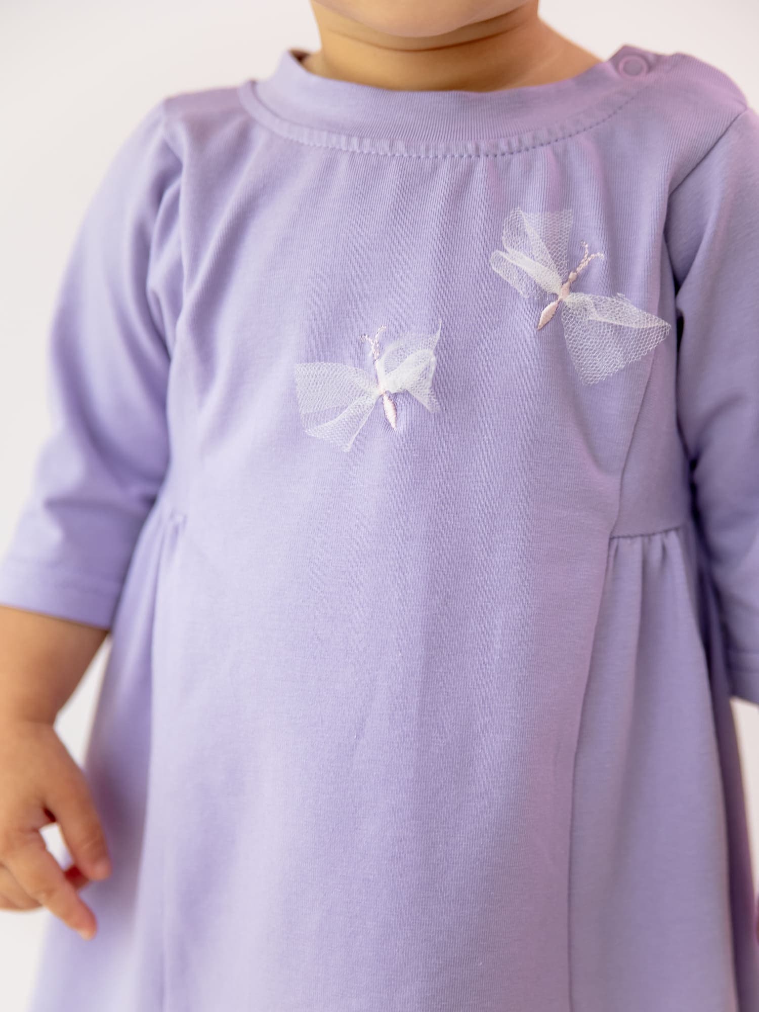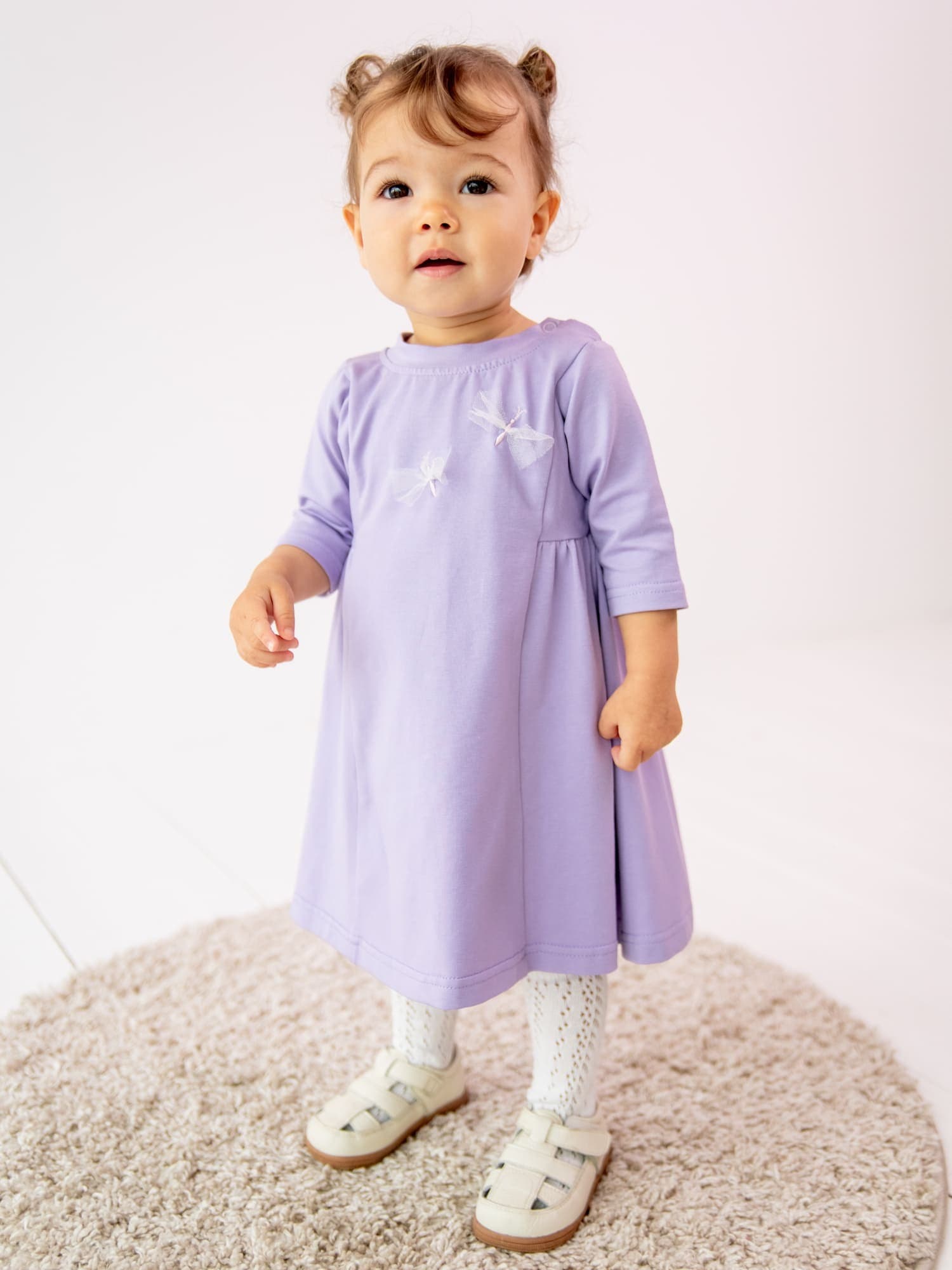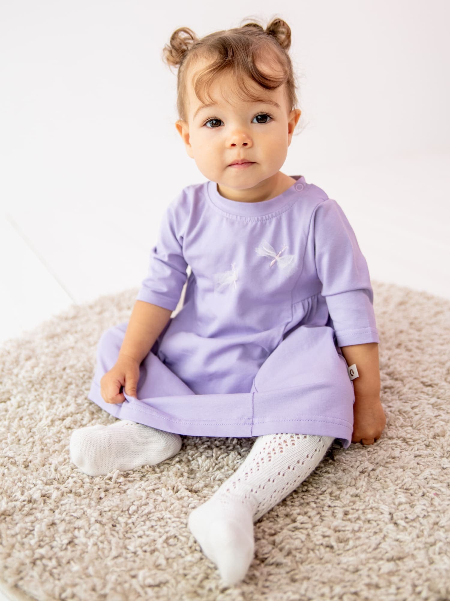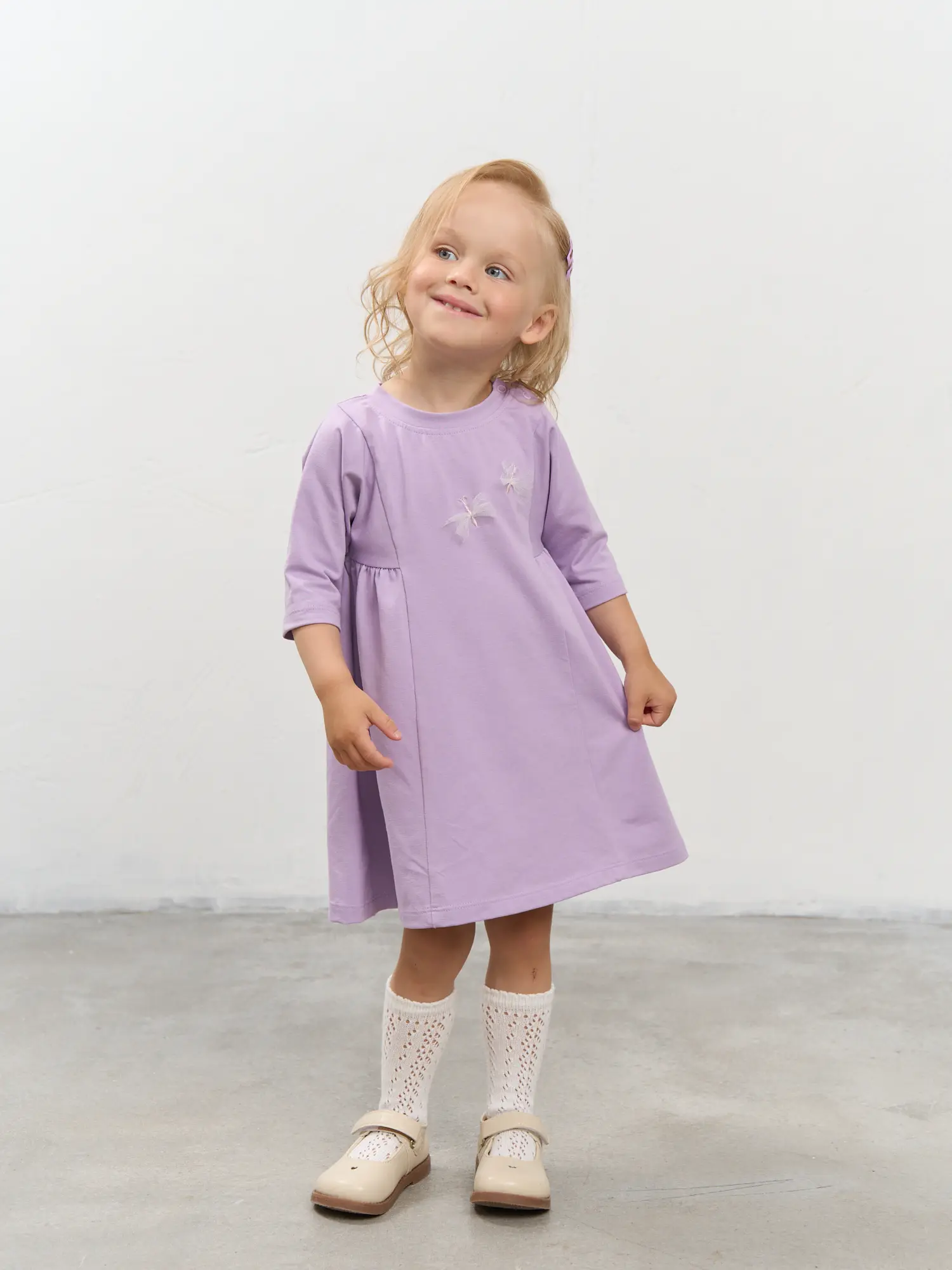 Очень понравилось платье, особенно посадка. У вас на фото малышка, я сомневалась как будет сидеть на моей 4х летней дочке, взяла 116 размер на рост 110. Очень красиво, удобно. Стрекозы очень ненавязчивы и дочке понравились. Рекомендую к покупке. В садик ходить - очень удобно. Не мнется.