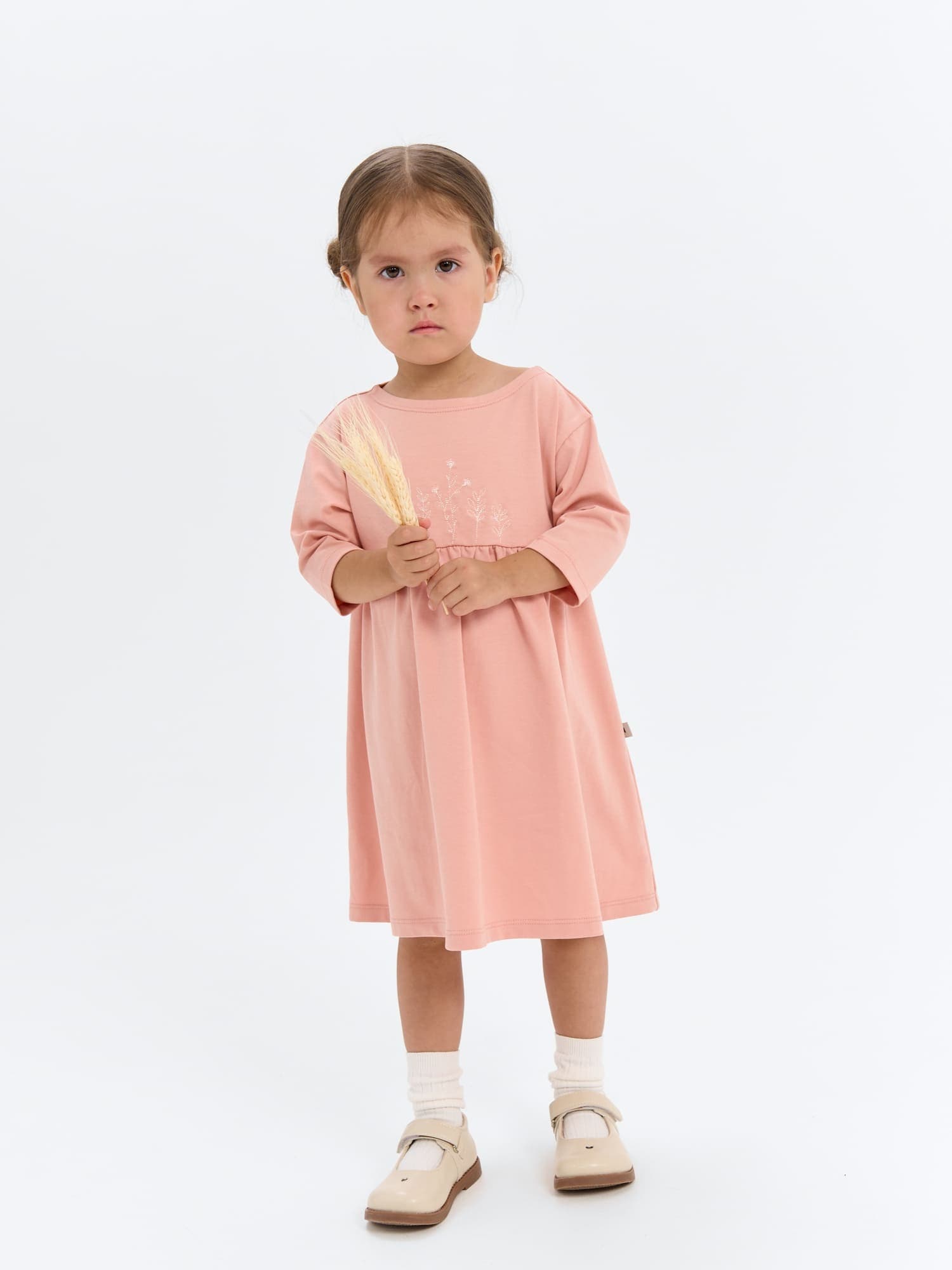 Платье из мягкого трикотажного полотна с рукавом 3/4 – удобная и нарядная модель для малышек.
