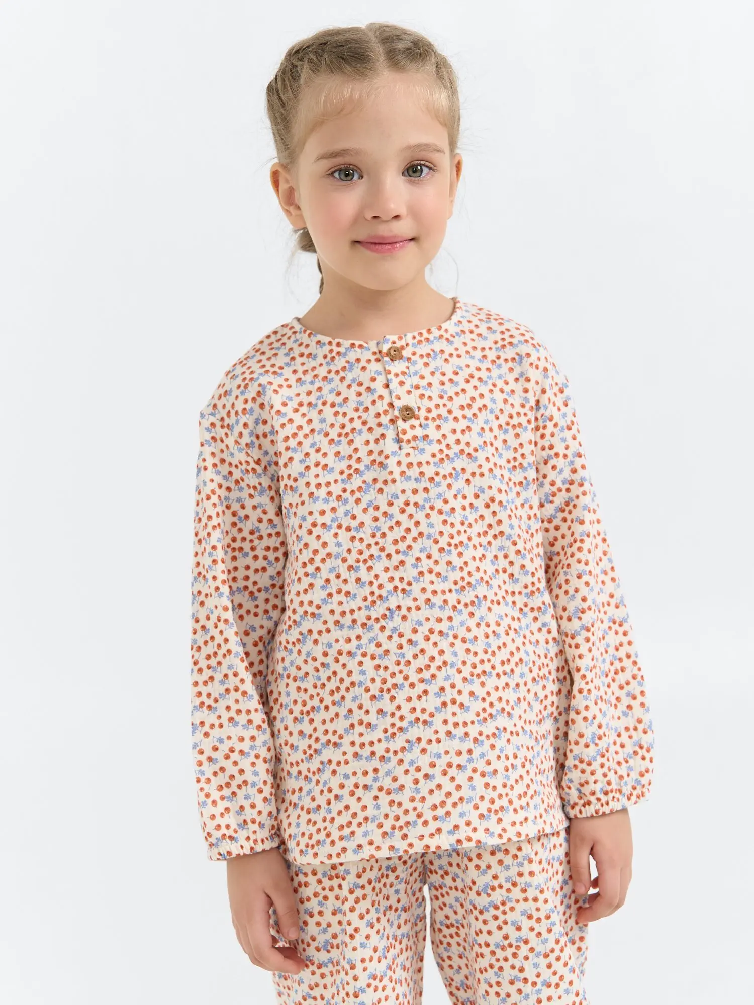 Очень понравилась эта рубашка! Дочка носит ее с брюками кюлотами и со светлыми вельветовыми брючками. За счет рукава на резиночке можно брать с запасом. Очень красивый, ненавязчивый рисунок!