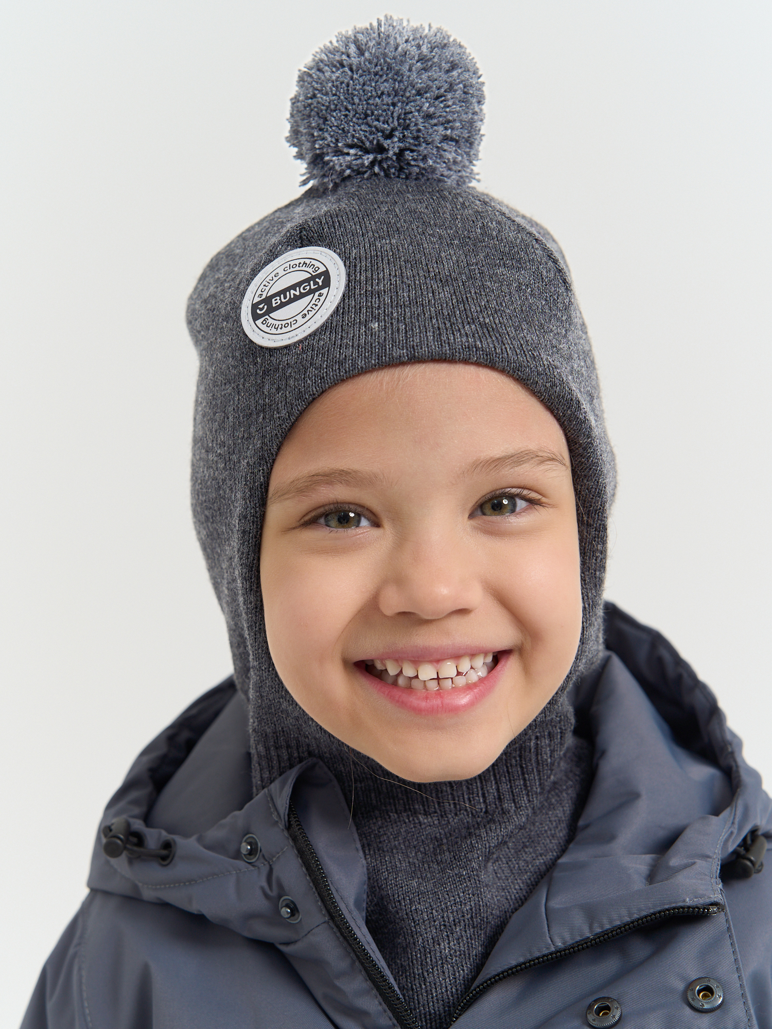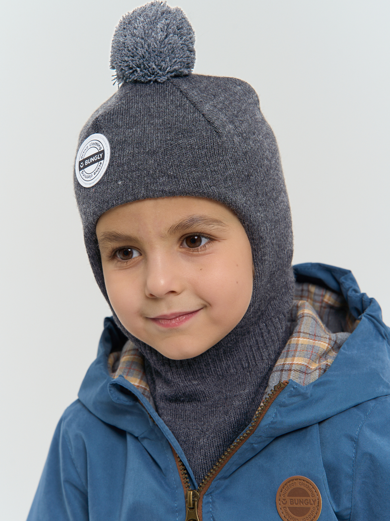 Детская шапка-шлем с помпоном на хлопковом подкладе.