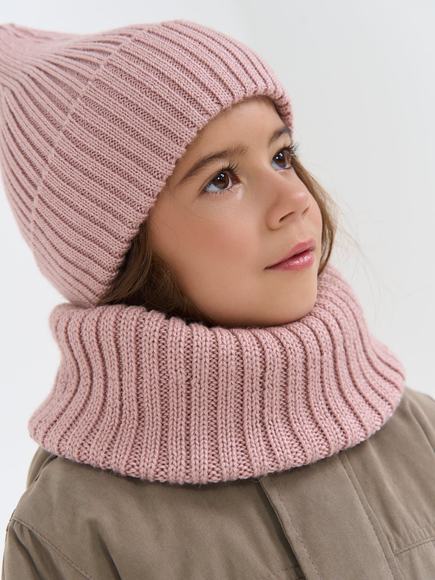 Снуд из смесовой шерсти "Пудра" вертикальная вязка