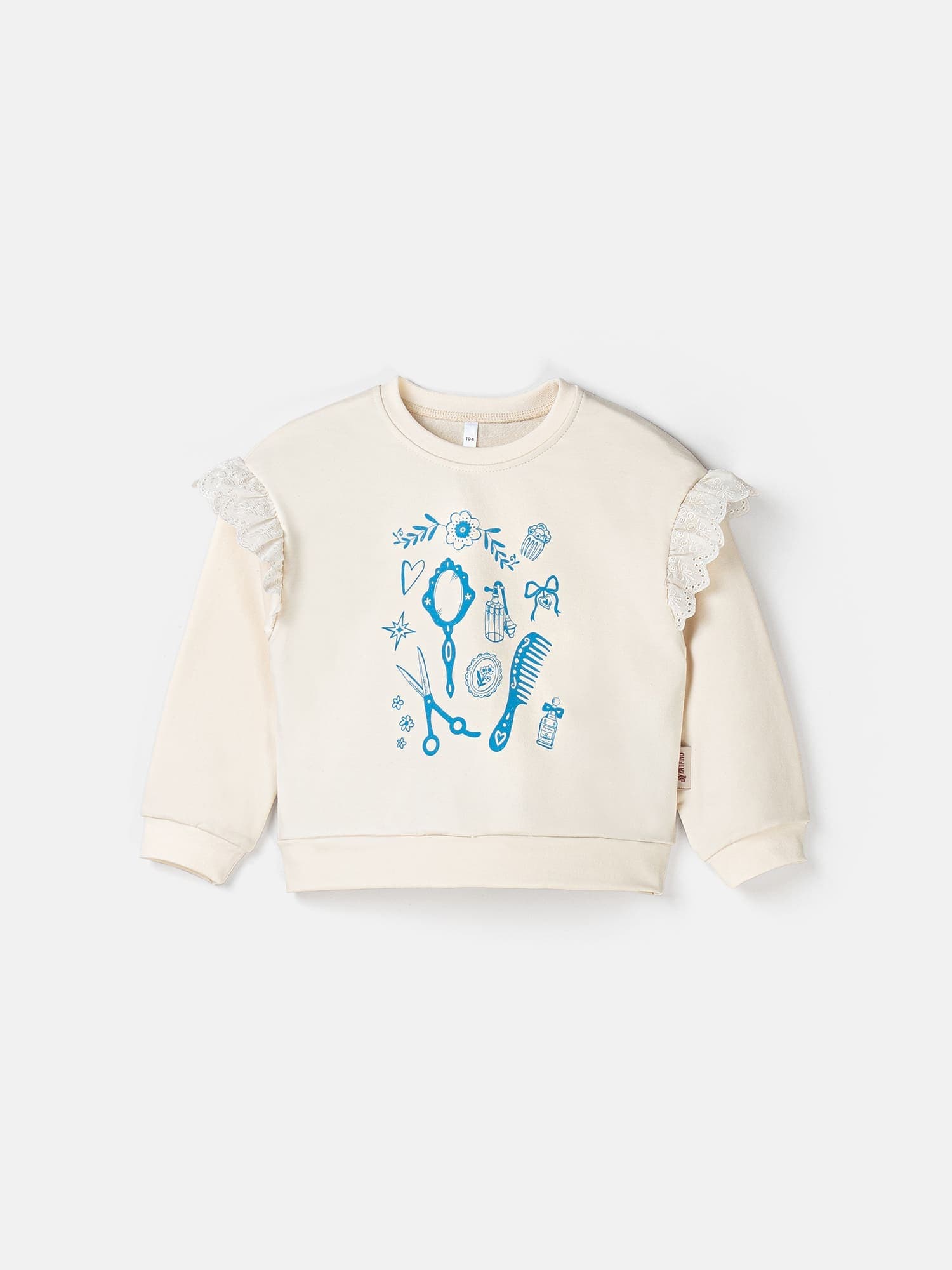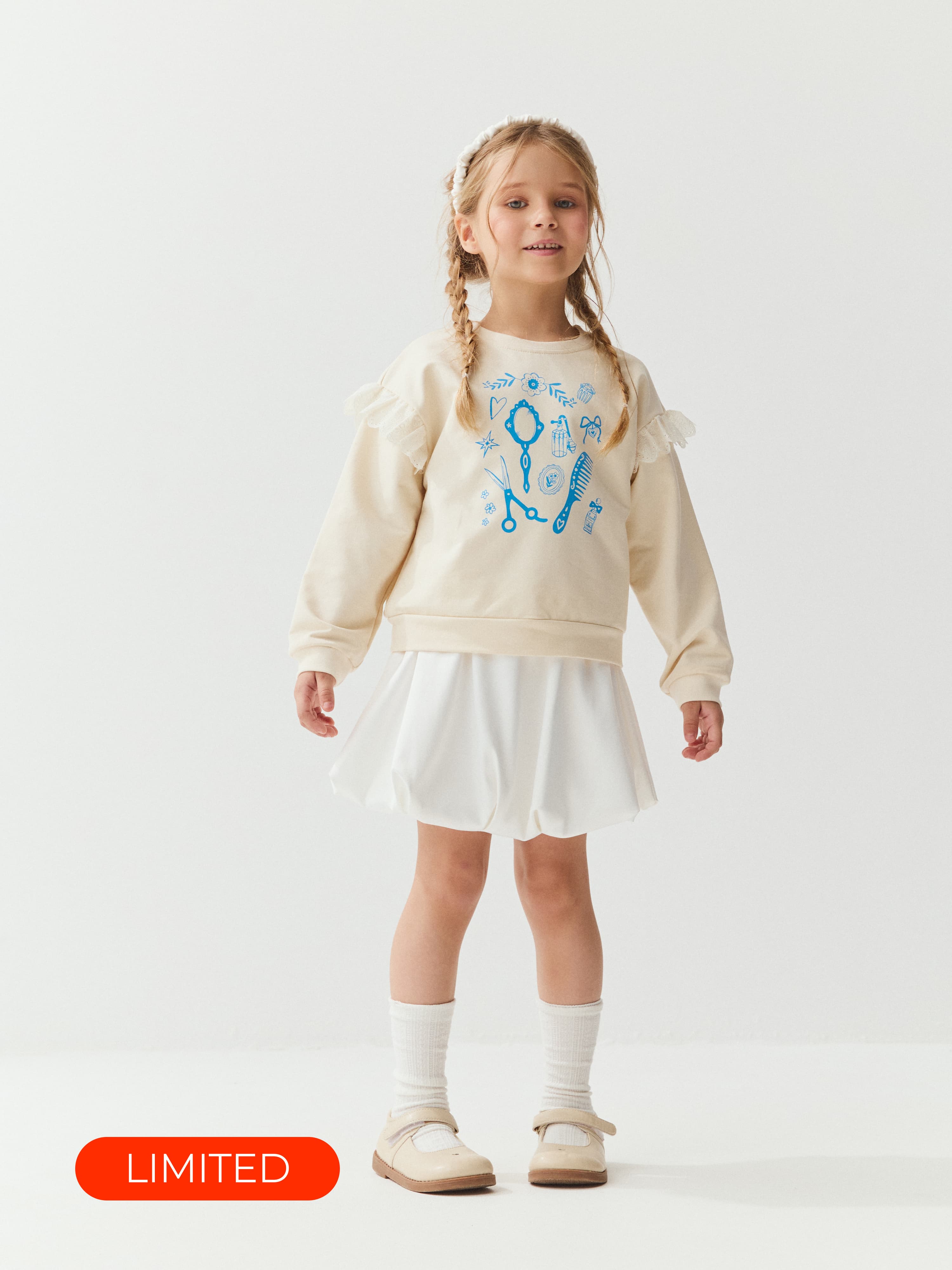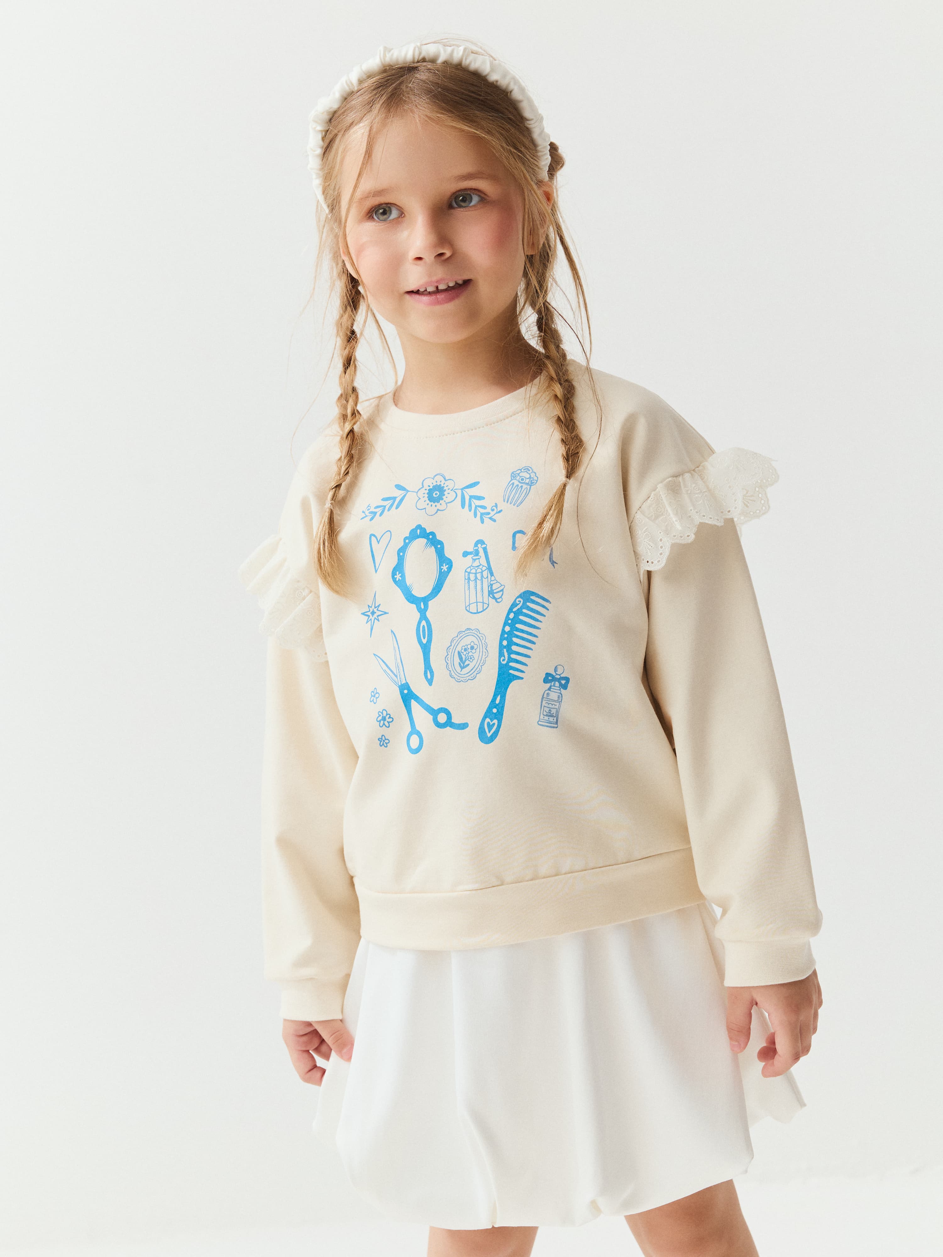 Нежный свитшот с крылышками для девочек из хлопкового трикотажа с мелкими петельками на изнанке.