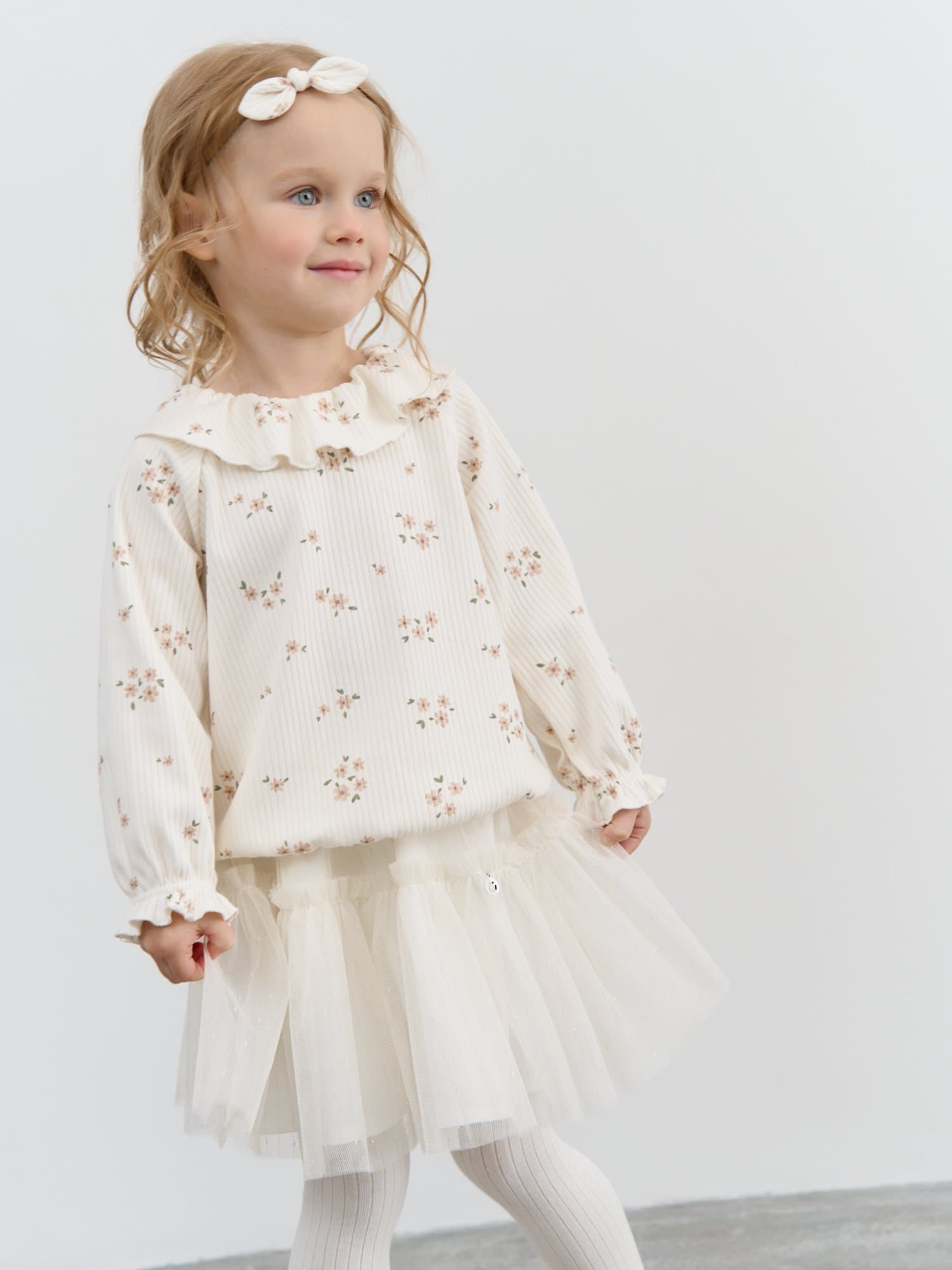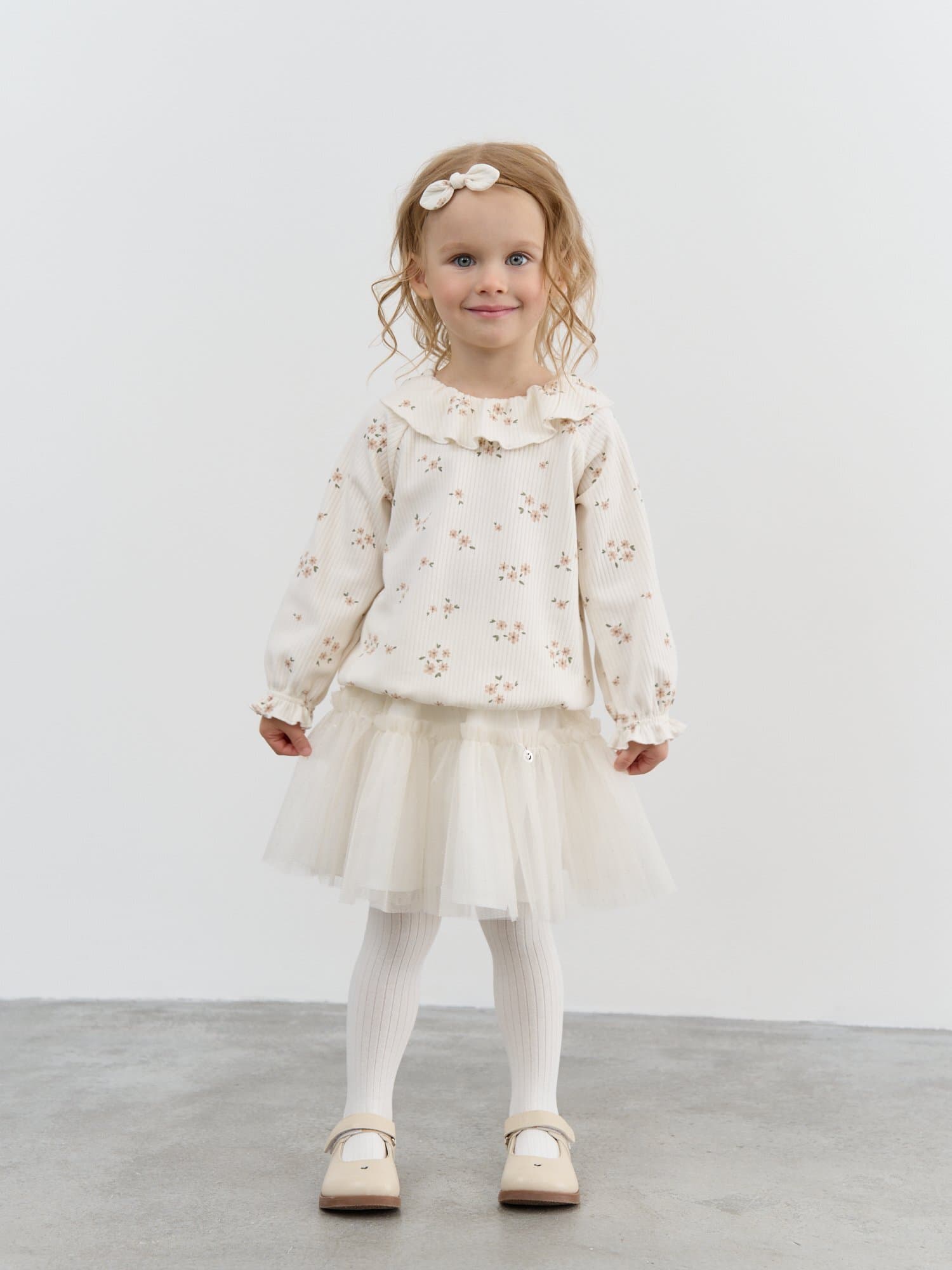 Верх – воздушный фатин с объёмной оборкой, создаёт праздничное настроение и красиво смотрится в движении.