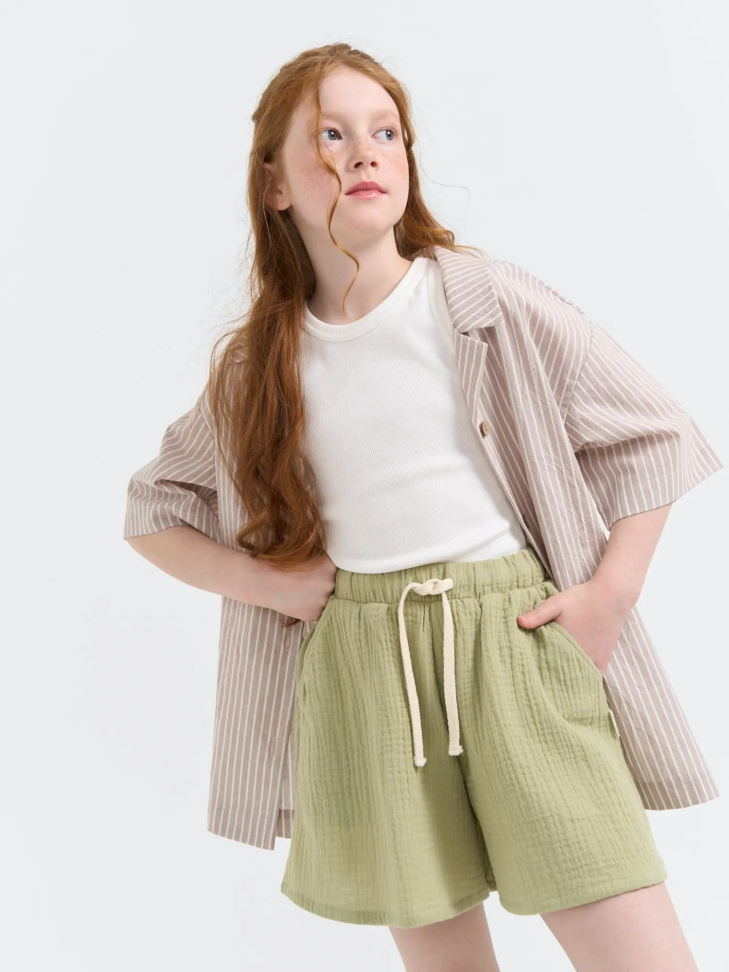 Свободная юбка-шорты из нежного струящегося муслина идеальна для жаркой погоды.
