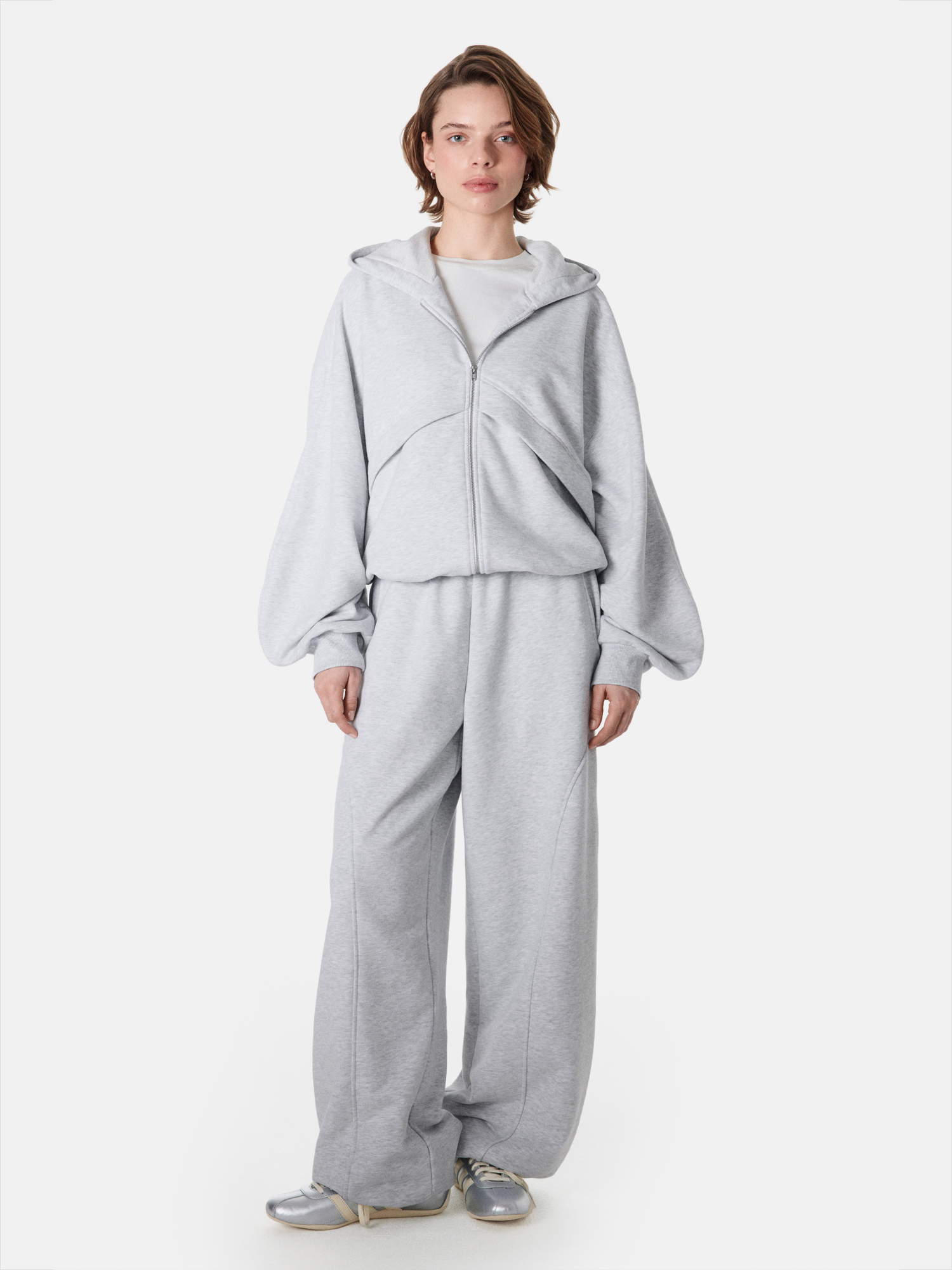 Утяжка штанин на резинку с фиксатором позволяет играть с силуэтом.
