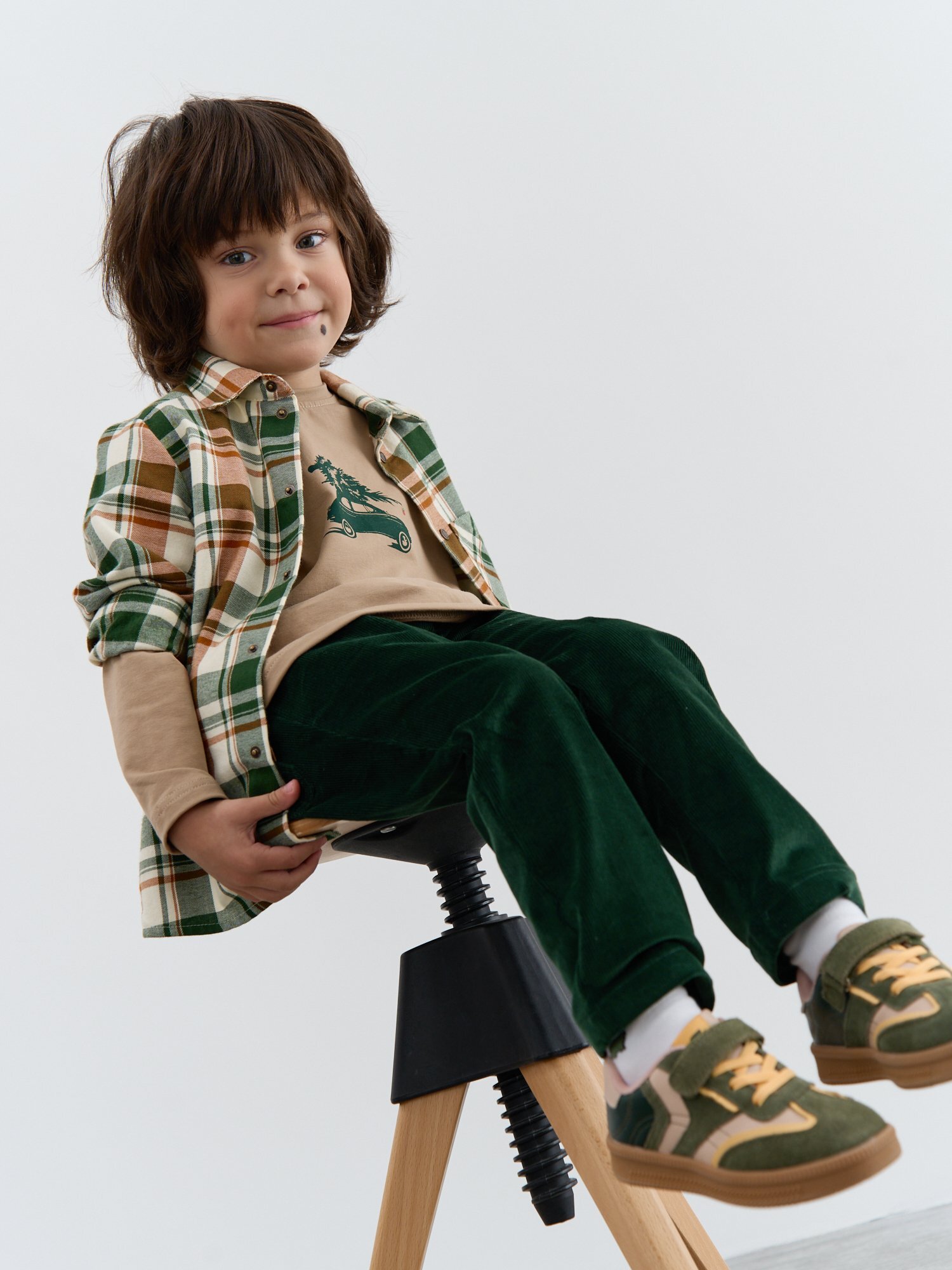 Рубашка из мягкой фланели с длинным рукавом – комфортный вариант для садика, прогулок и семейных встреч.