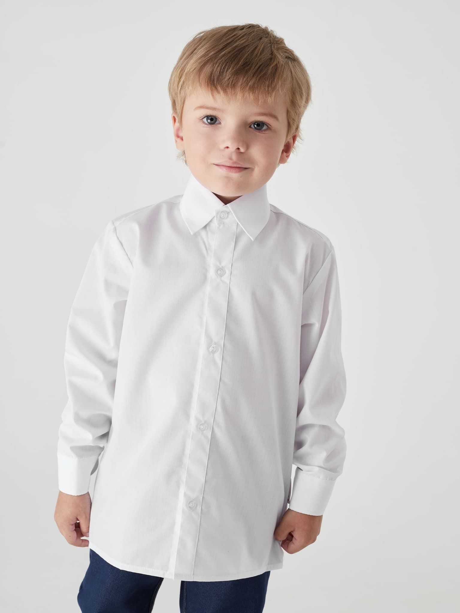 Отличная классическая рубашка! Жалко не на кнопках, ребенок на физкультуру очень долго из за этого переодевается