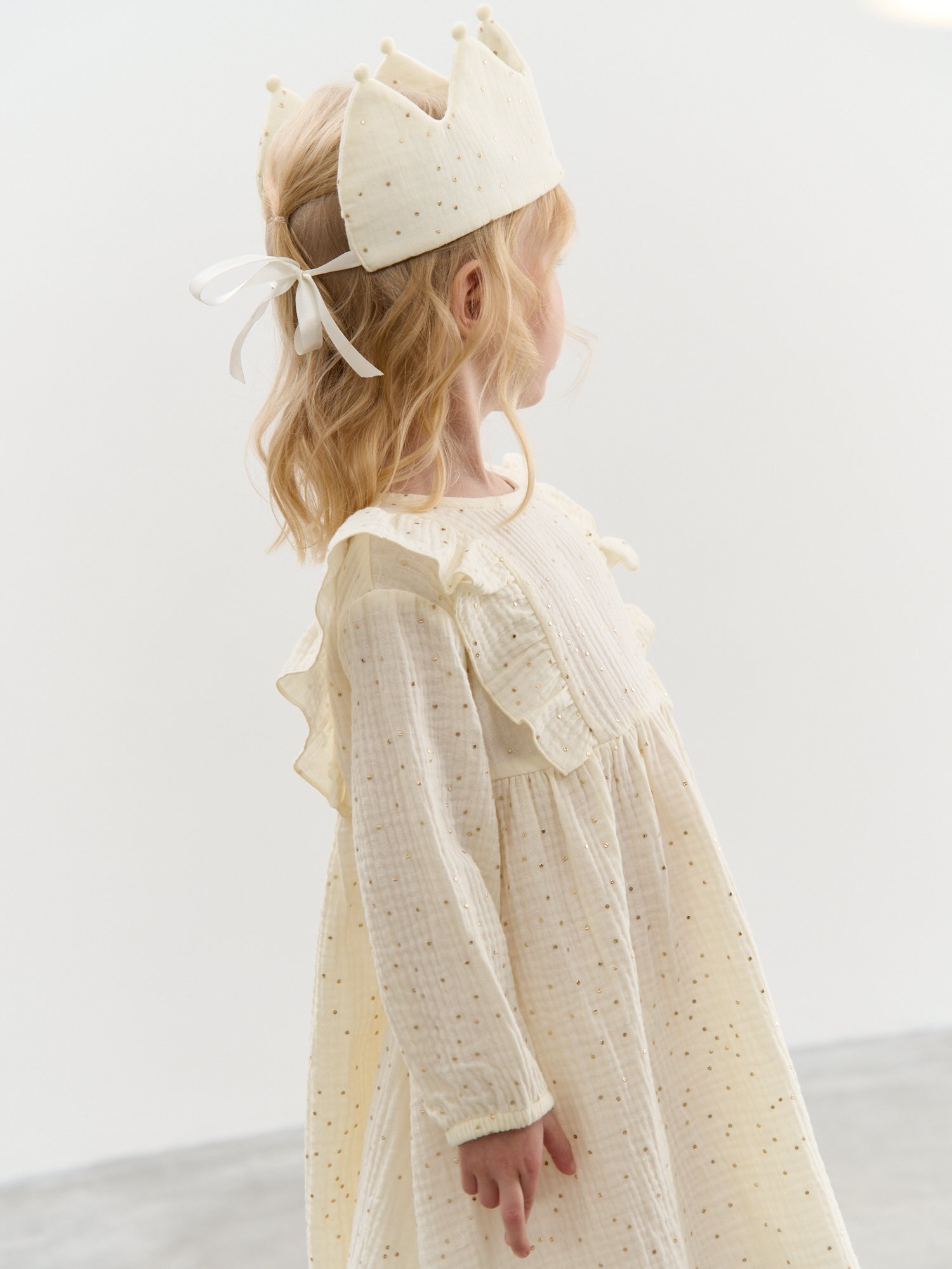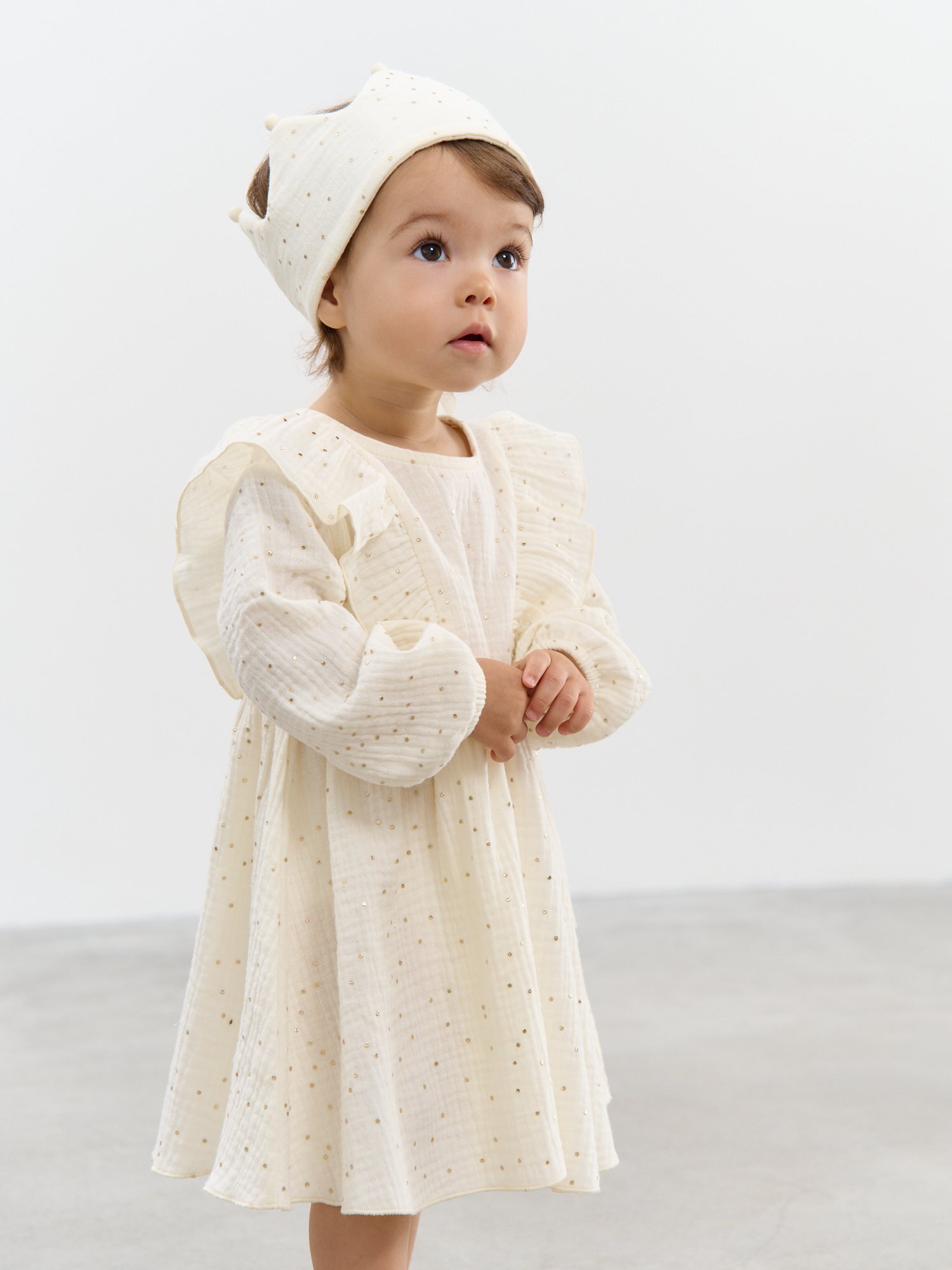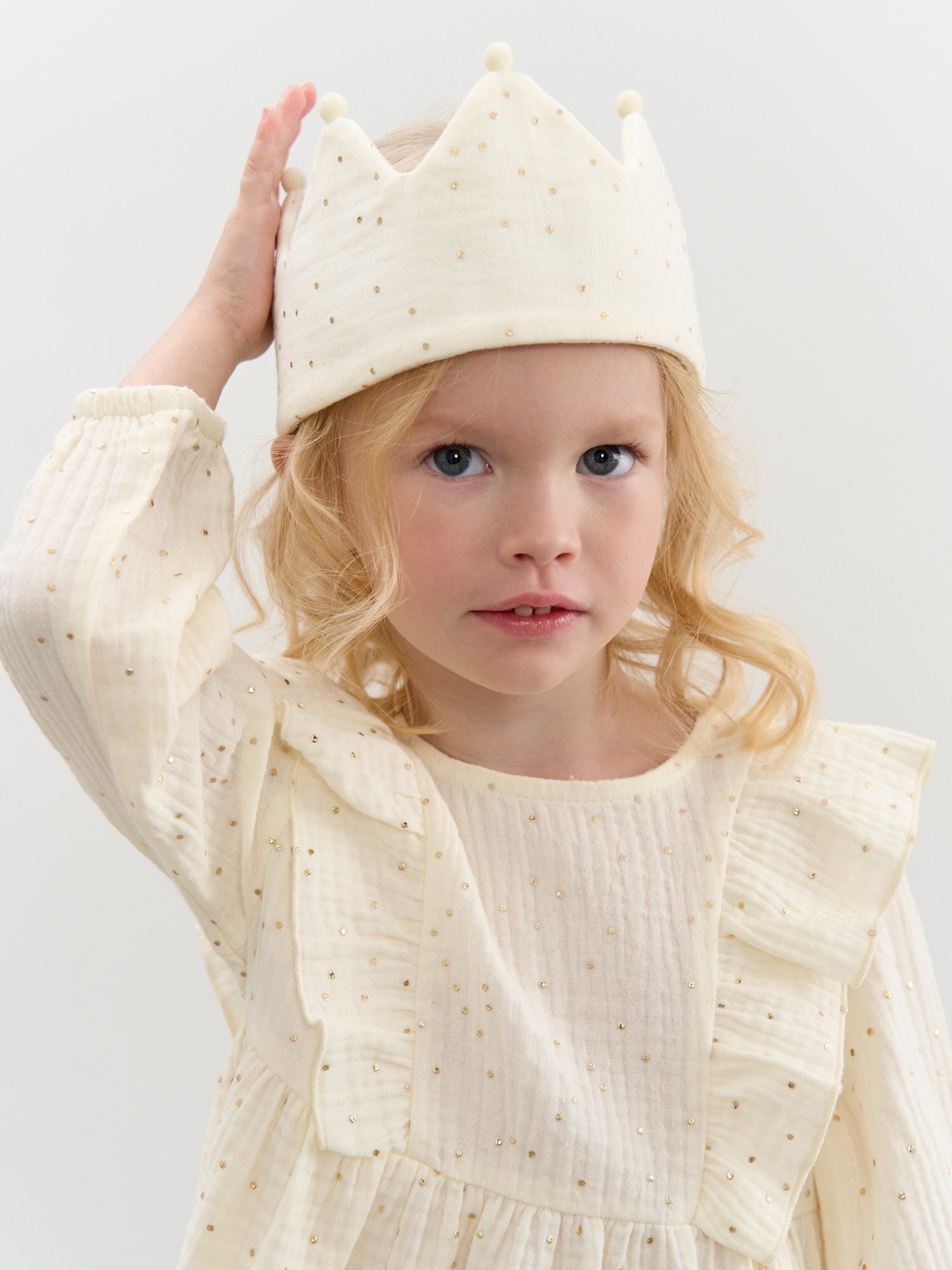 Изготовлена из нежного муслина, украшена велюровыми пампушками.