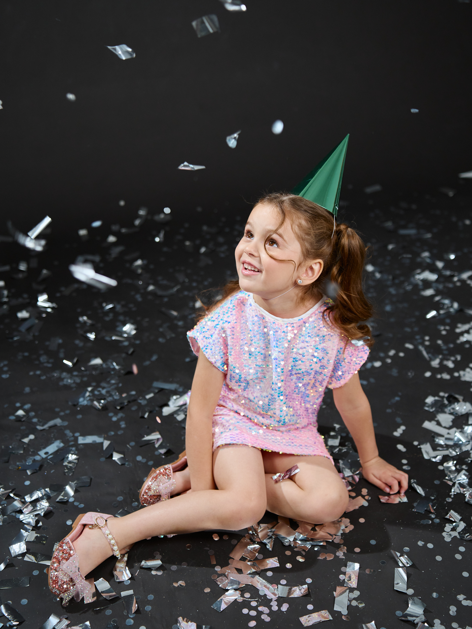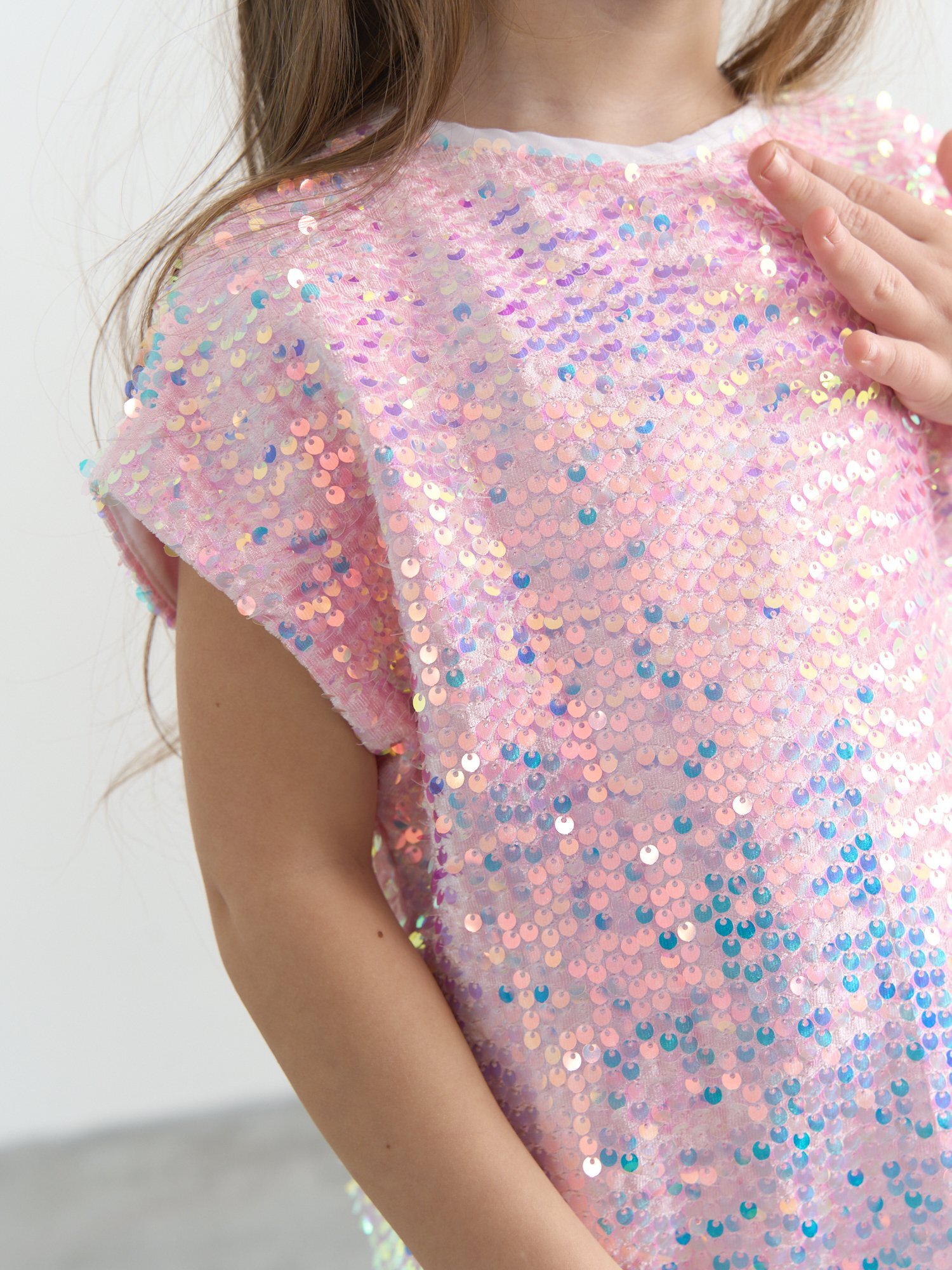 Мерцающие пайетки добавляют образу игривости и настроения.