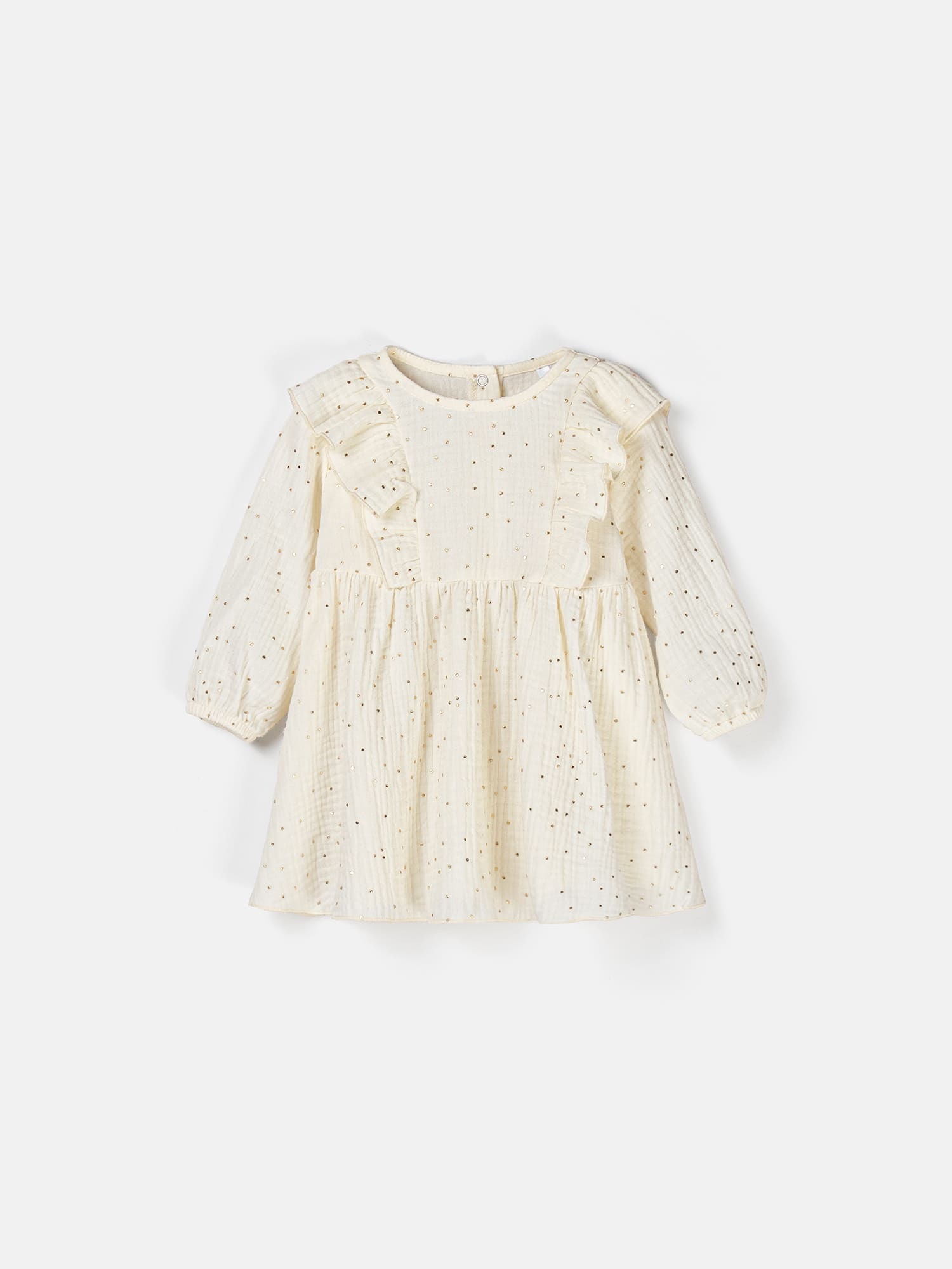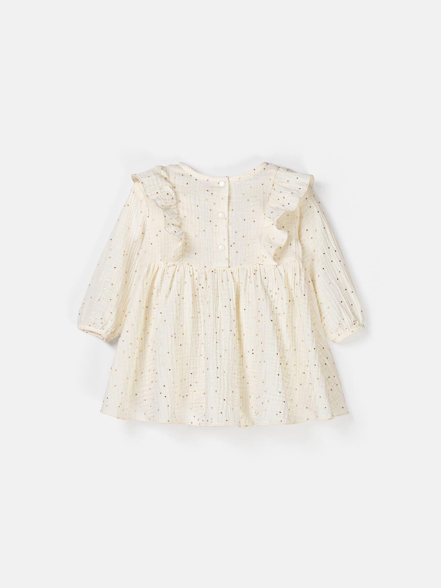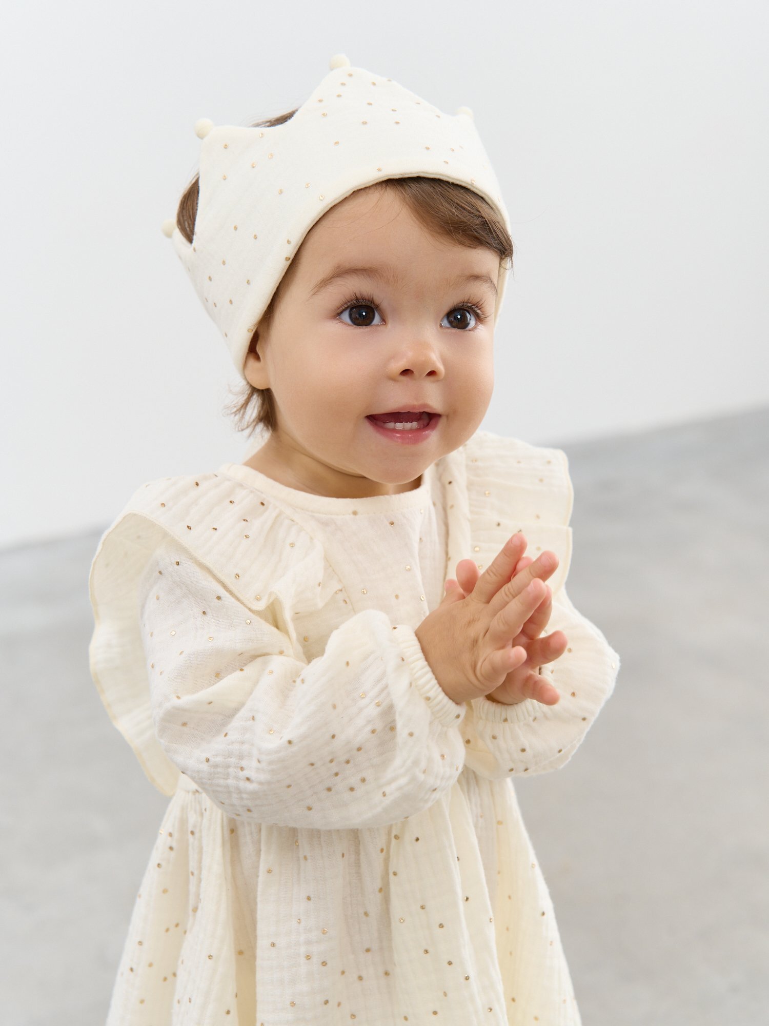 Комфортный крой для свободы движений. Длинные рукава с игривыми крылышками. Эластичная резинка позволяет легко собрать рукава для мытья рук или занятий творчеством.