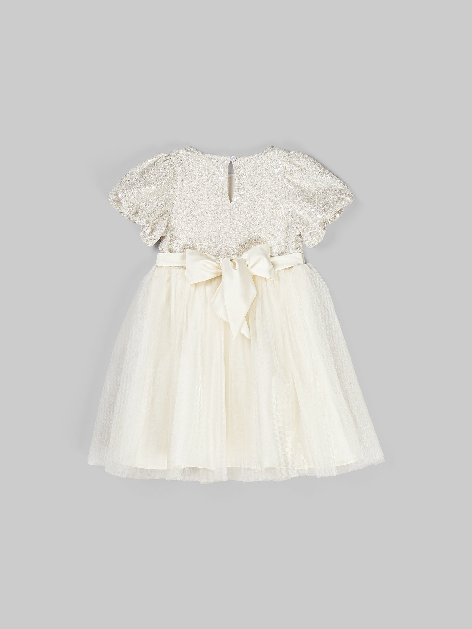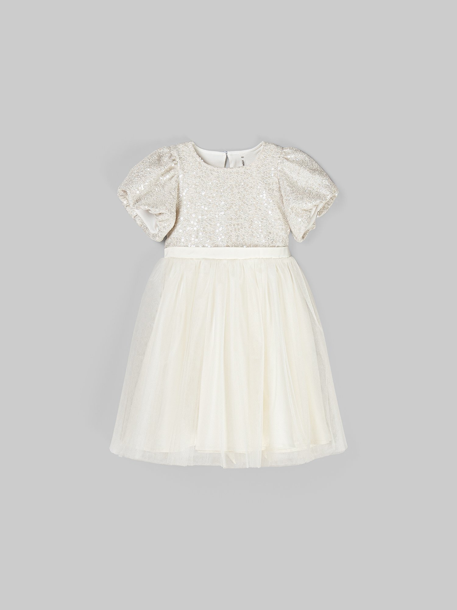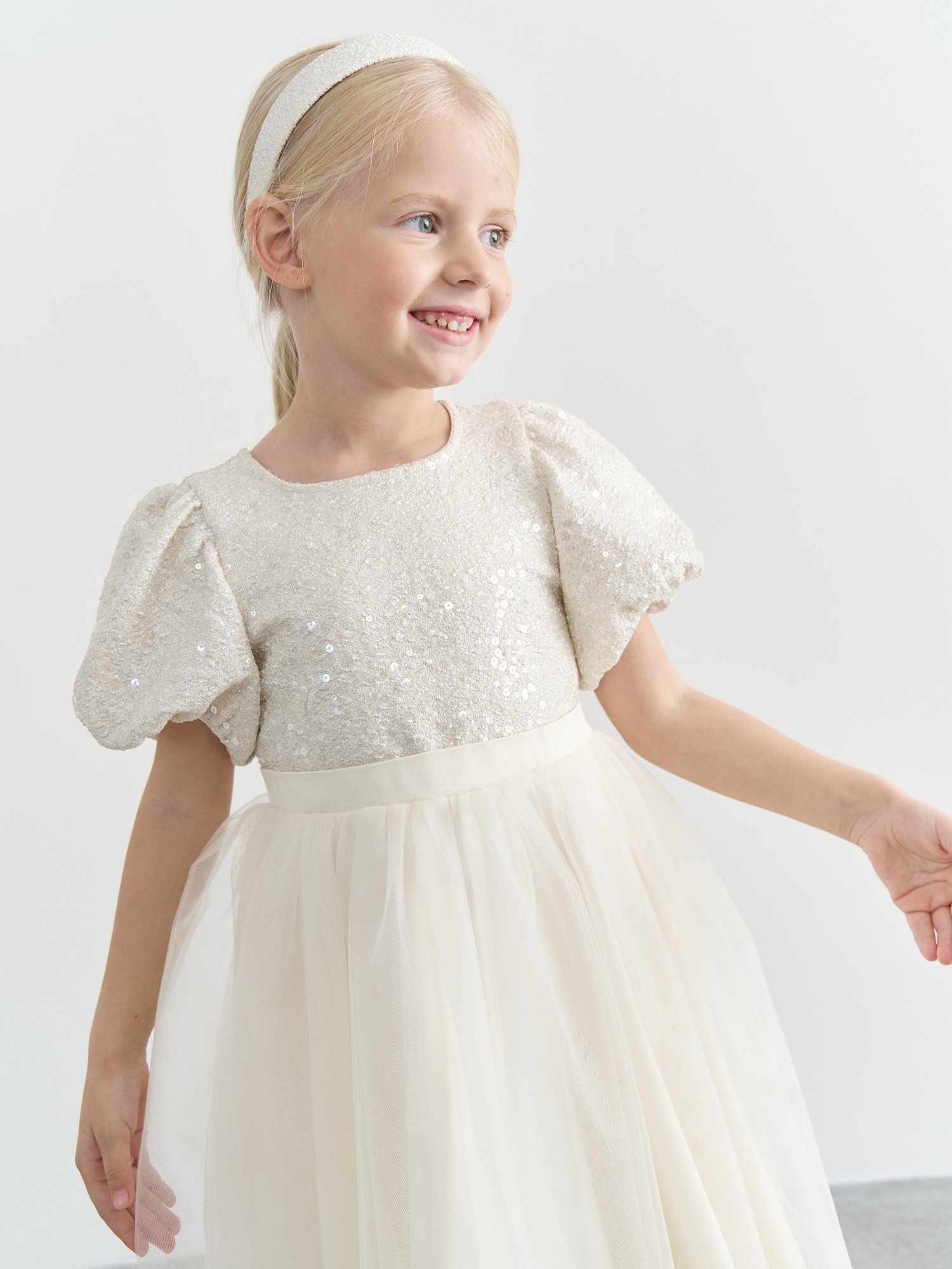 Верх - трикотаж с пайетками, фатин; подкладка – кулирная гладь, атлас