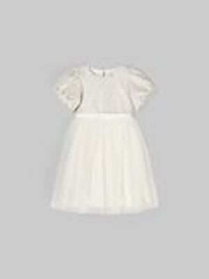 Основной материал – нежный хлопковый трикотаж с добавлением лайкры для эластичности. Рукава и пышная юбка из воздушного фатина.