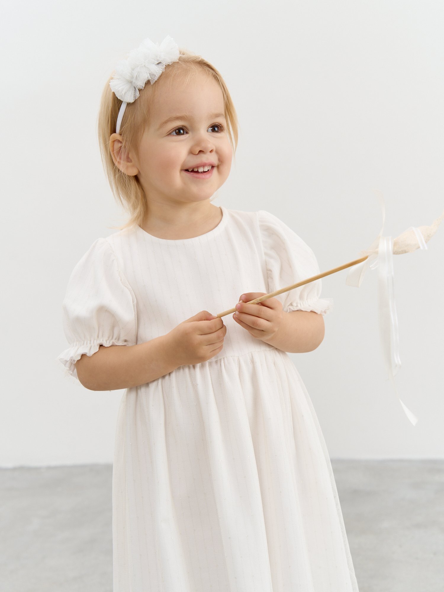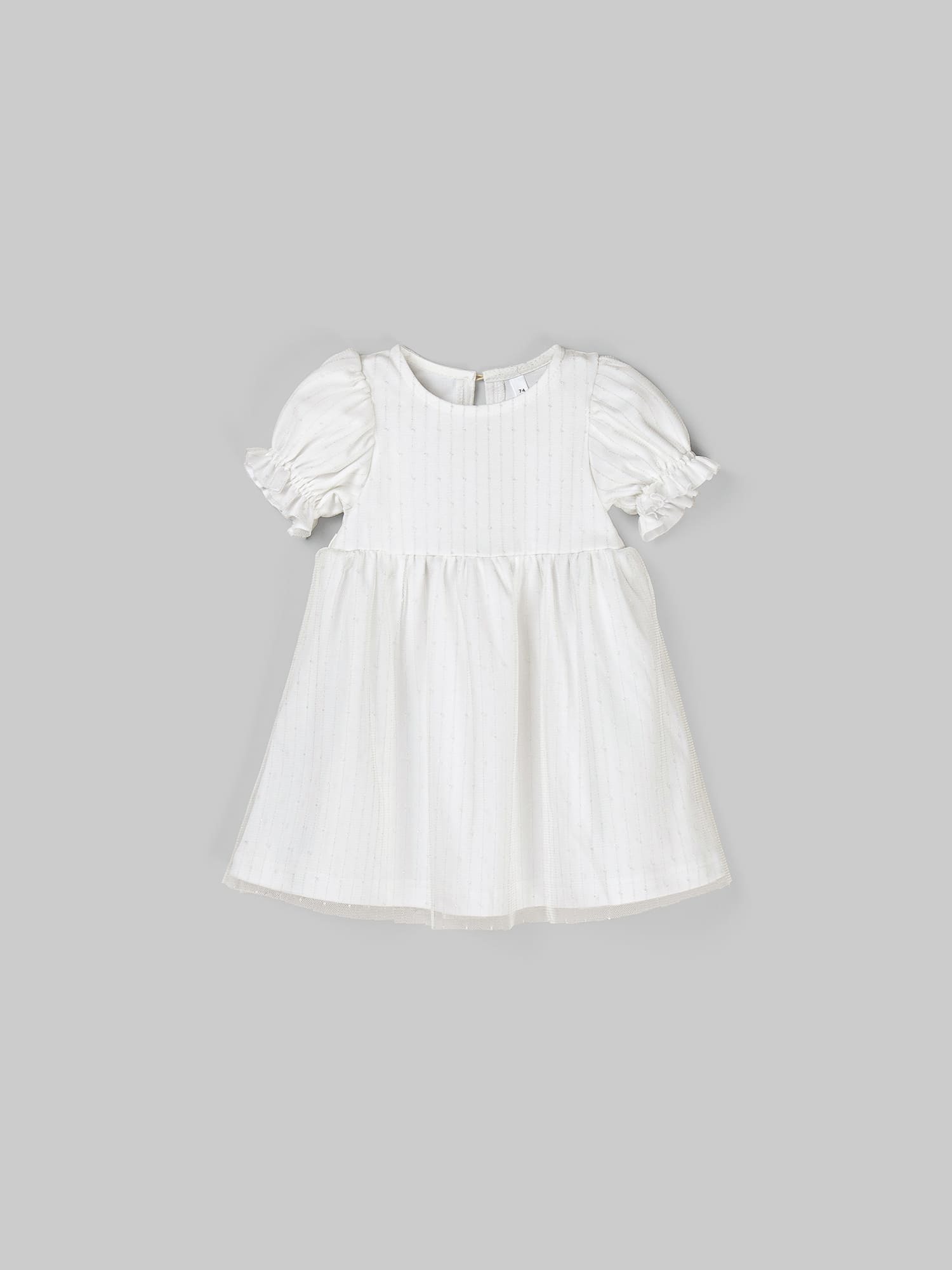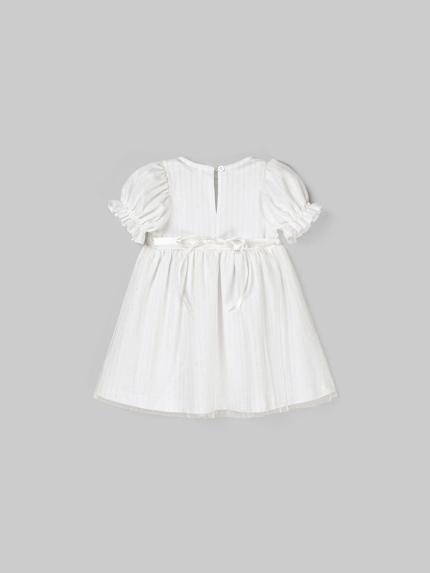 Дополнительный слой из нежного фатина на рукавах и юбке.
