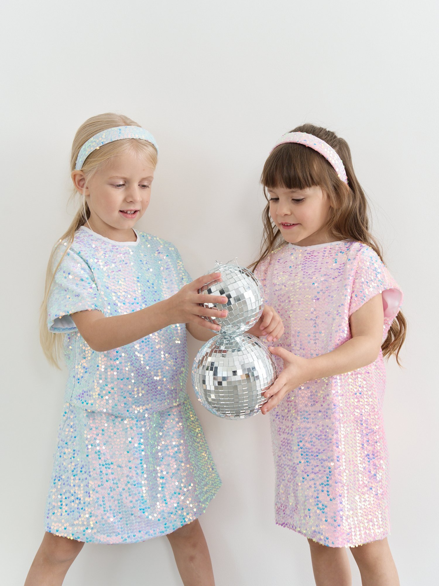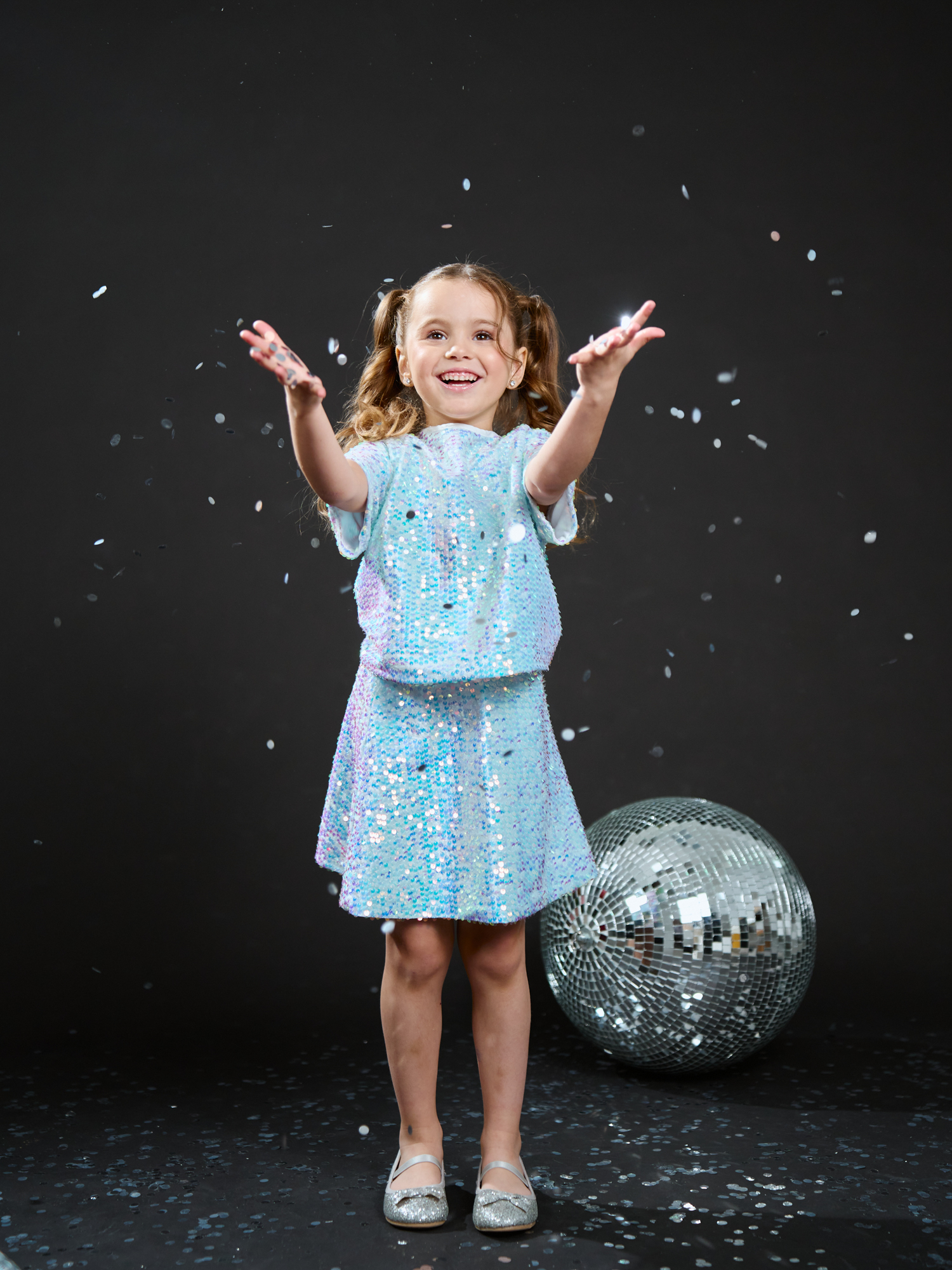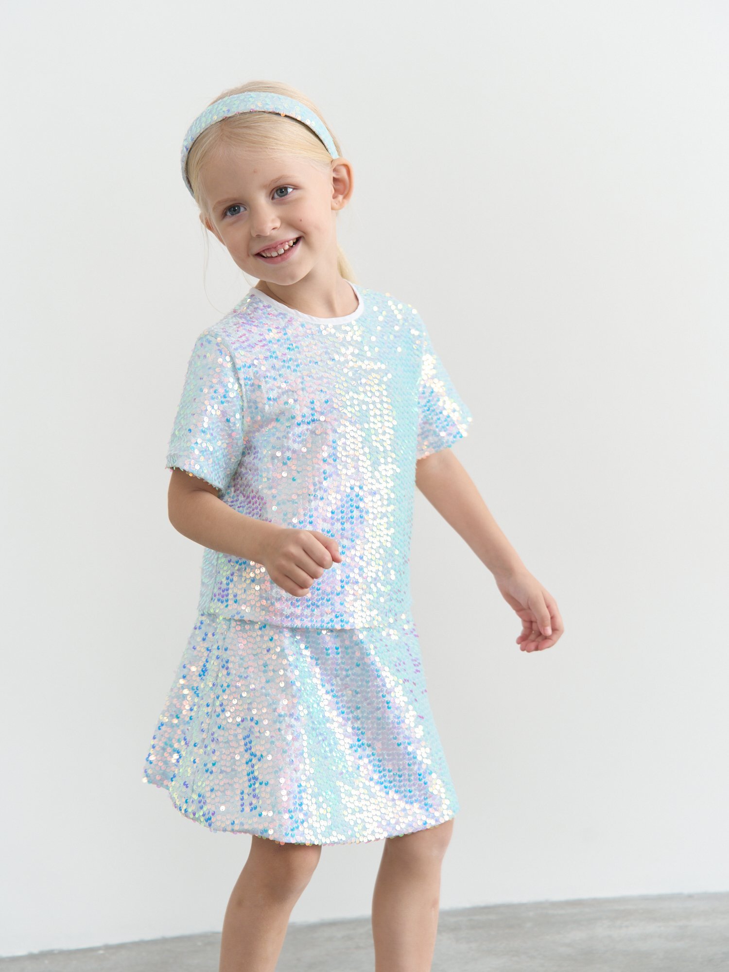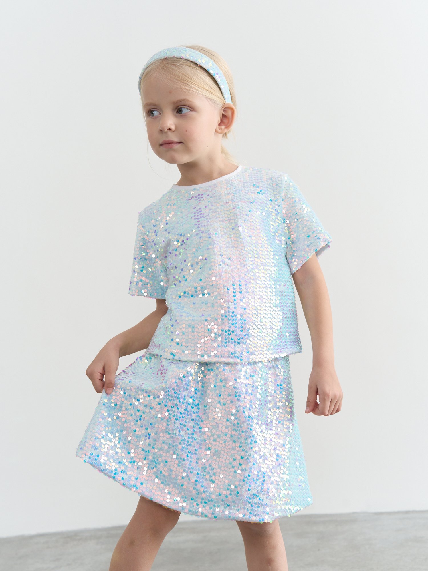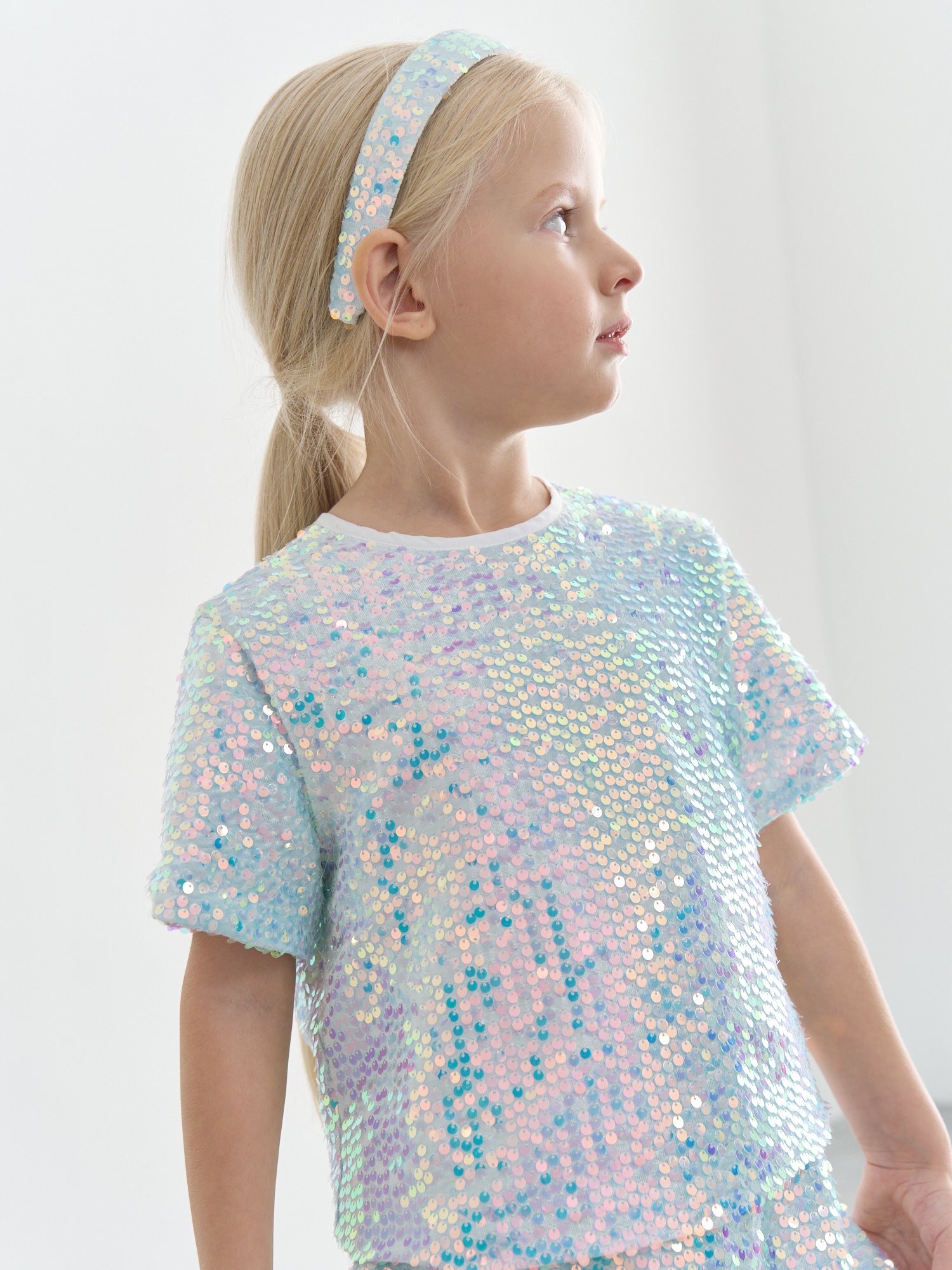 Нарядный топ из мягкого бархата, украшенного мерцающими пайетками, станет любимой вещью в гардеробе вашей модницы!