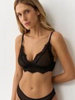 Женственный бралетт без косточек сочетает красоту и комфорт. Мягкая треугольная чашечка обеспечивает естественную поддержку, а эластичное кружево идеально повторяет изгибы тела, не сдавливая и не натирая.