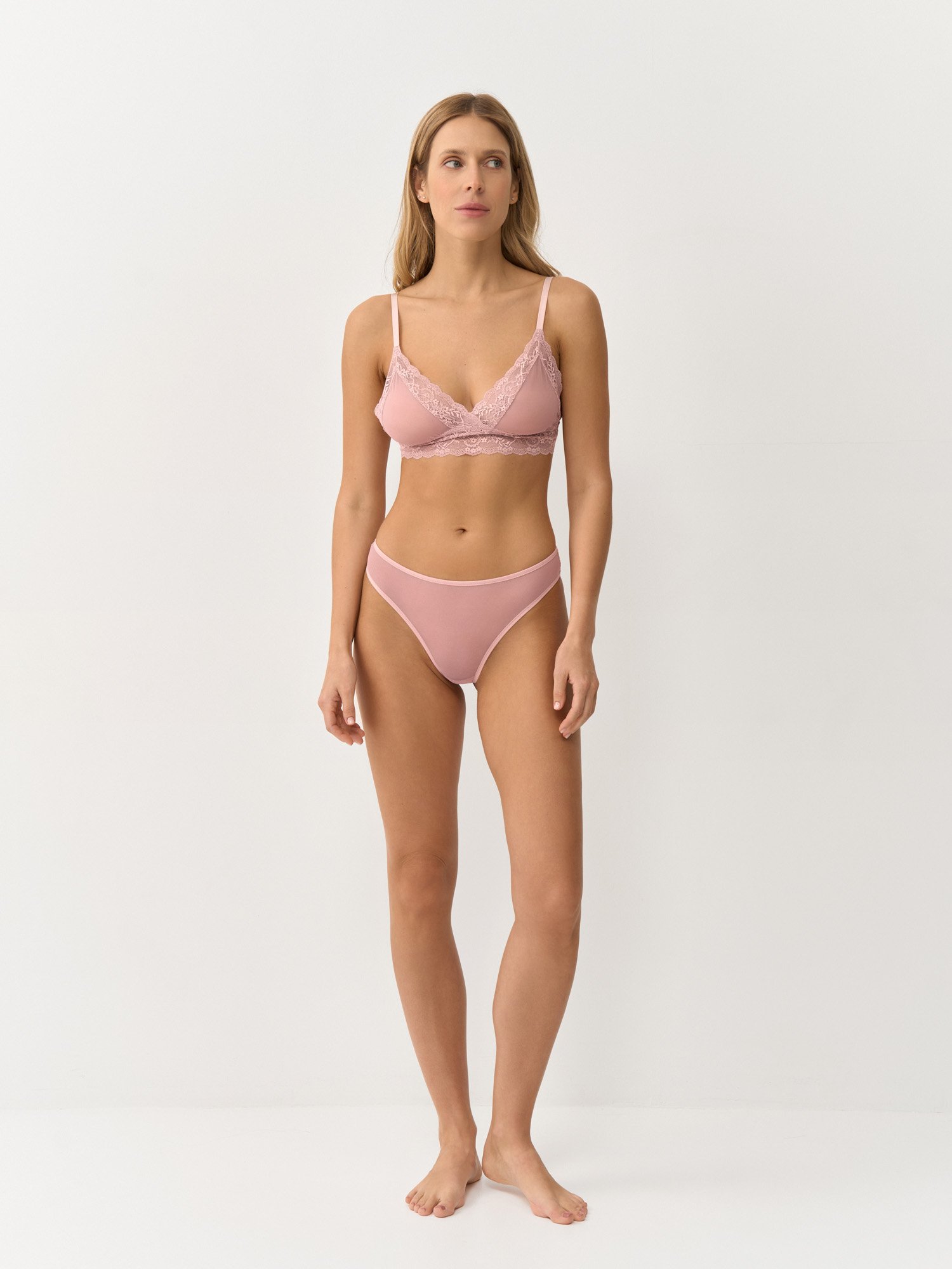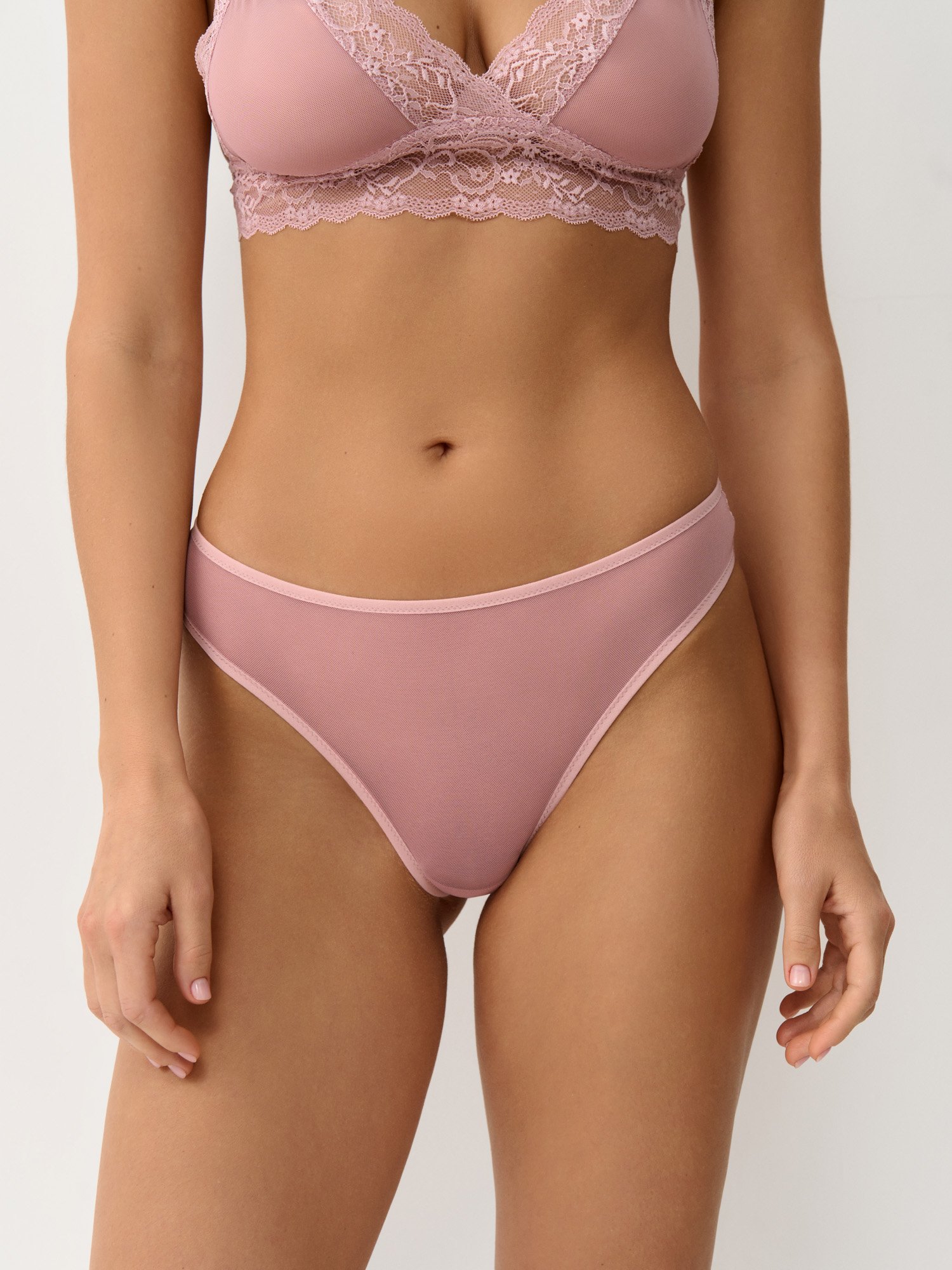 Трусы модели бразилиана из мягкой эластичной сетки и нежного кружева. Средняя посадка комфортна на каждый день и удобна с любым видом одежды. Высокий вырез по бокам зрительно увеличивает длину ног.