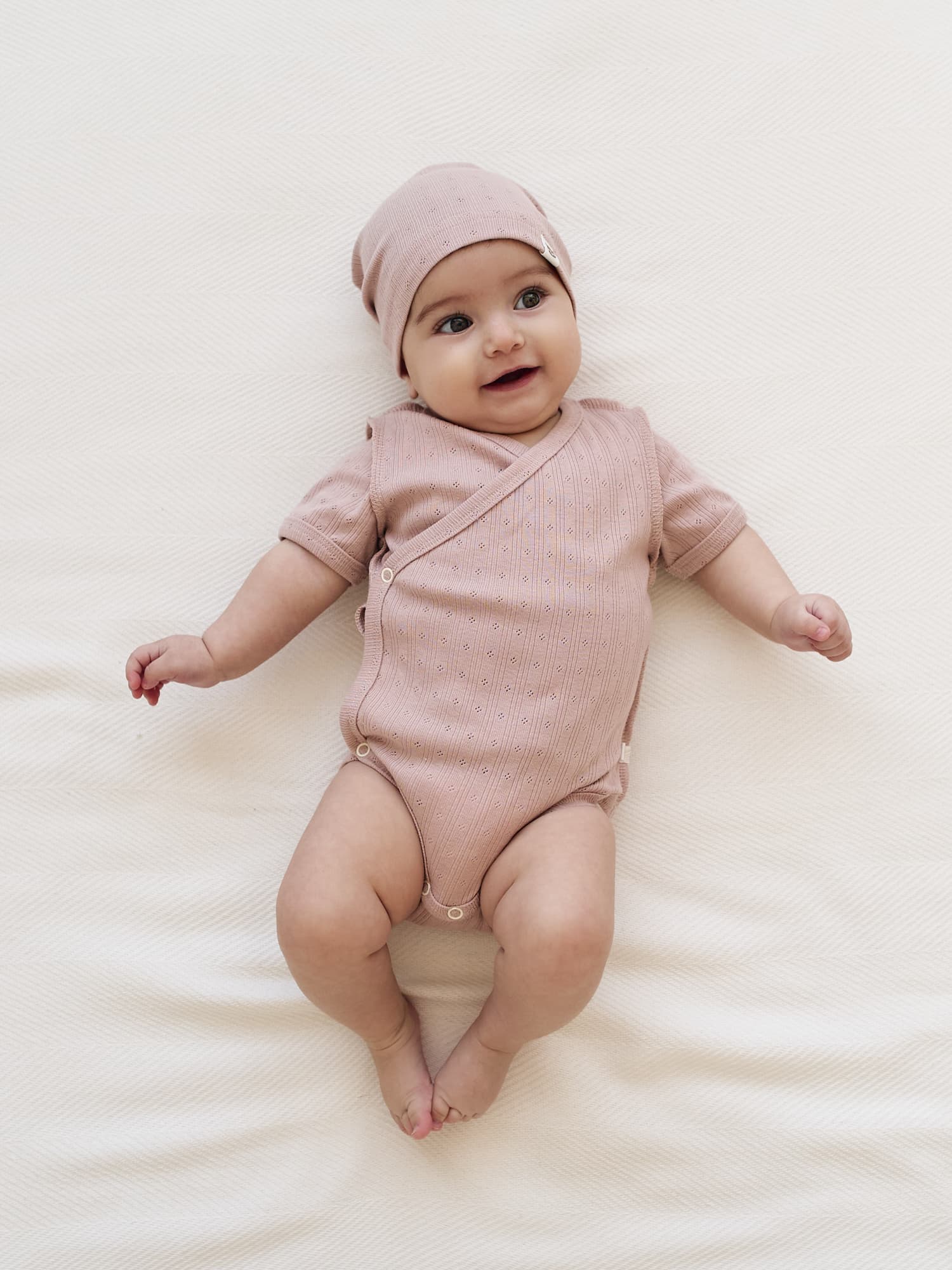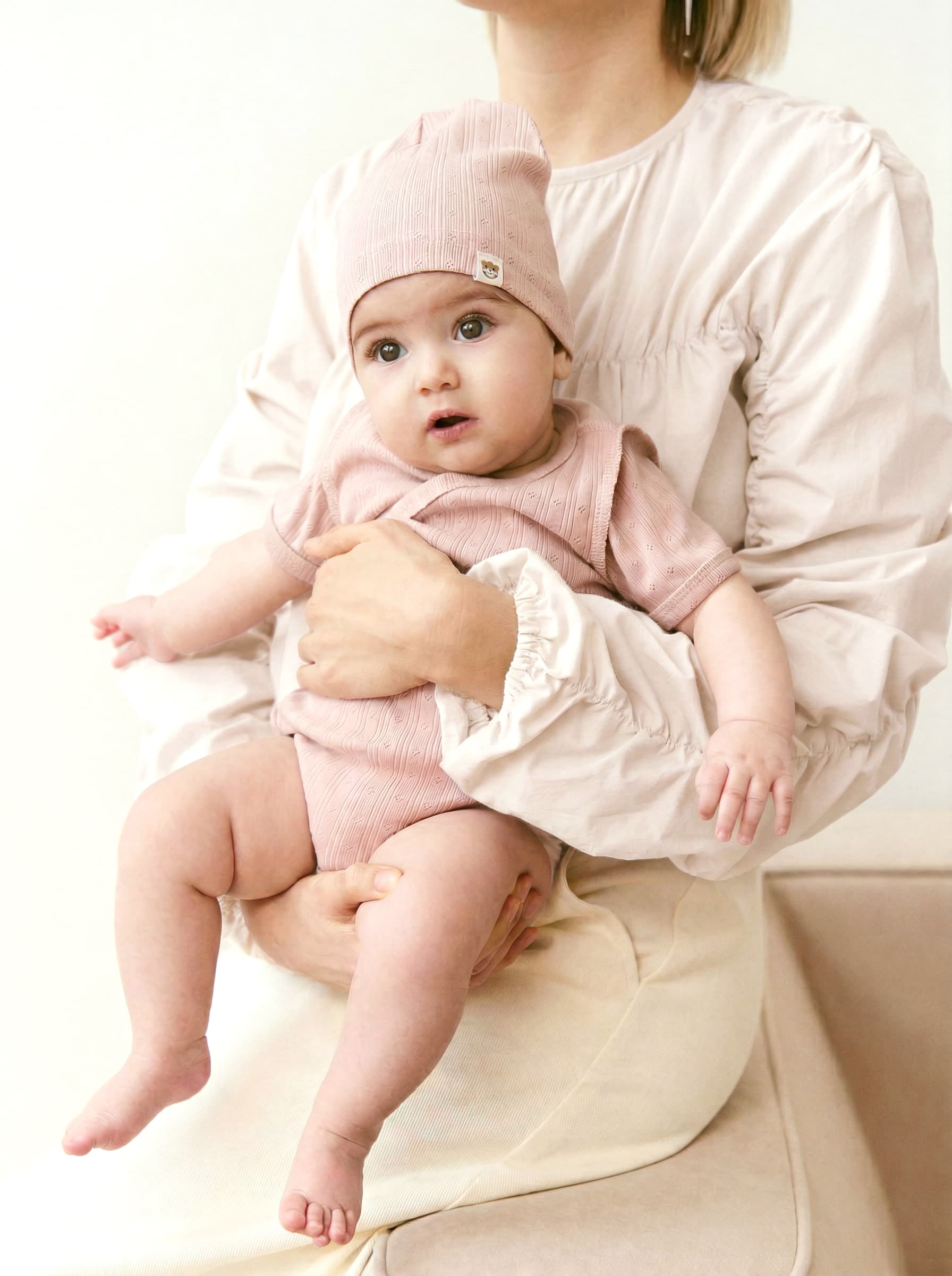 Изящная шапочка защитит голову малыша от прохлады и сквозняков.