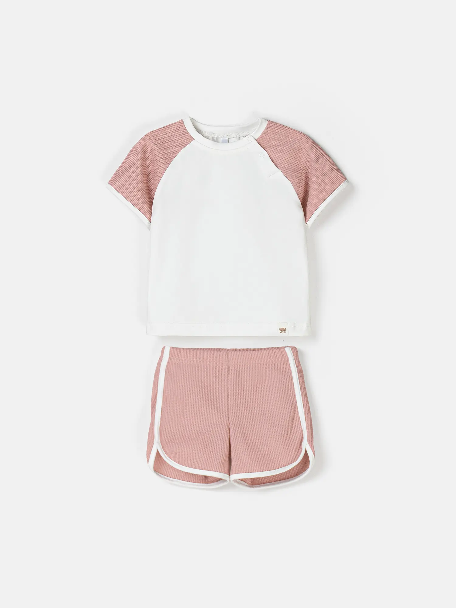Футболка - кулирная гладь; шорты - вафельный трикотаж