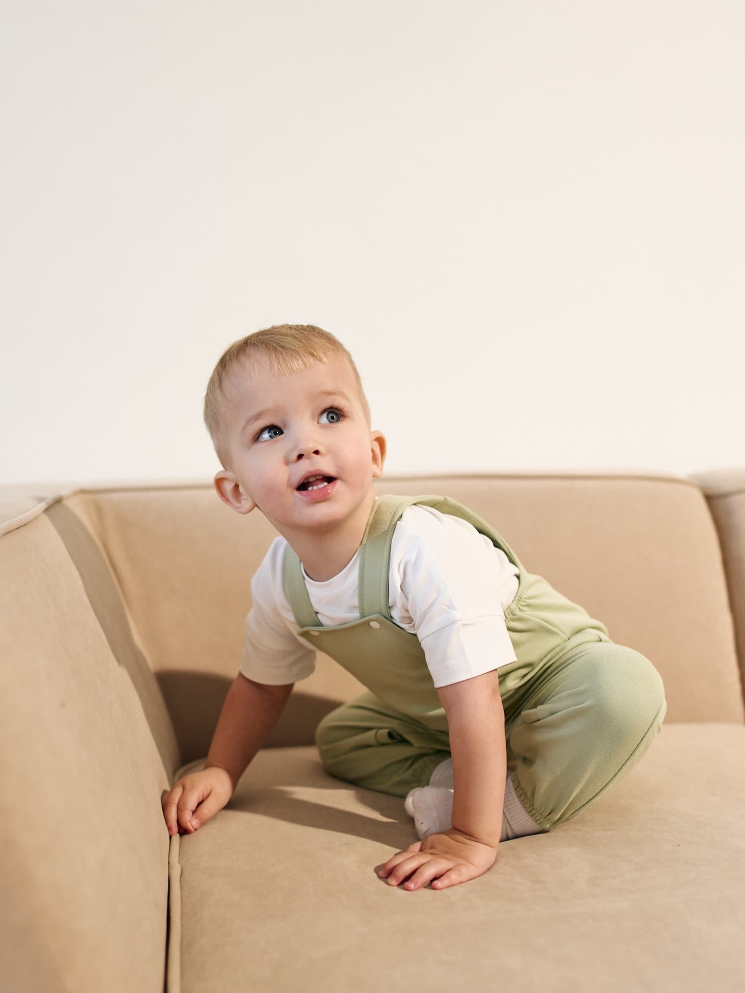 Комбинезон легко надеть поверх бодика, футболки или тонкой кофты — подходит для прогулок на свежем воздухе, поездок в гости и уютных вечеров дома.