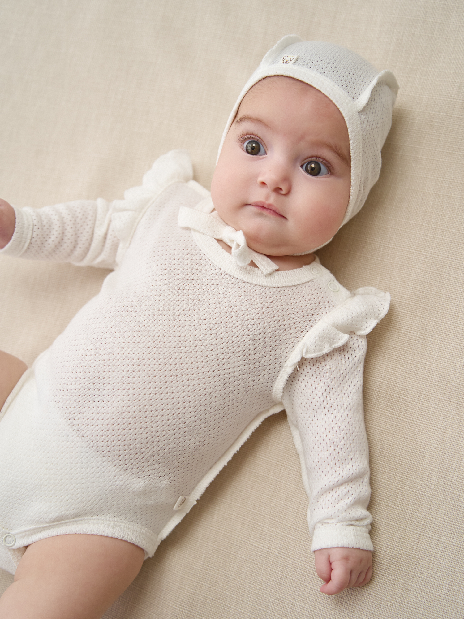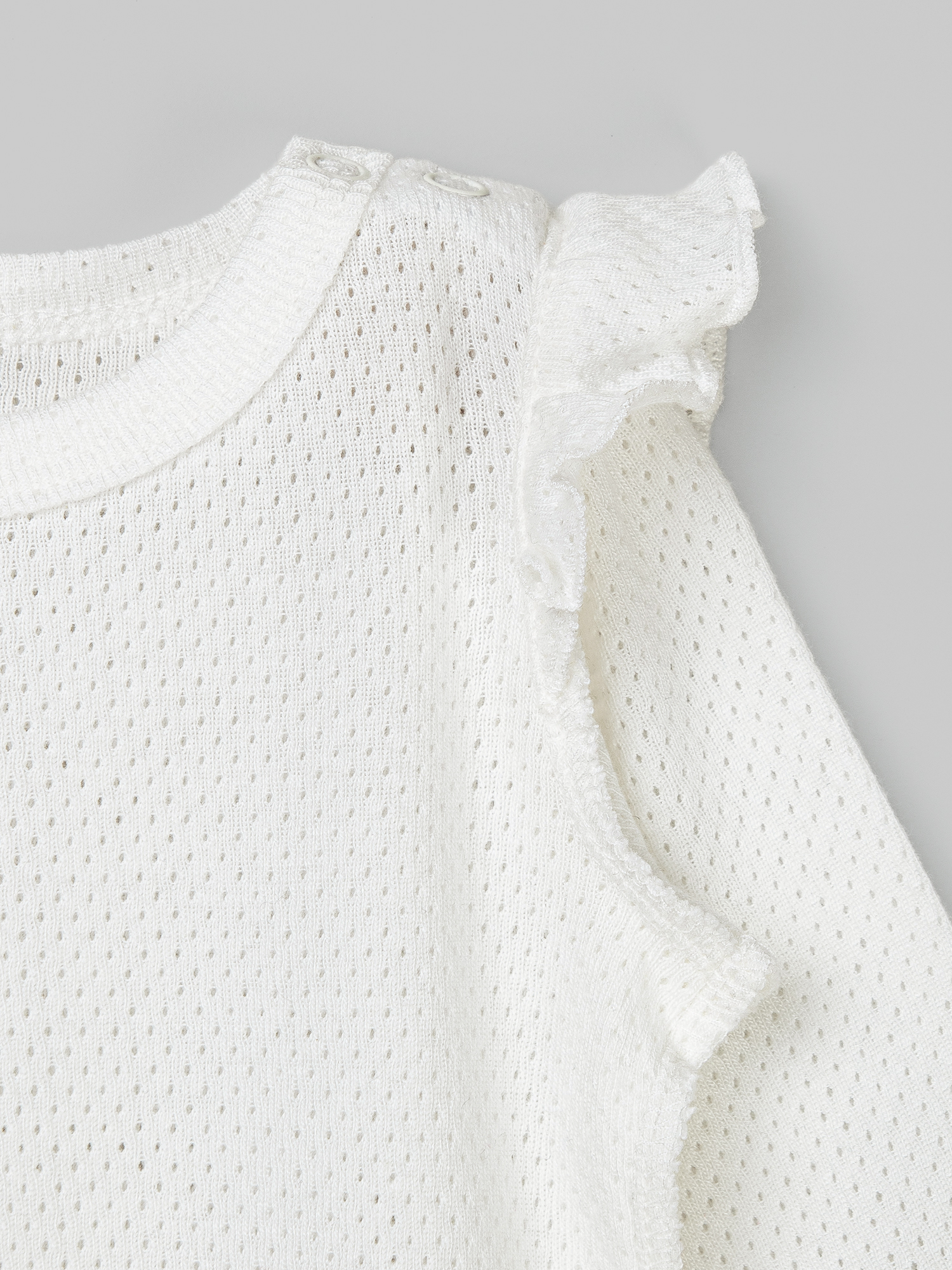 Ажурный хлопковый трикотаж приятен к телу и позволяет коже дышать.