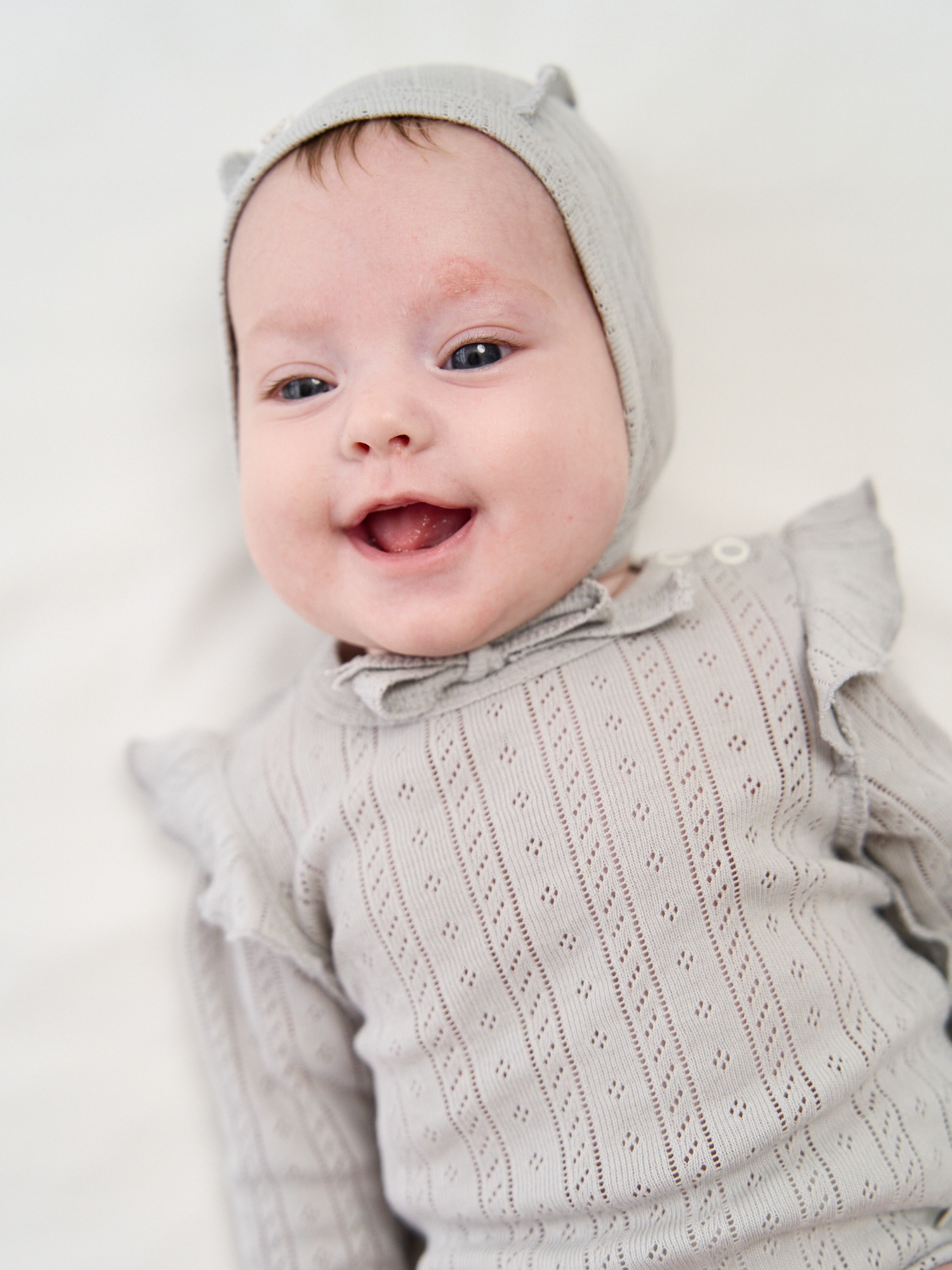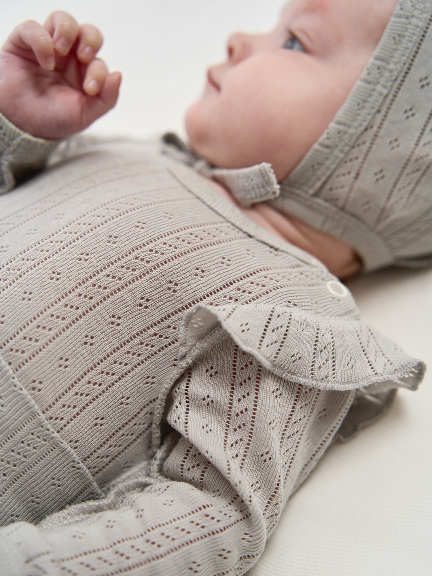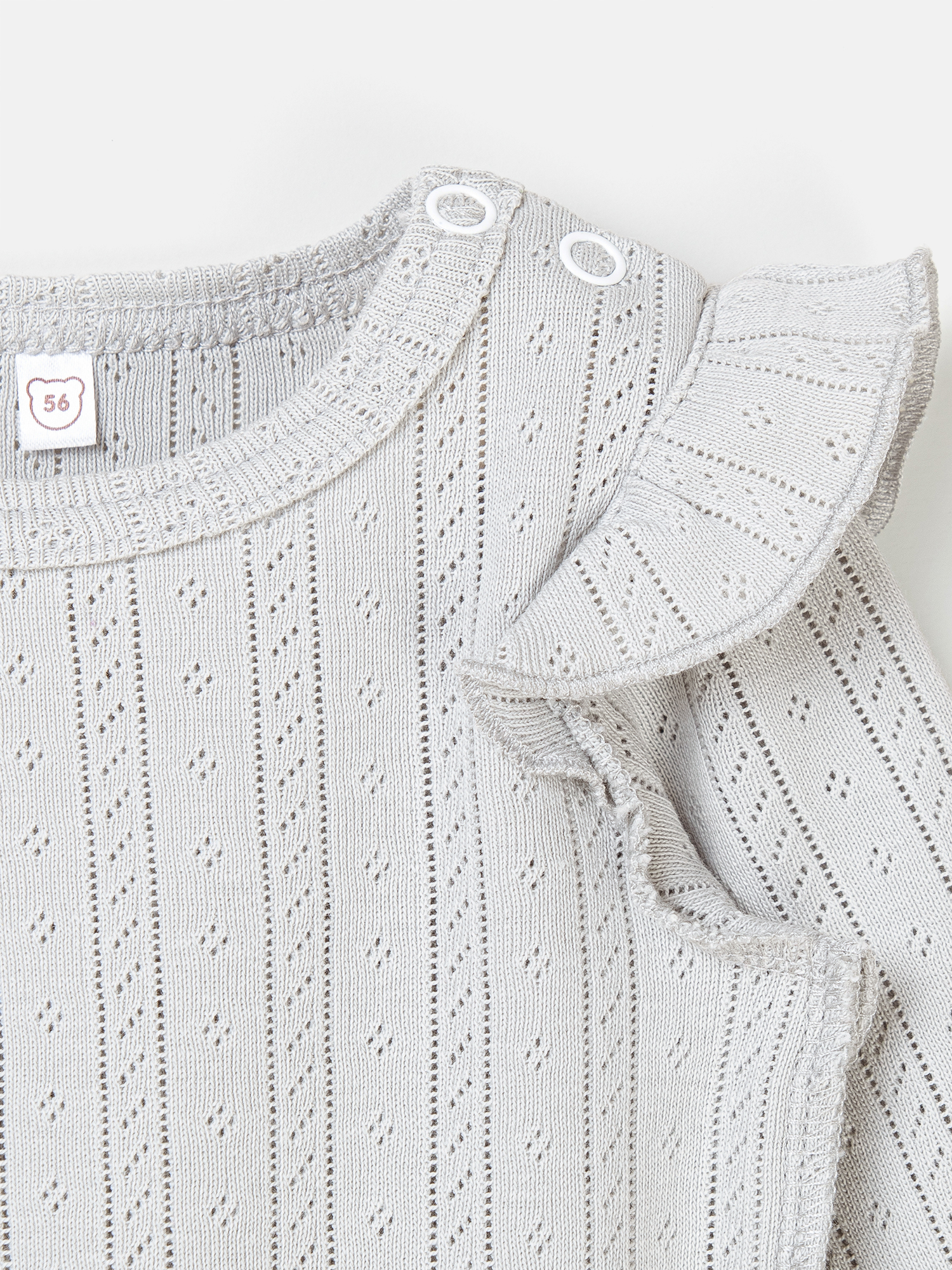 Ажурный хлопковый трикотаж приятен к телу и позволяет коже дышать.