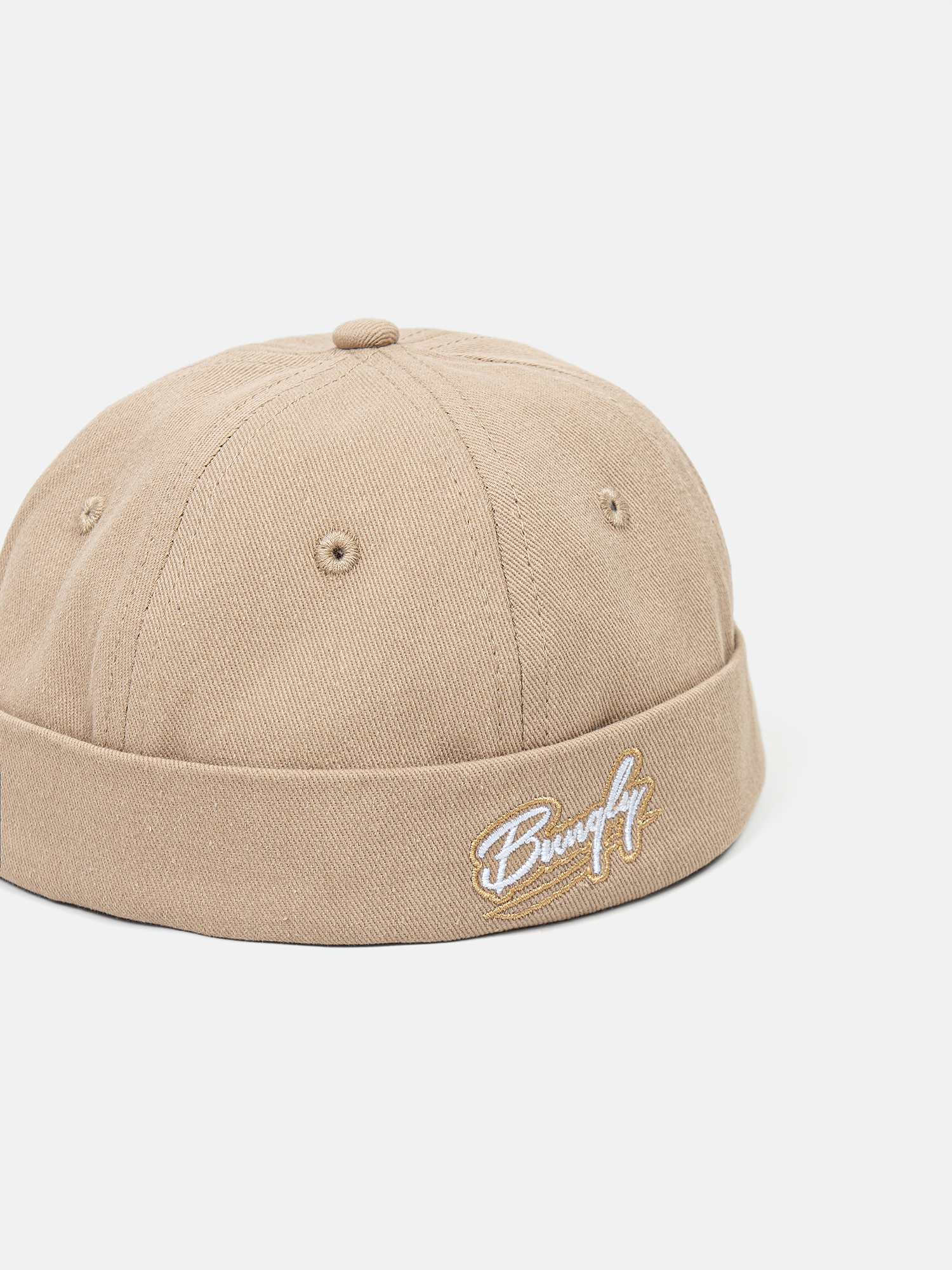 Хлопковая кепка без козырька с брендированной вышивкой.