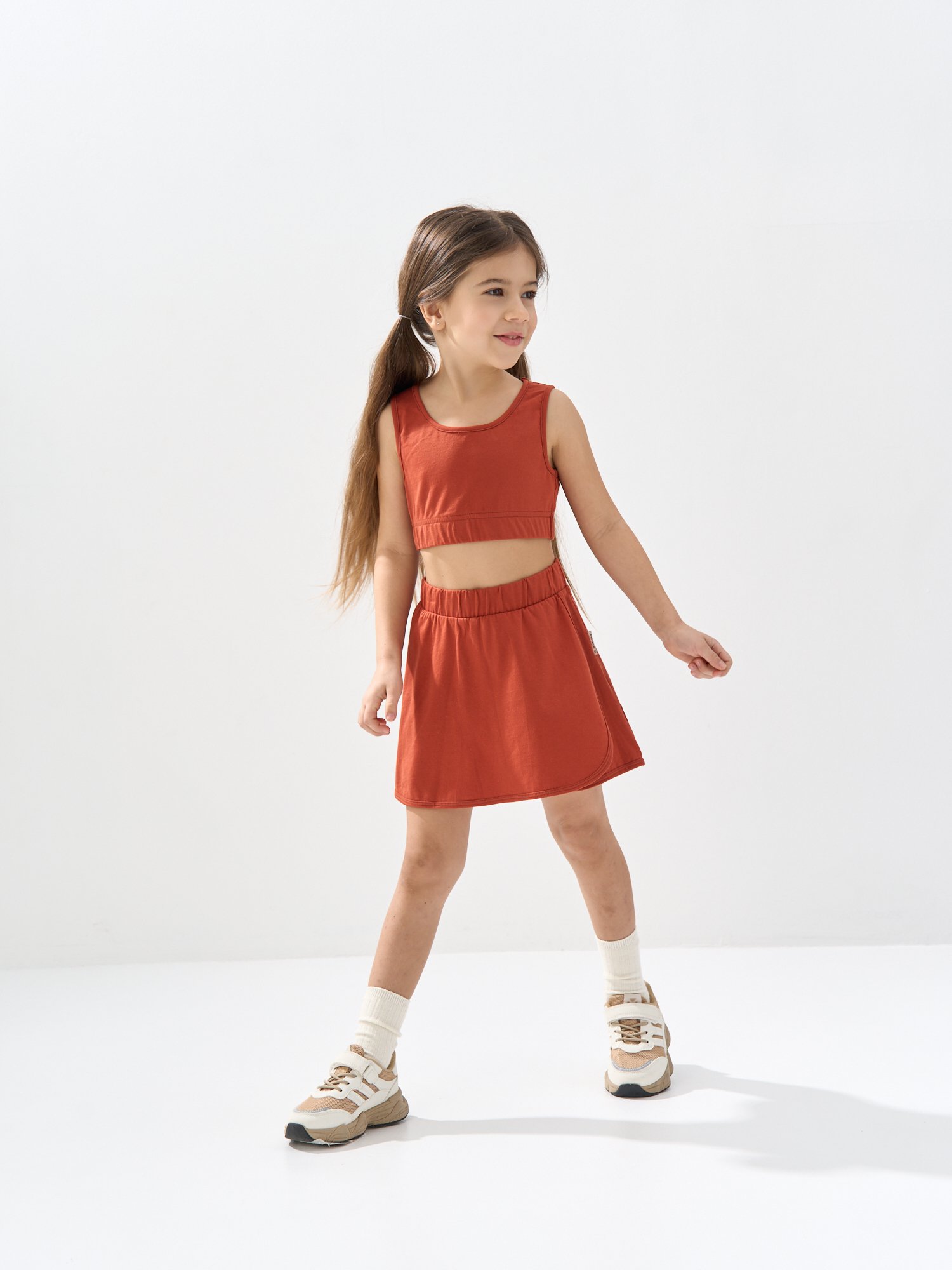Укороченный топ с широкими лямками — отличный вариант для активных девочек!
