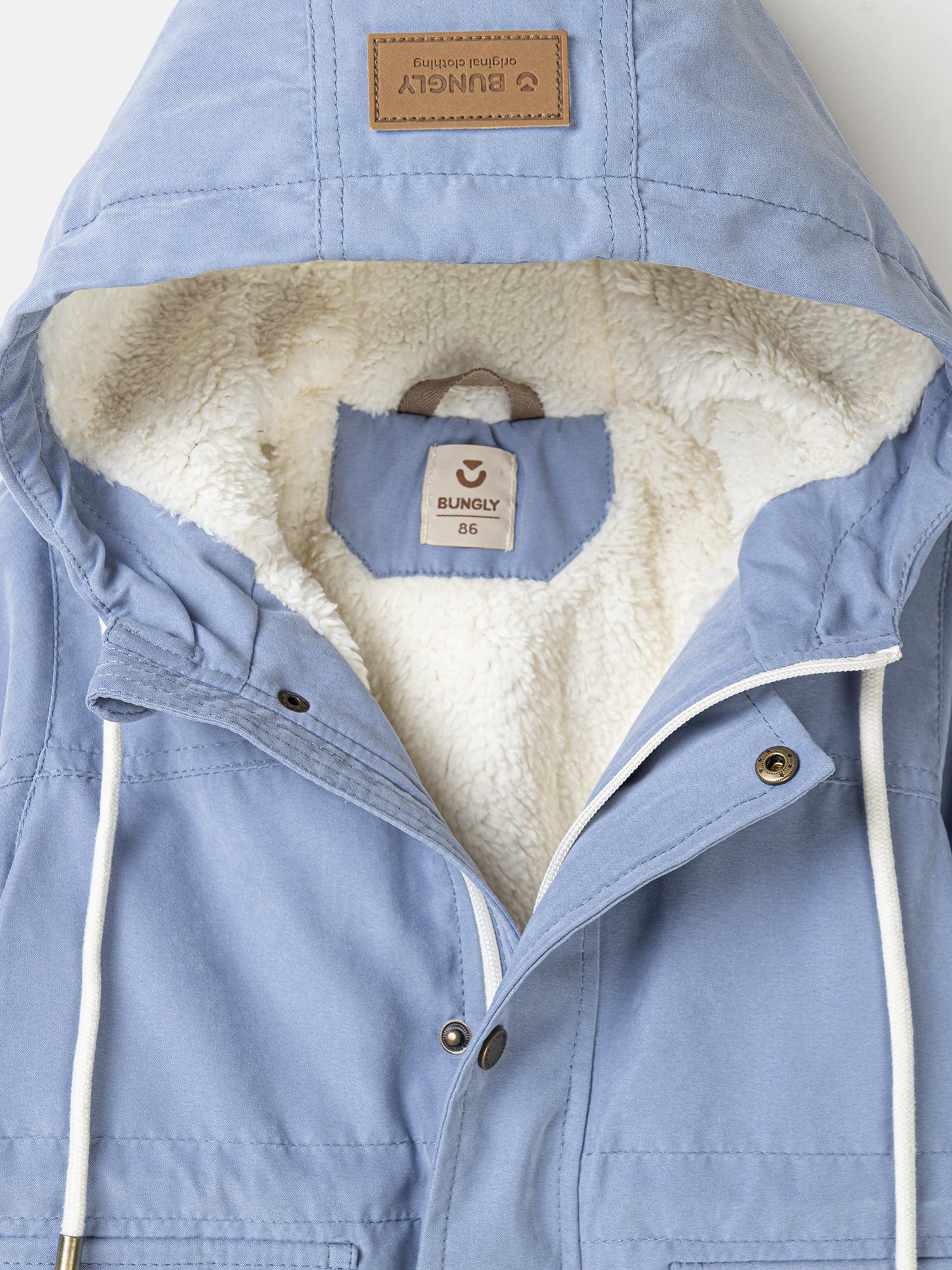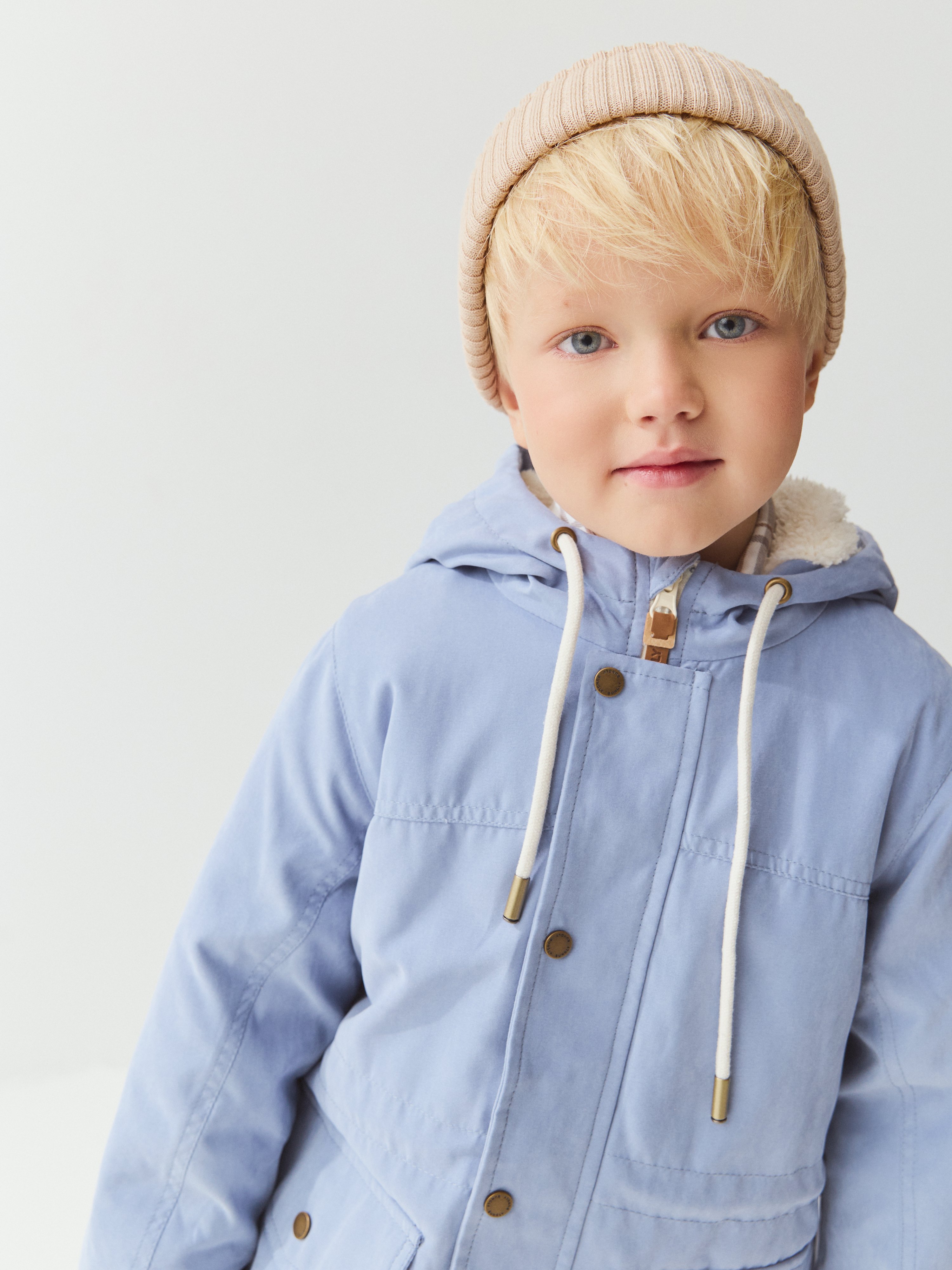 Капюшон несъемный, дополнен шнуром для утяжки и защиты от ветра.