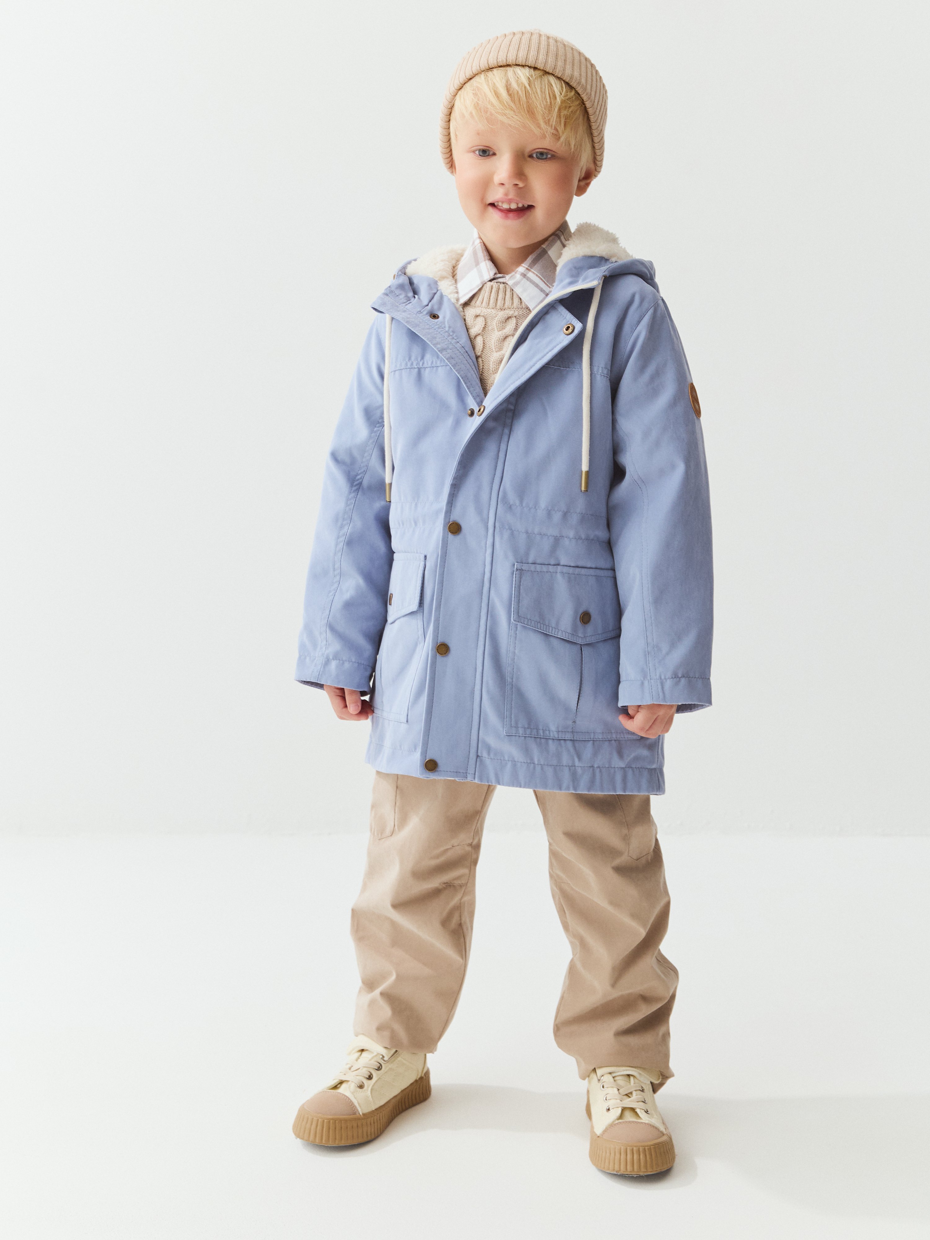 Демисезонная парка прямого силуэта из мембранной ткани с показателями 3000/3000 для защиты от влаги и ветра.