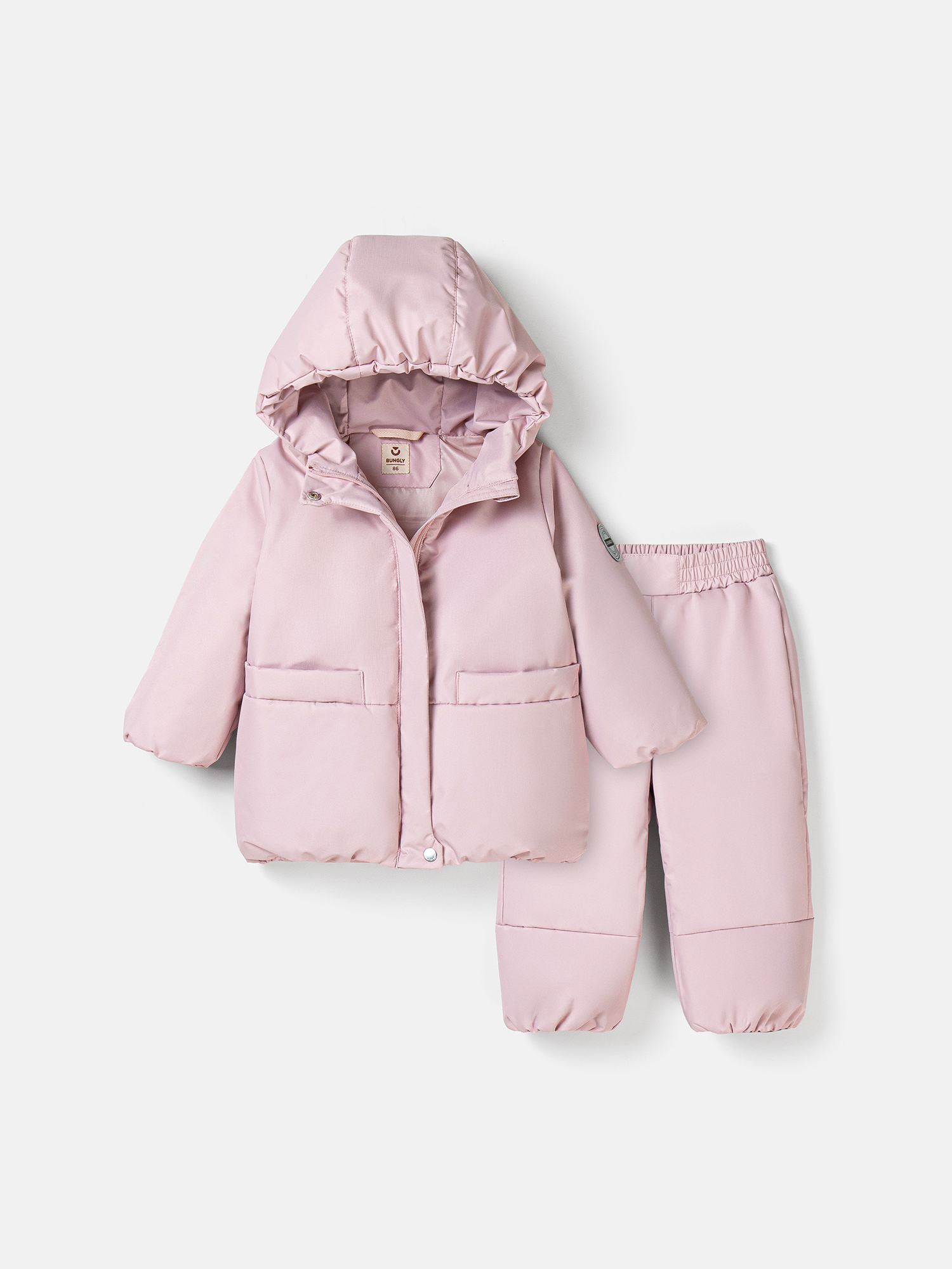 Верх - мембранная ткань; подкладка - твилл; утеплитель: куртка - 150 г, штаны - 100 г