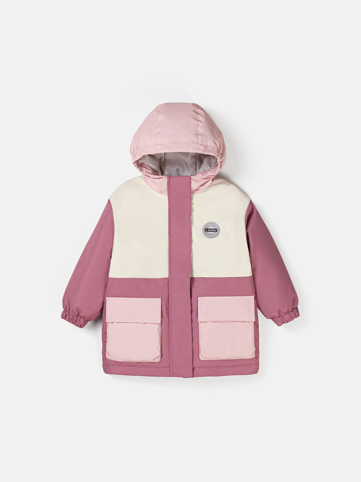 По низу куртки утяжка на резинку с фиксаторами для регулирования объема.