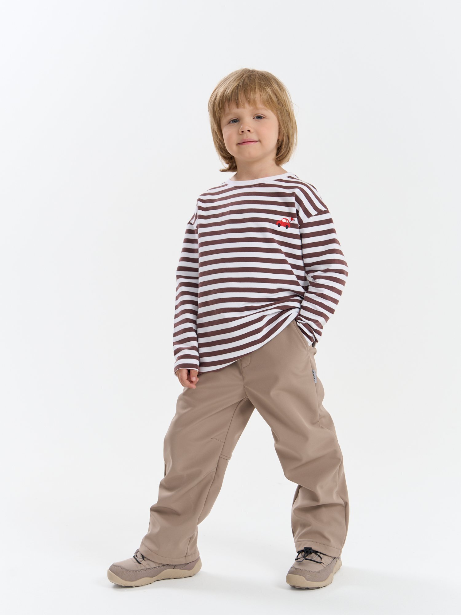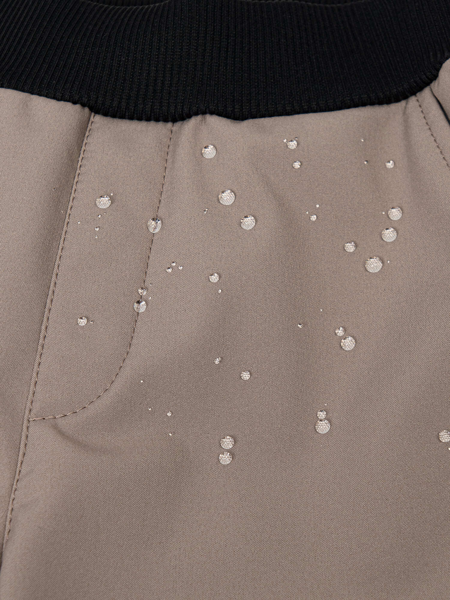 Мембранная ткань софтшелл с показателями 10000/10000 обеспечивает надежную защиту от влаги и продувания, позволяя детям активно проводить время на улице в любую погоду: не промокает даже после прыжков по лужам, а грязь легко смывается.