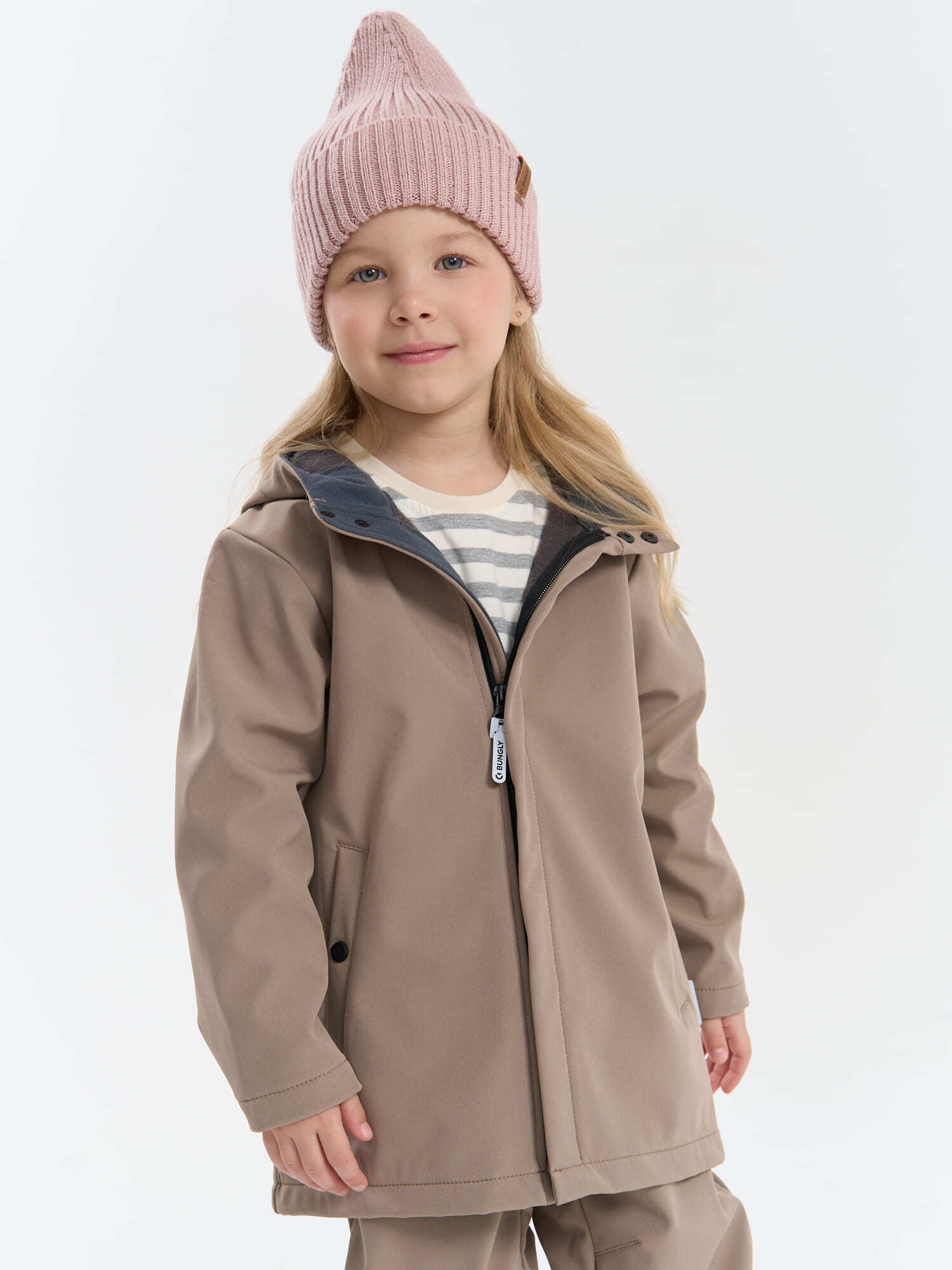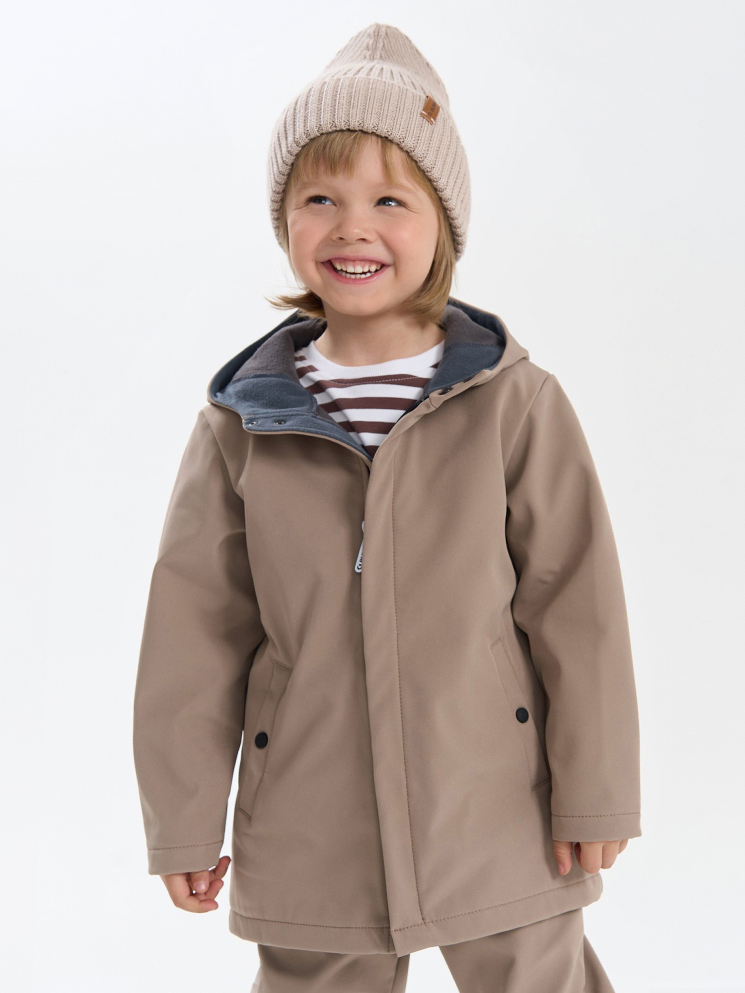 Мембранная ткань софтшелл с показателями 10000/10000 обеспечивает надежную защиту от влаги и продувания, позволяя детям активно проводить время на улице в любую погоду: не промокает даже после прыжков по лужам, а грязь легко смывается.