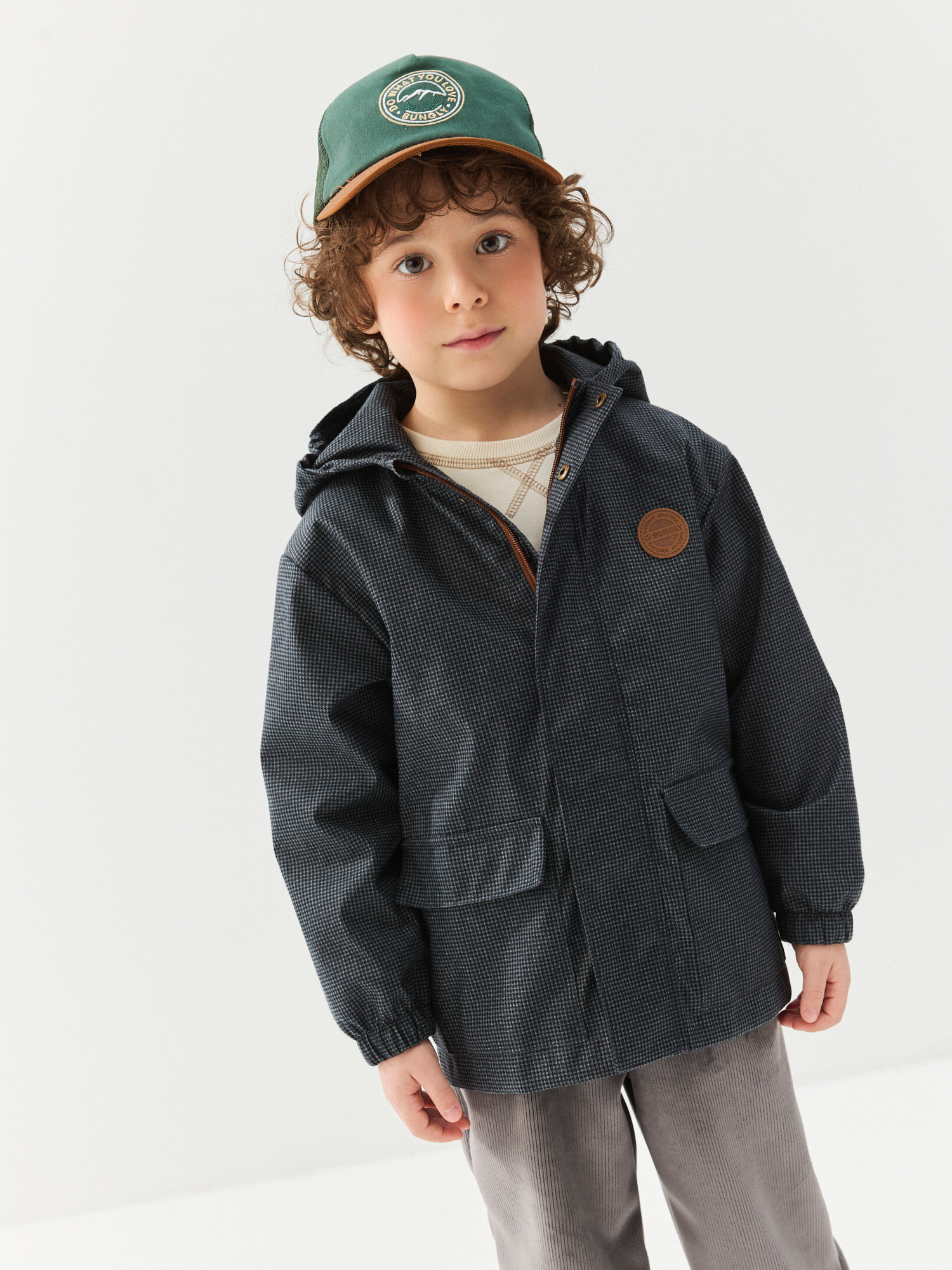 Капюшон несъемный с утяжкой на резинку.