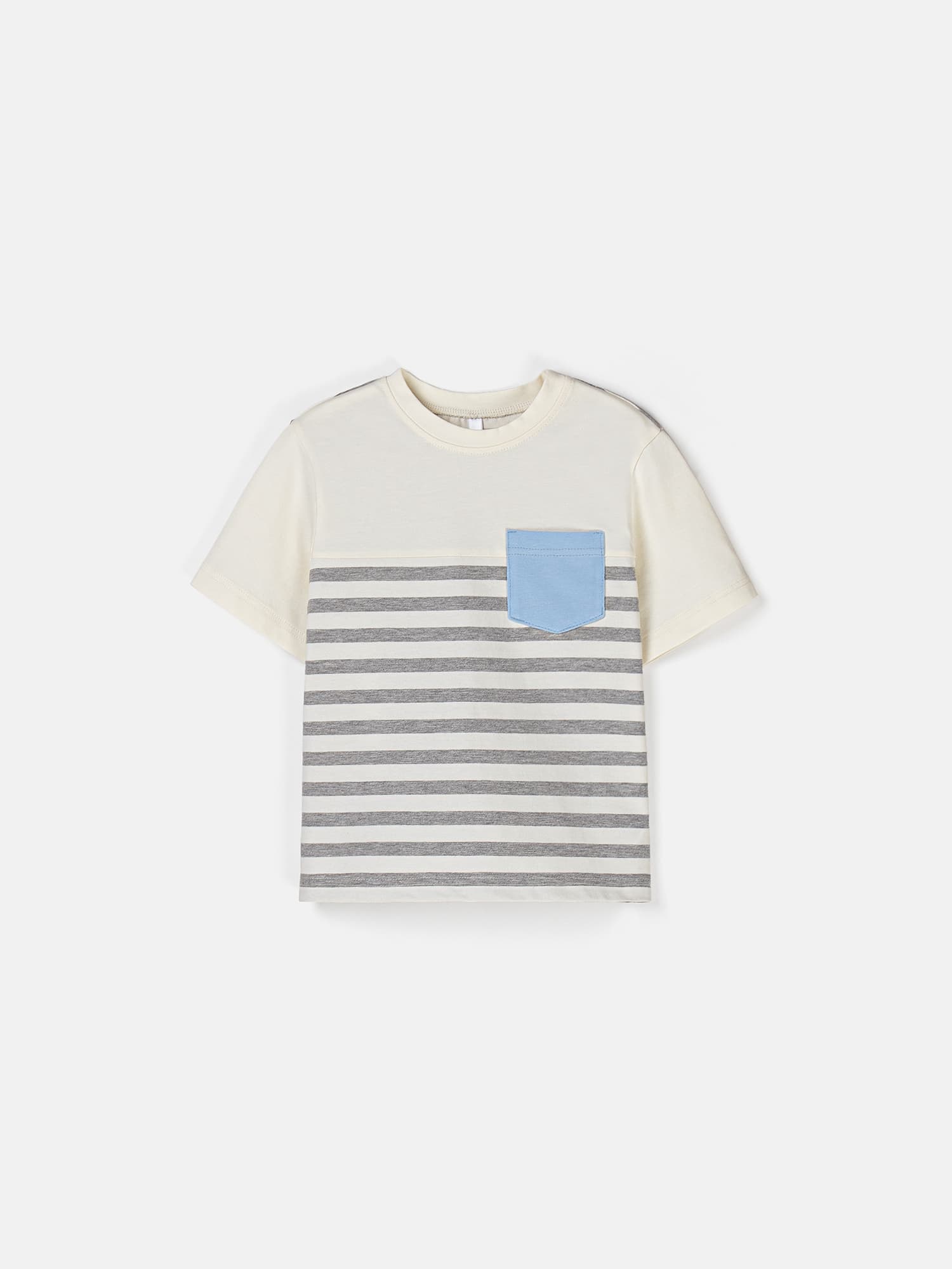 Полосатая футболка с нагрудным карманом пробуждает мечты о морских приключениях.