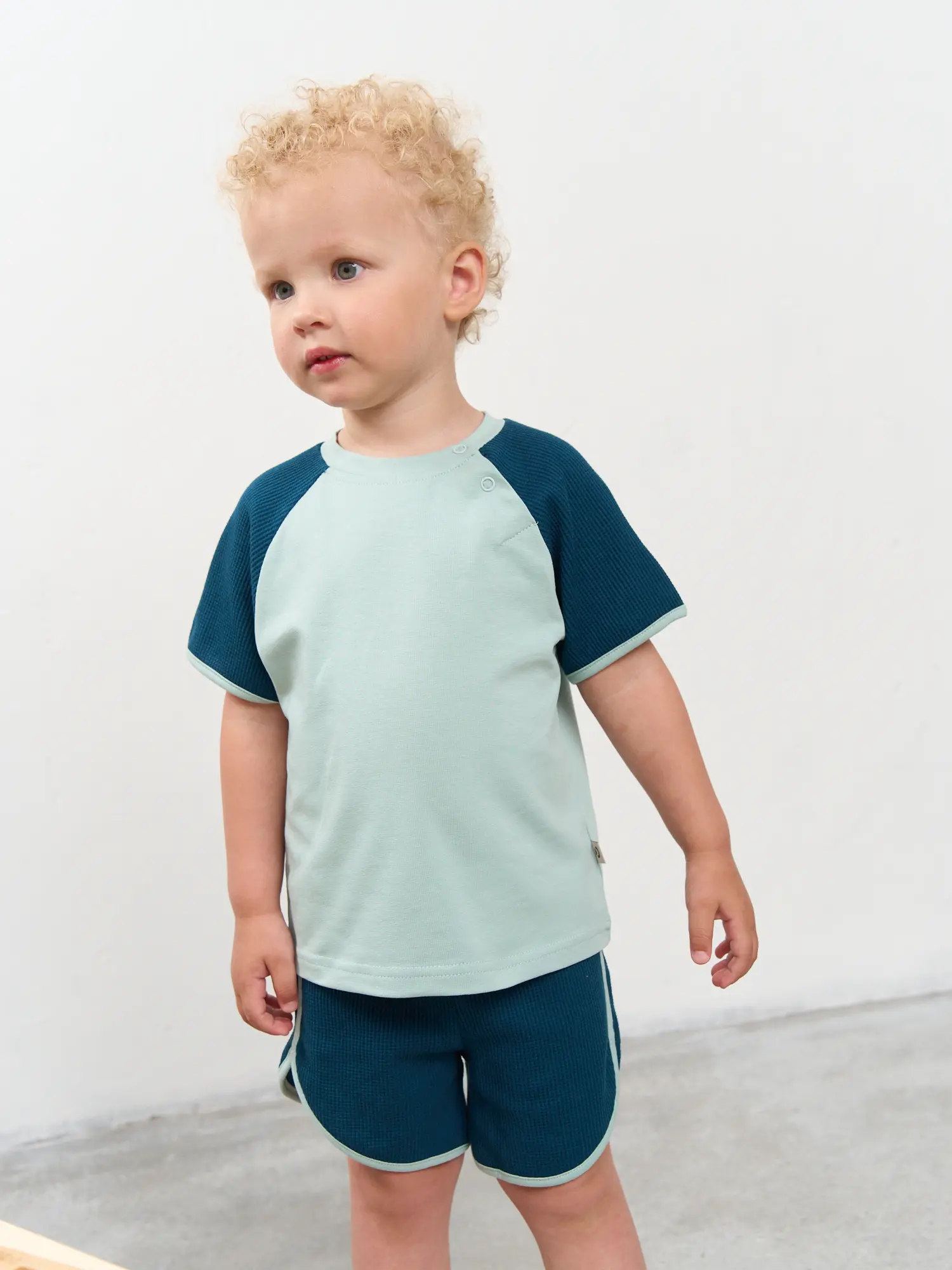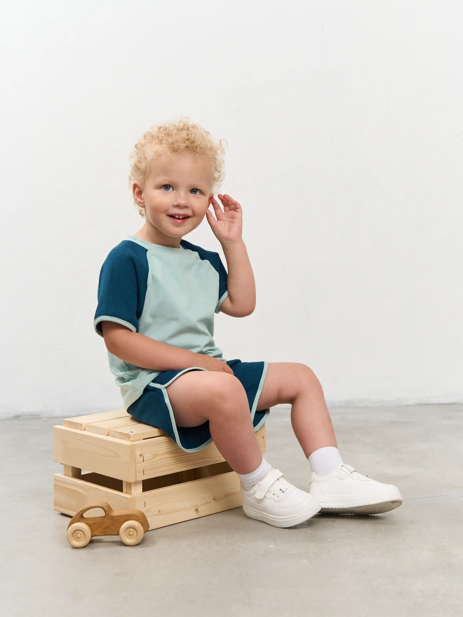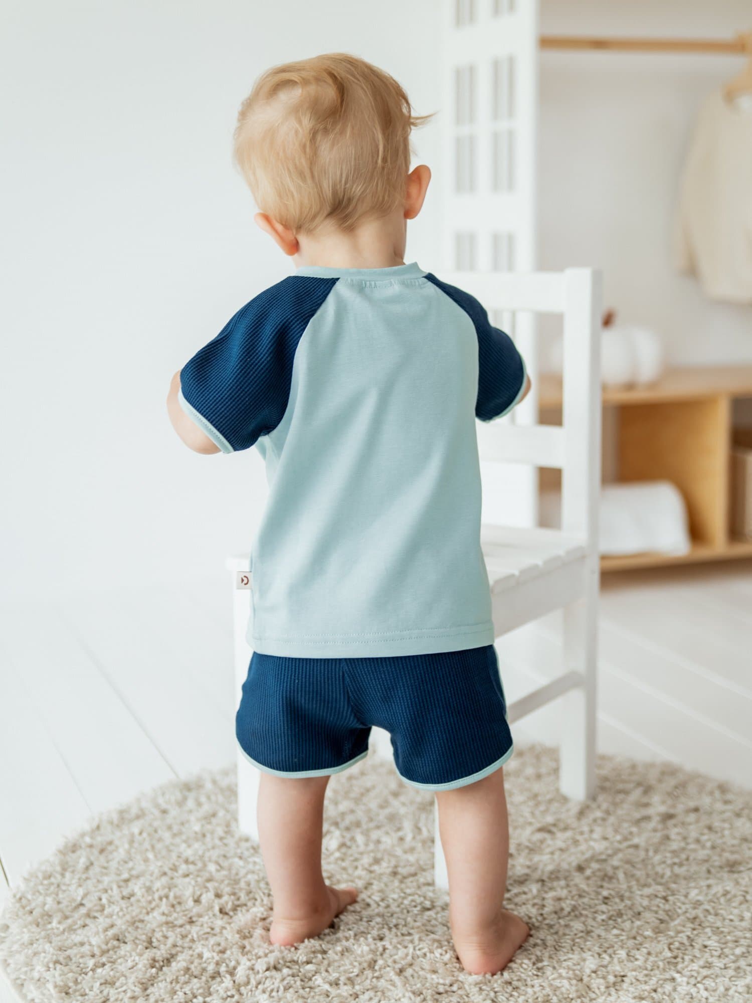 Футболка - кулирная гладь; шорты - вафельный трикотаж