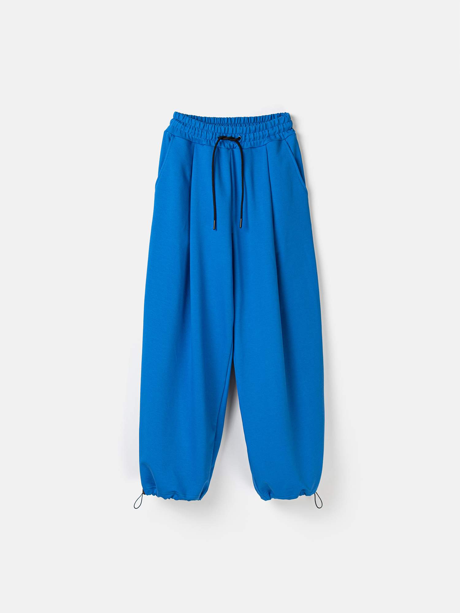 Пояс на резинке с отстрочкой и утяжкой на шнур легко регулируется по фигуре, а утяжка по низу на шляпную резинку позволяет менять посадку под кеды, ботинки или кроссовки.