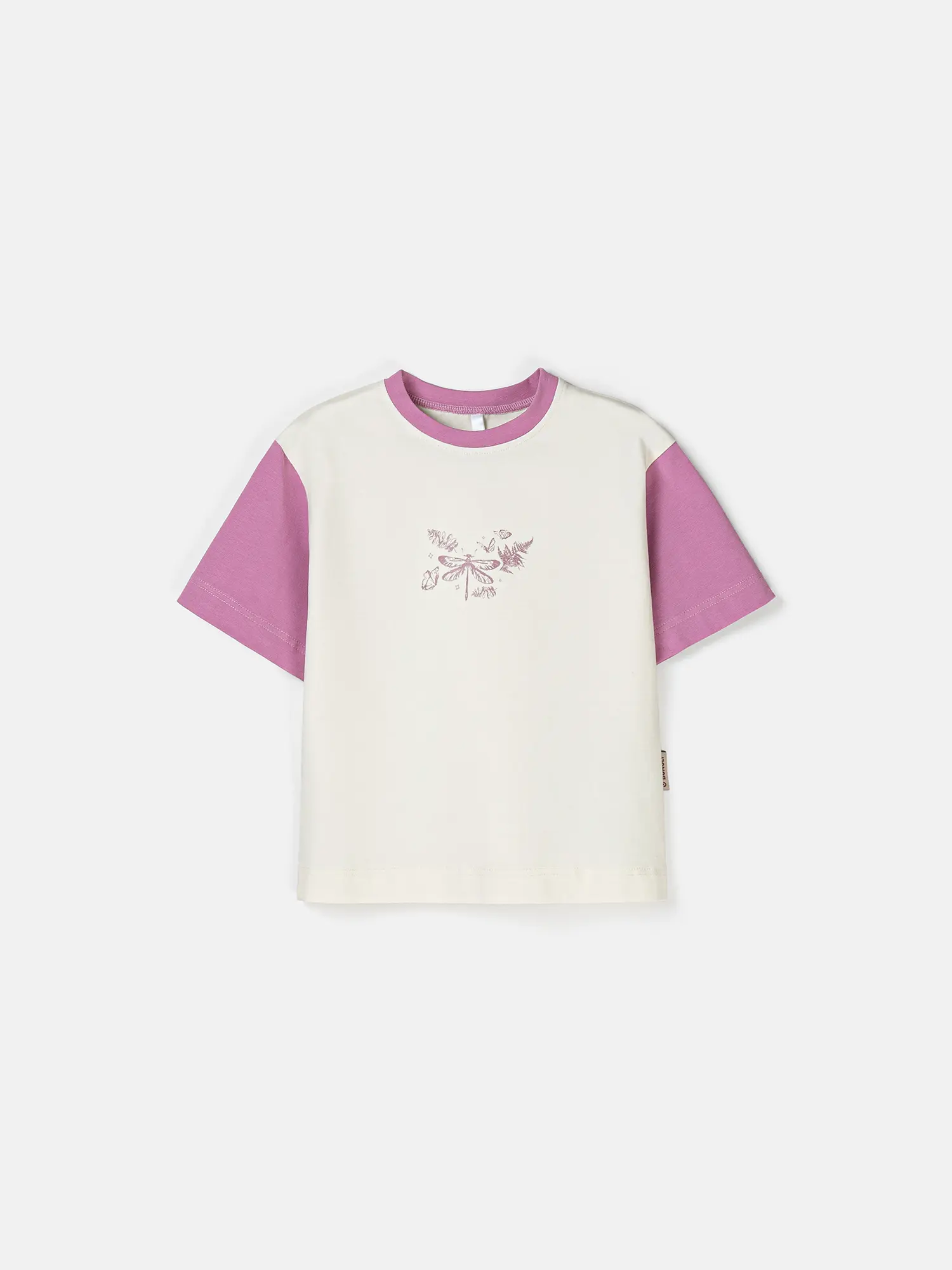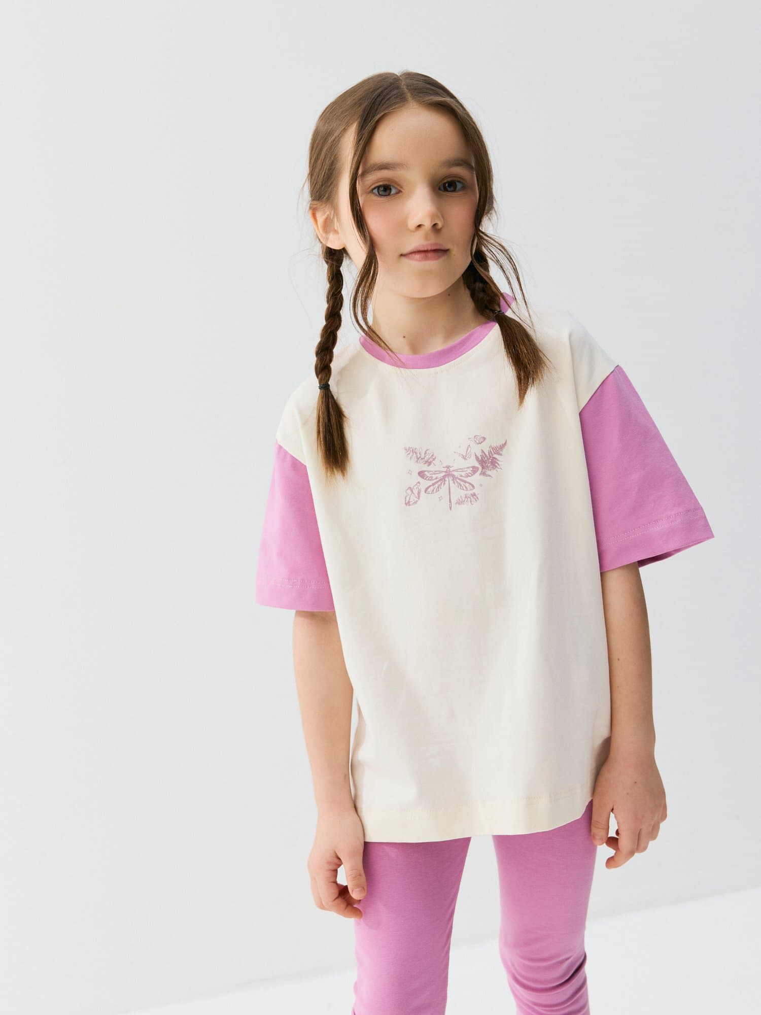 Футболка-оверсайз со стойким принтом и цветными рукавами для освежающих образов.