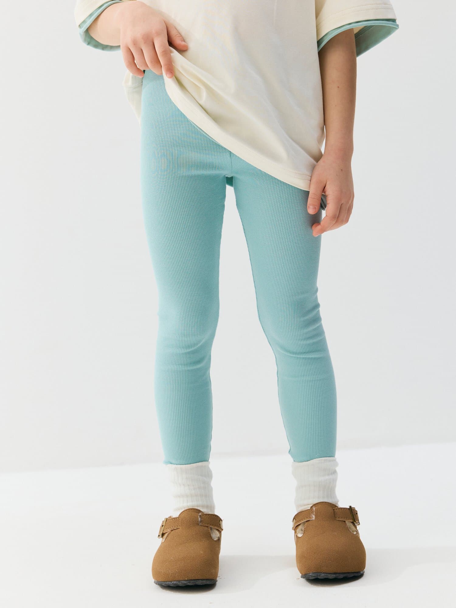 Пояс с резинкой нежно облегает животик и надежно фиксирует легинсы на талии.