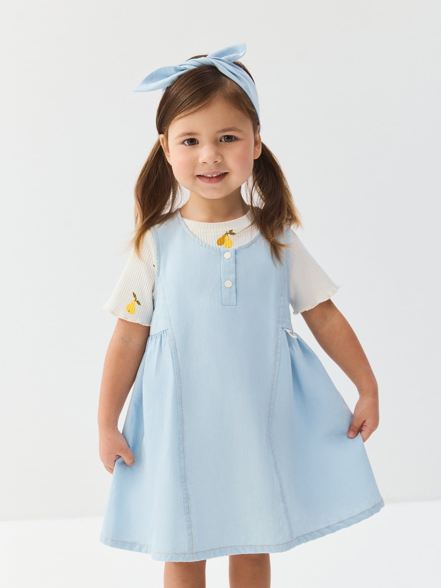 Сарафан со стильными рельефами — удобный и симпатичный вариант для малышей на любой случай.