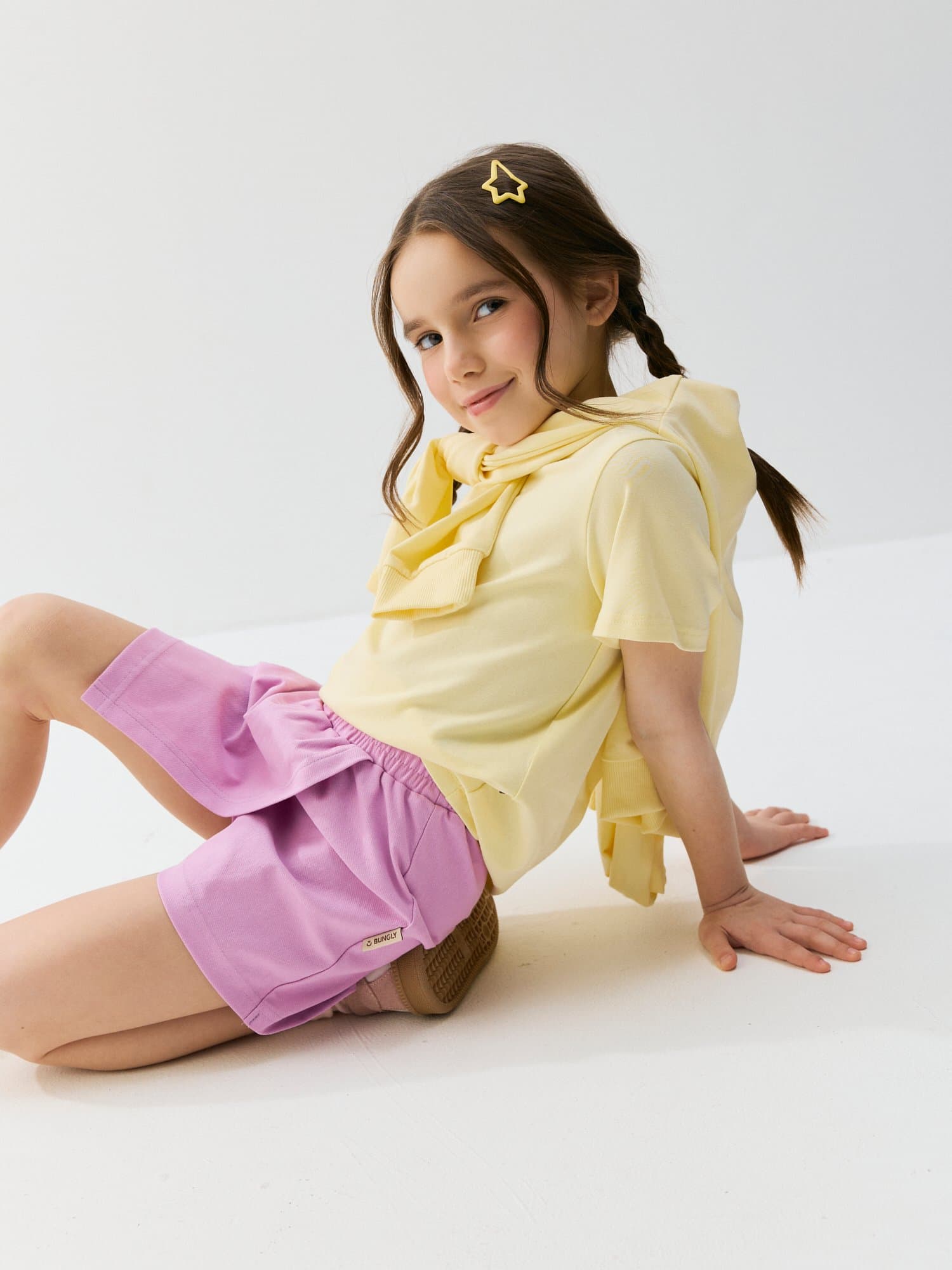 Пояс на резинке мягко облегает животик и надежно фиксирует шорты на талии.