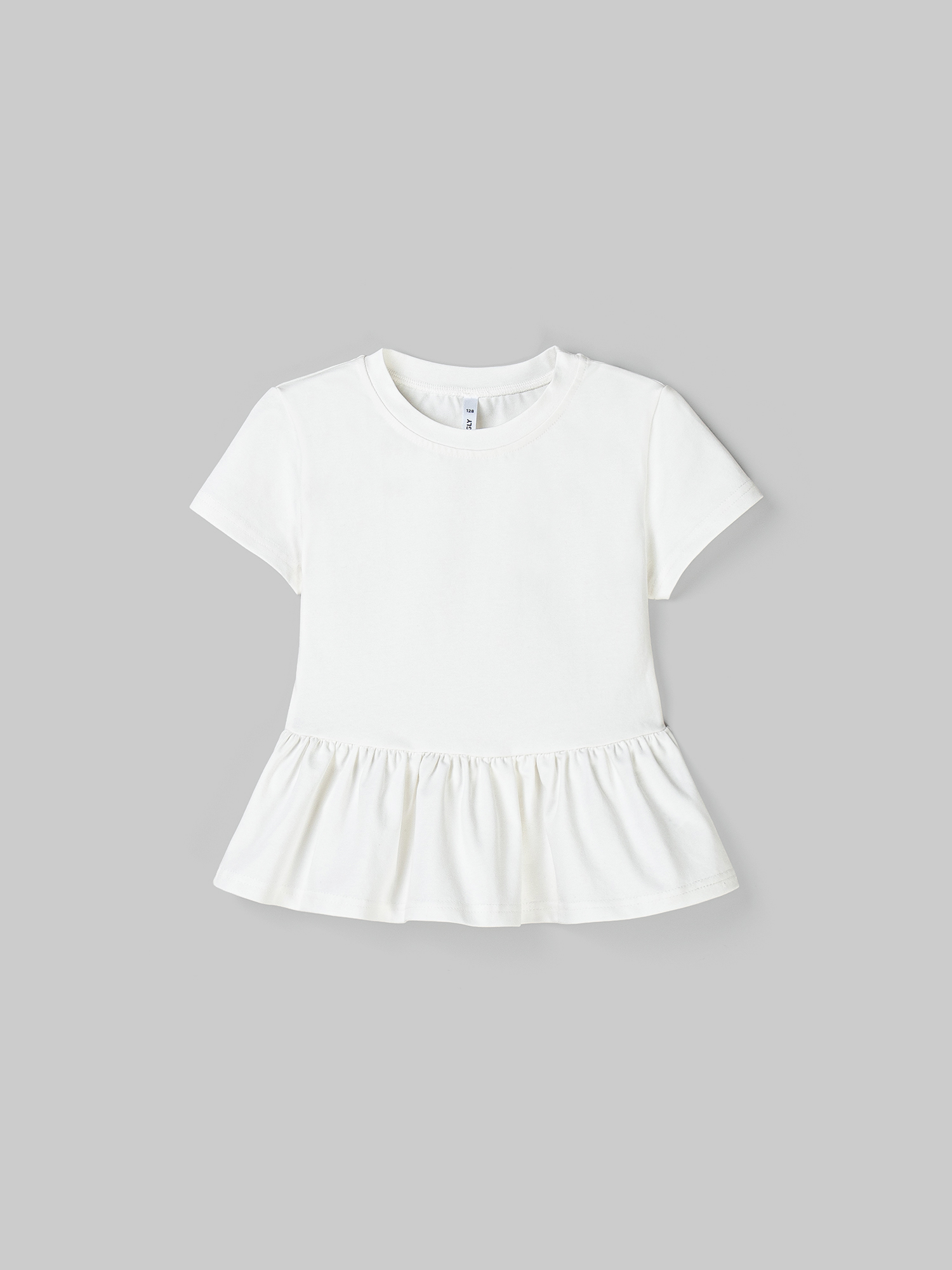 Облегающая футболка с воздушной баской сделает образ романтичным.