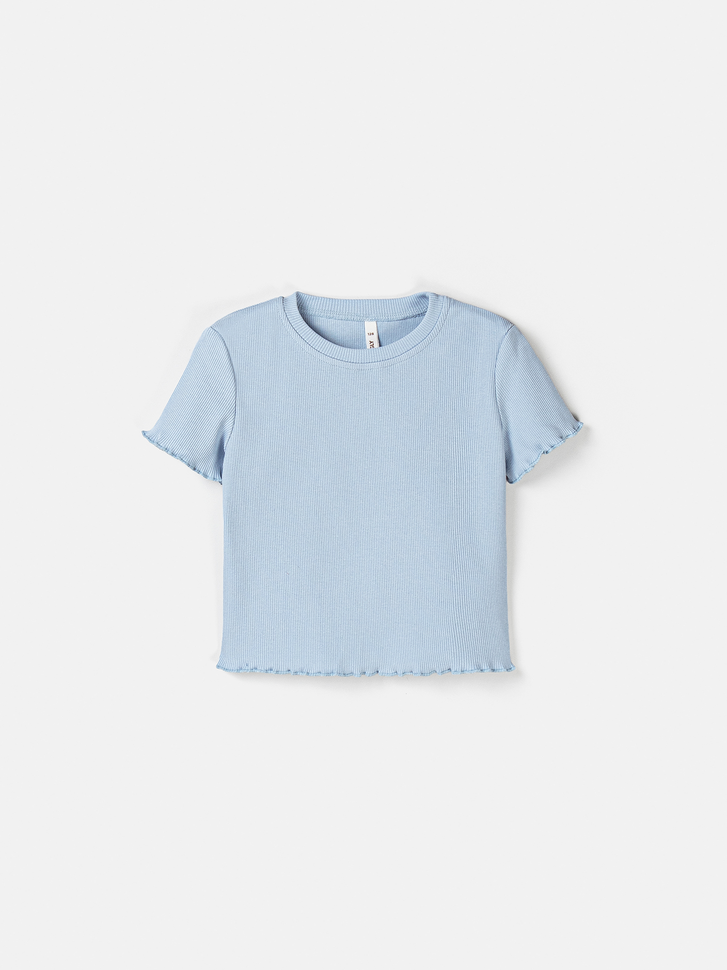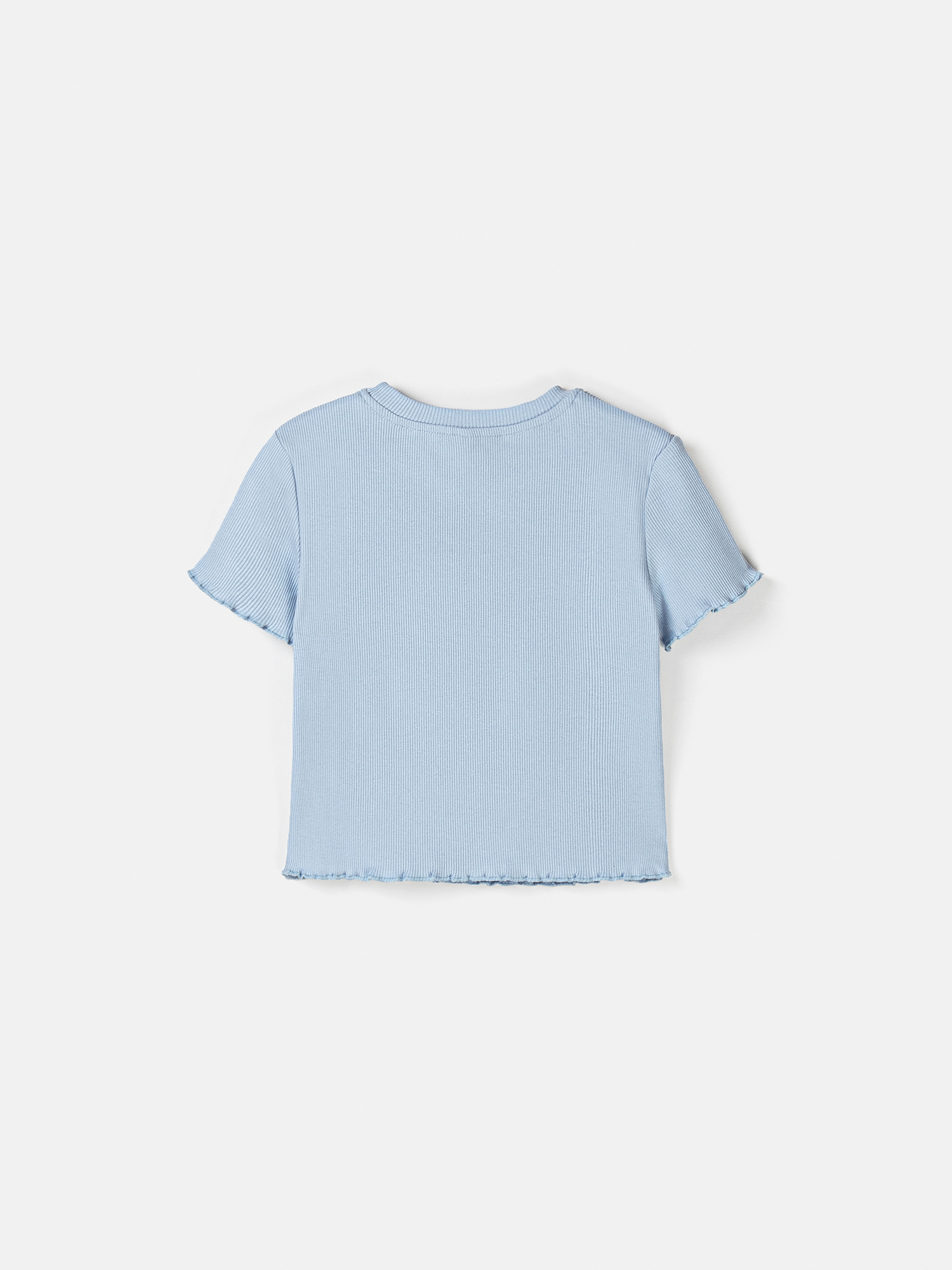 Укороченная футболка с кудрявыми рукавами и низом добавит сдержанного очарования в образ.