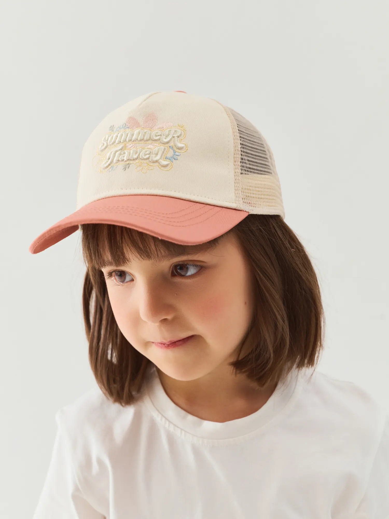 Яркая бейсболка с акцентным принтом-вышивкой.