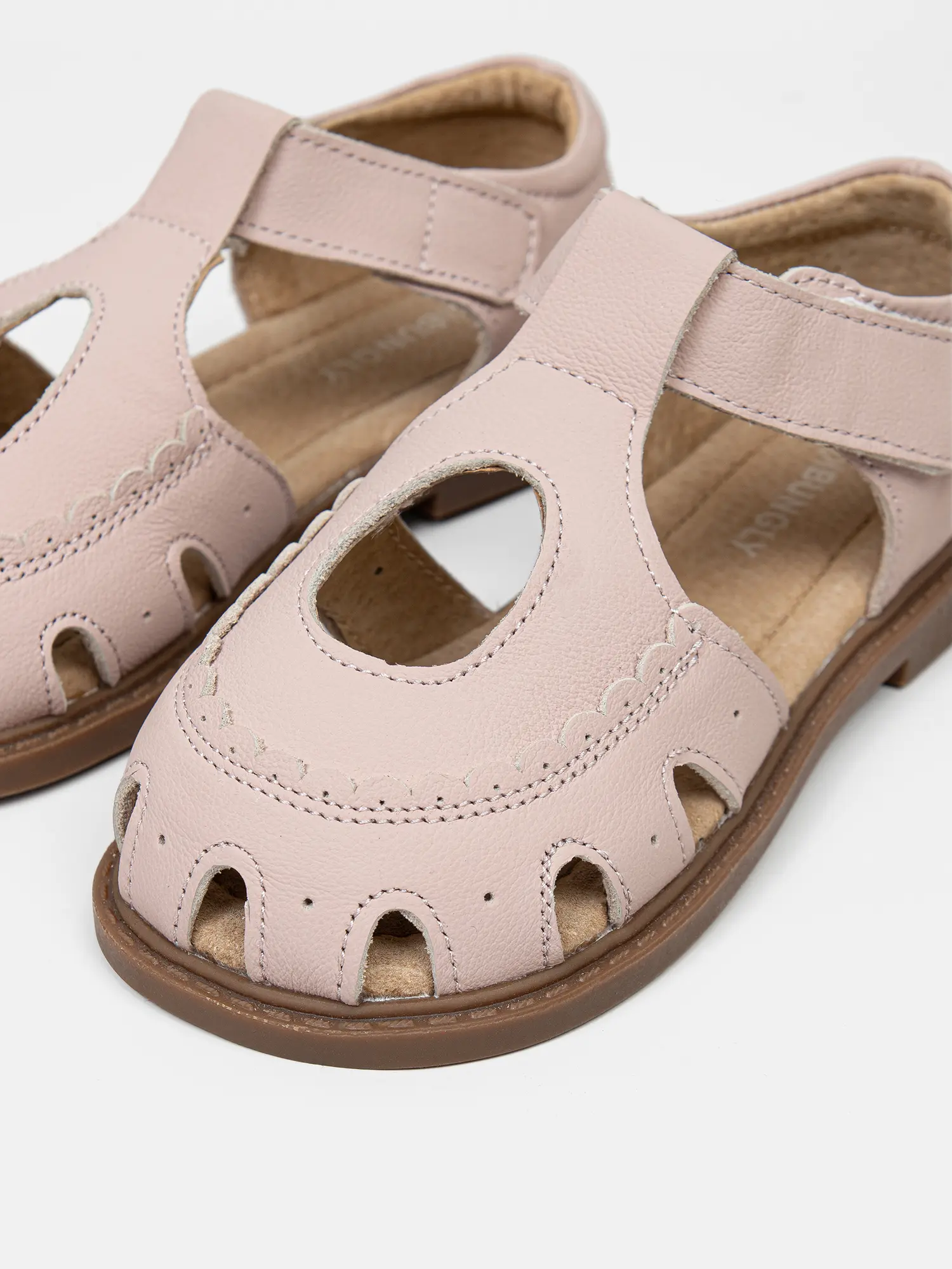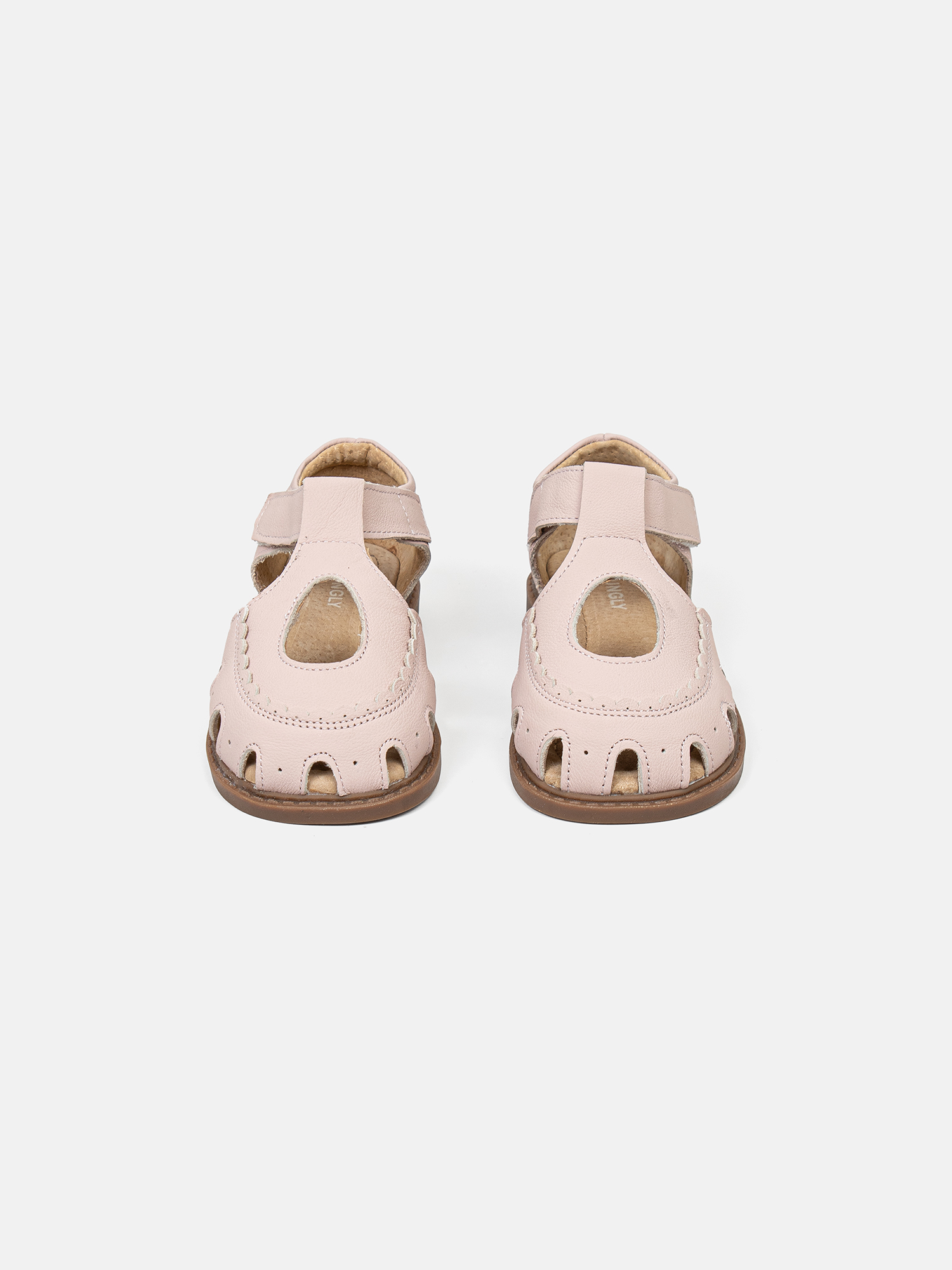 Широкий носок и закрытая носочная часть не позволит повредить пальчики малыша при ходьбе.