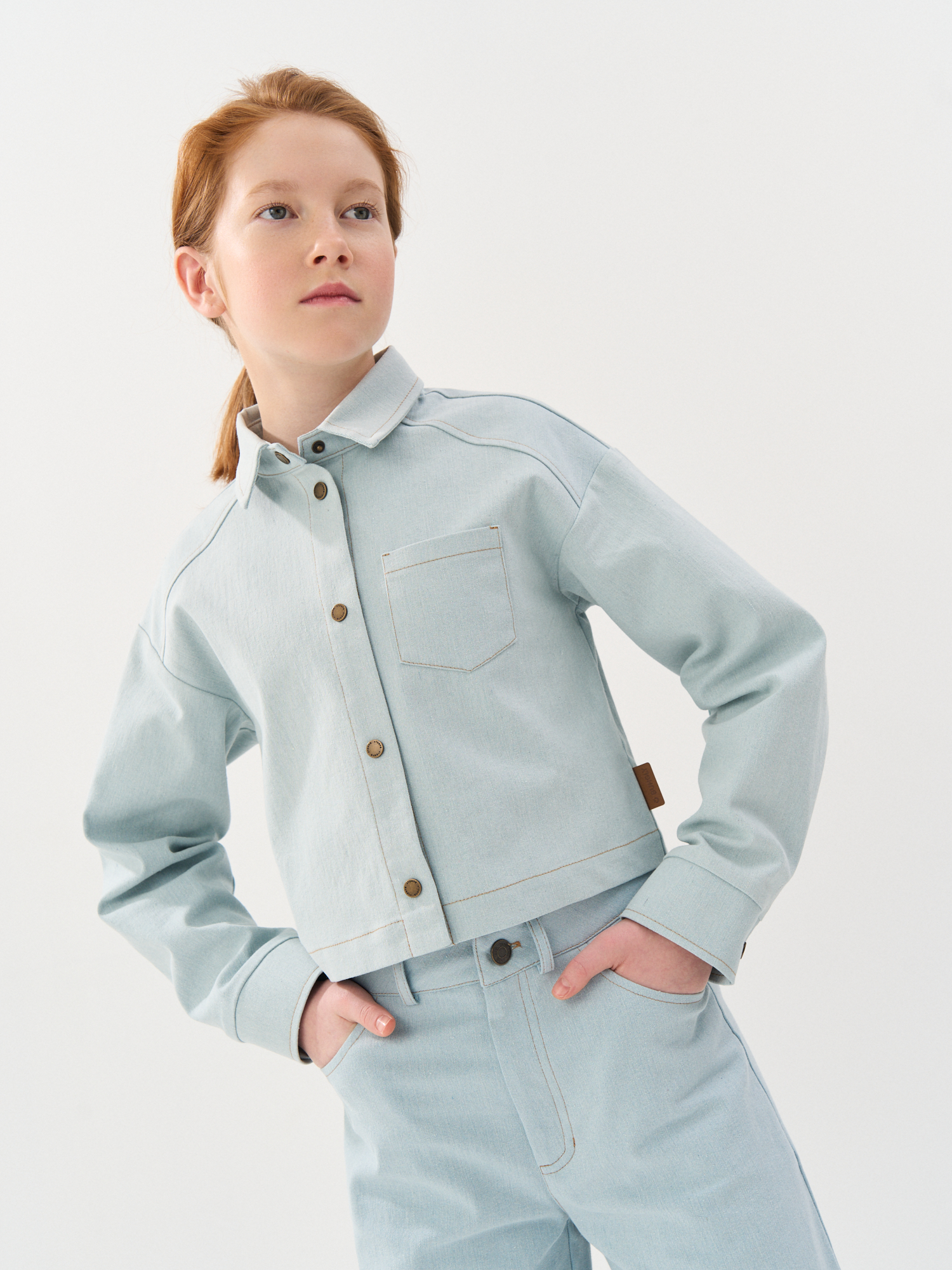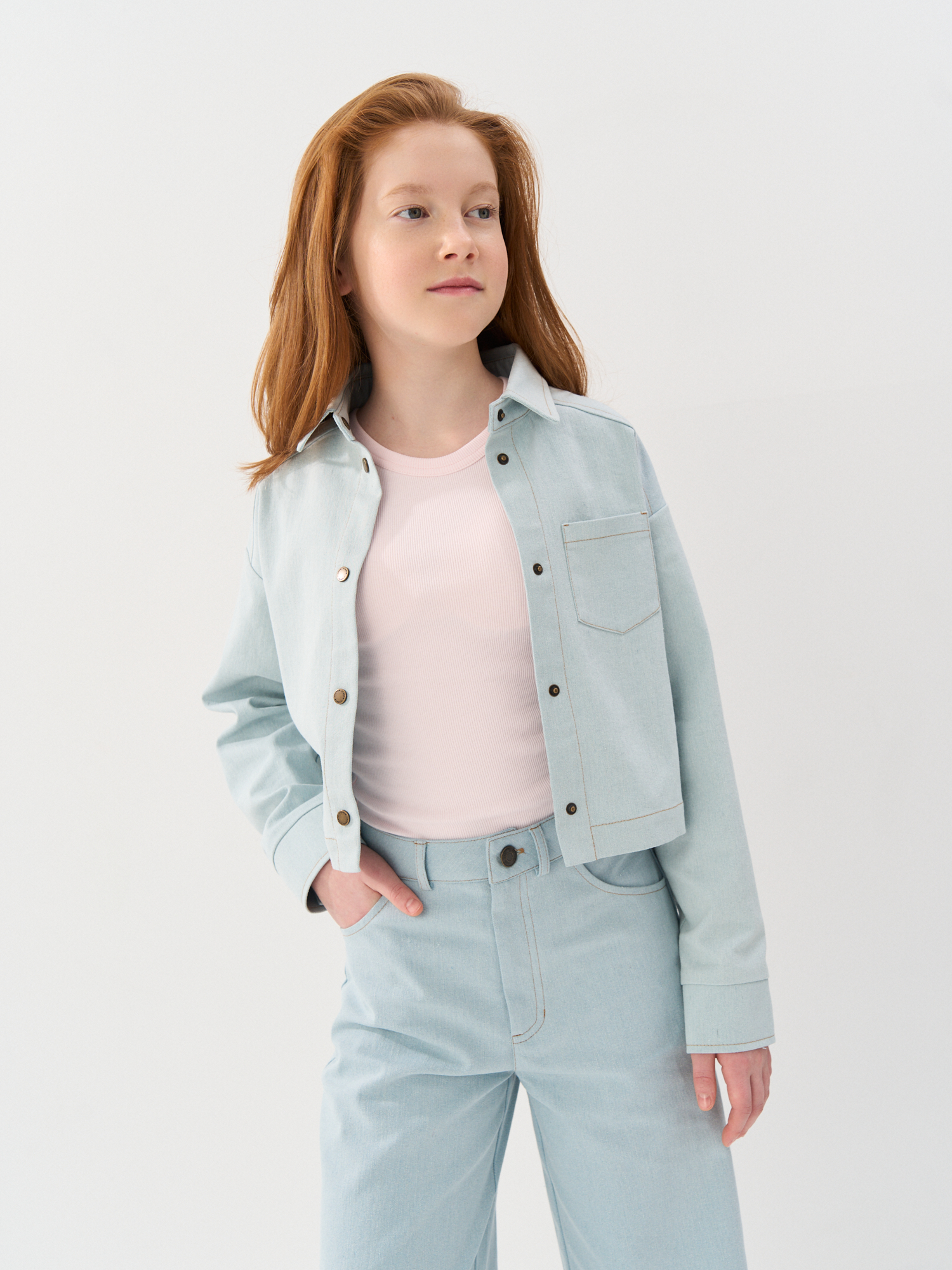 Укороченная джинсовая рубашка для девочек на каждый день.