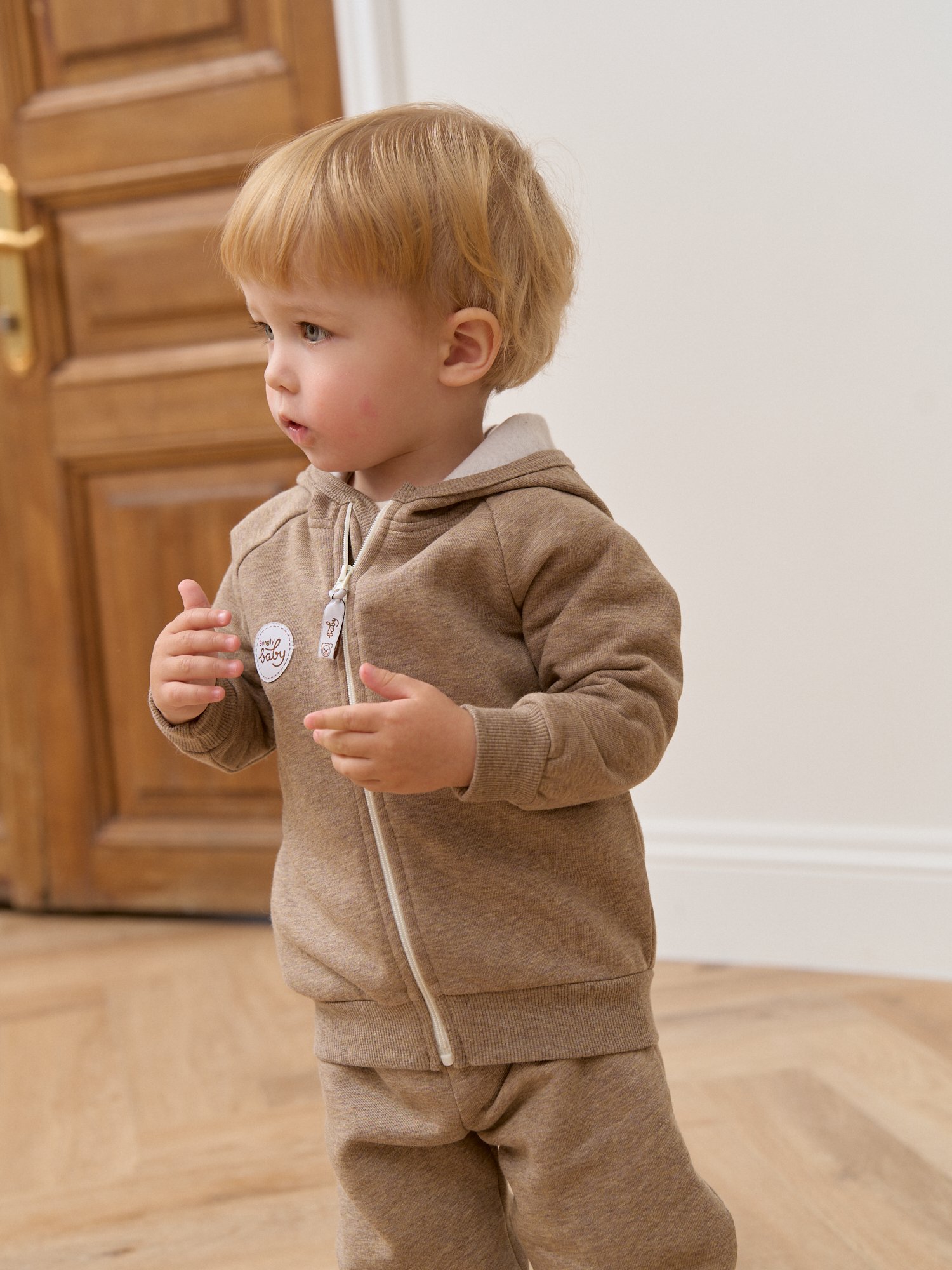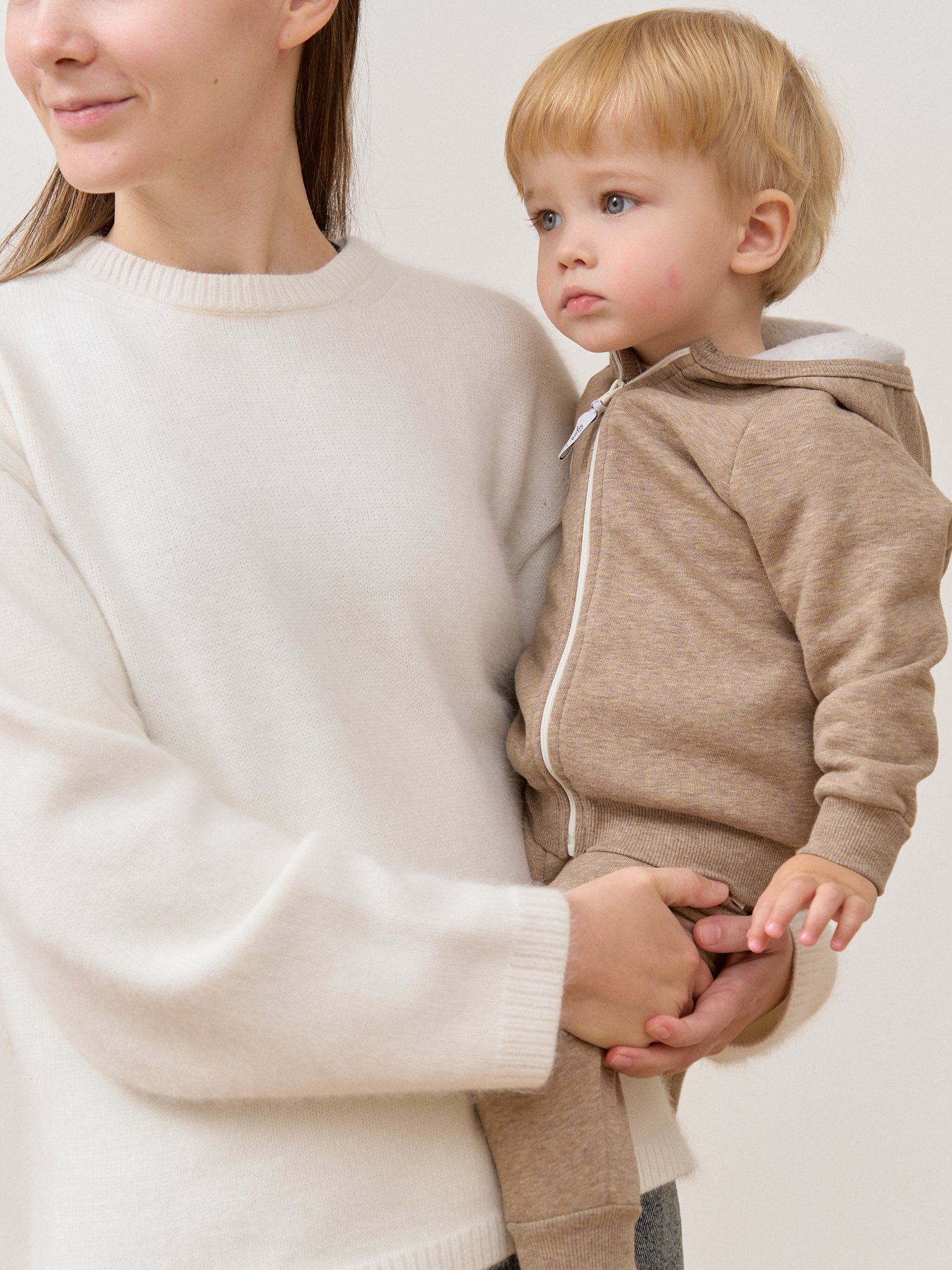 Эластичный пояс по низу из кашкорсе помогает толстовке хорошо сидеть даже во время активных игр.