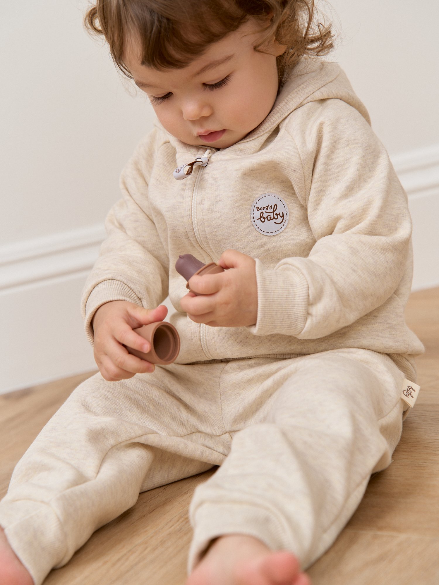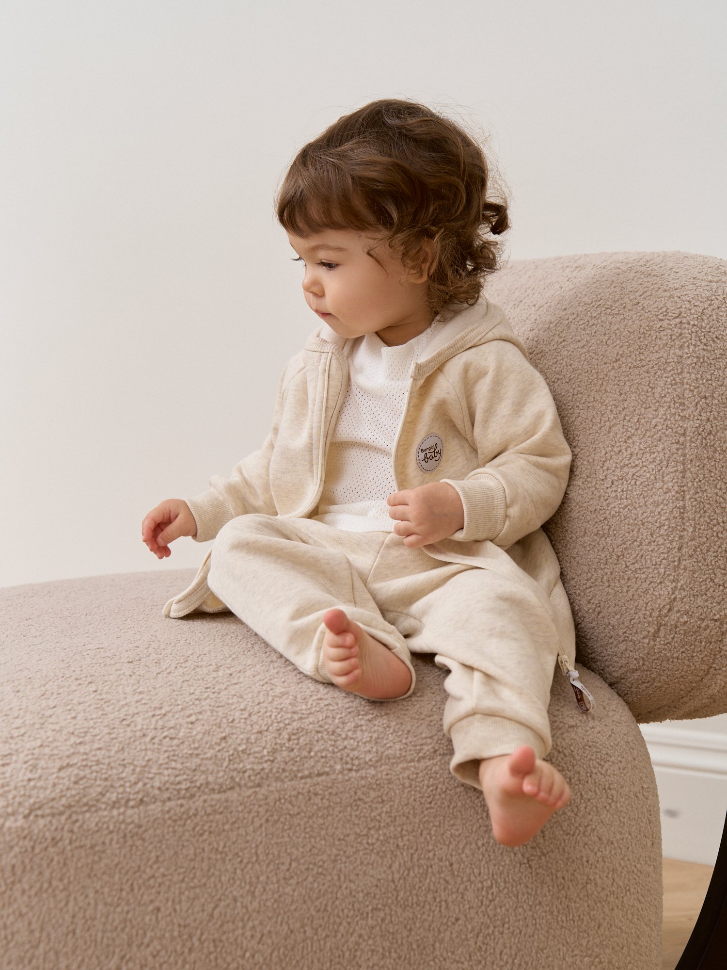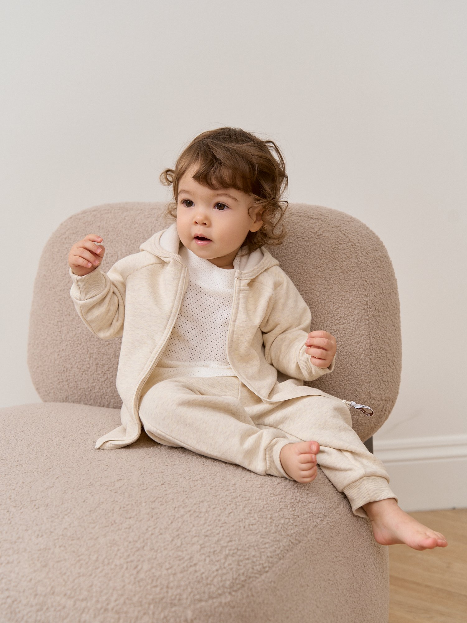 Эластичный пояс по низу из кашкорсе помогает толстовке хорошо сидеть даже во время активных игр.