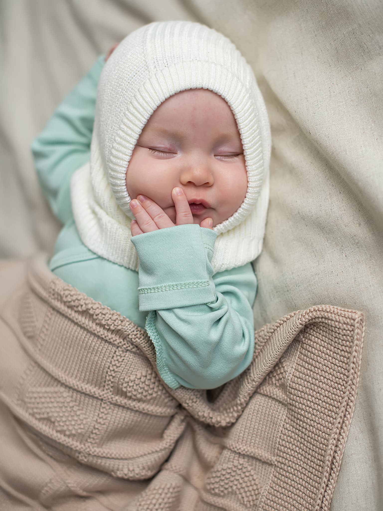 Около лица - вязаная бейка.
