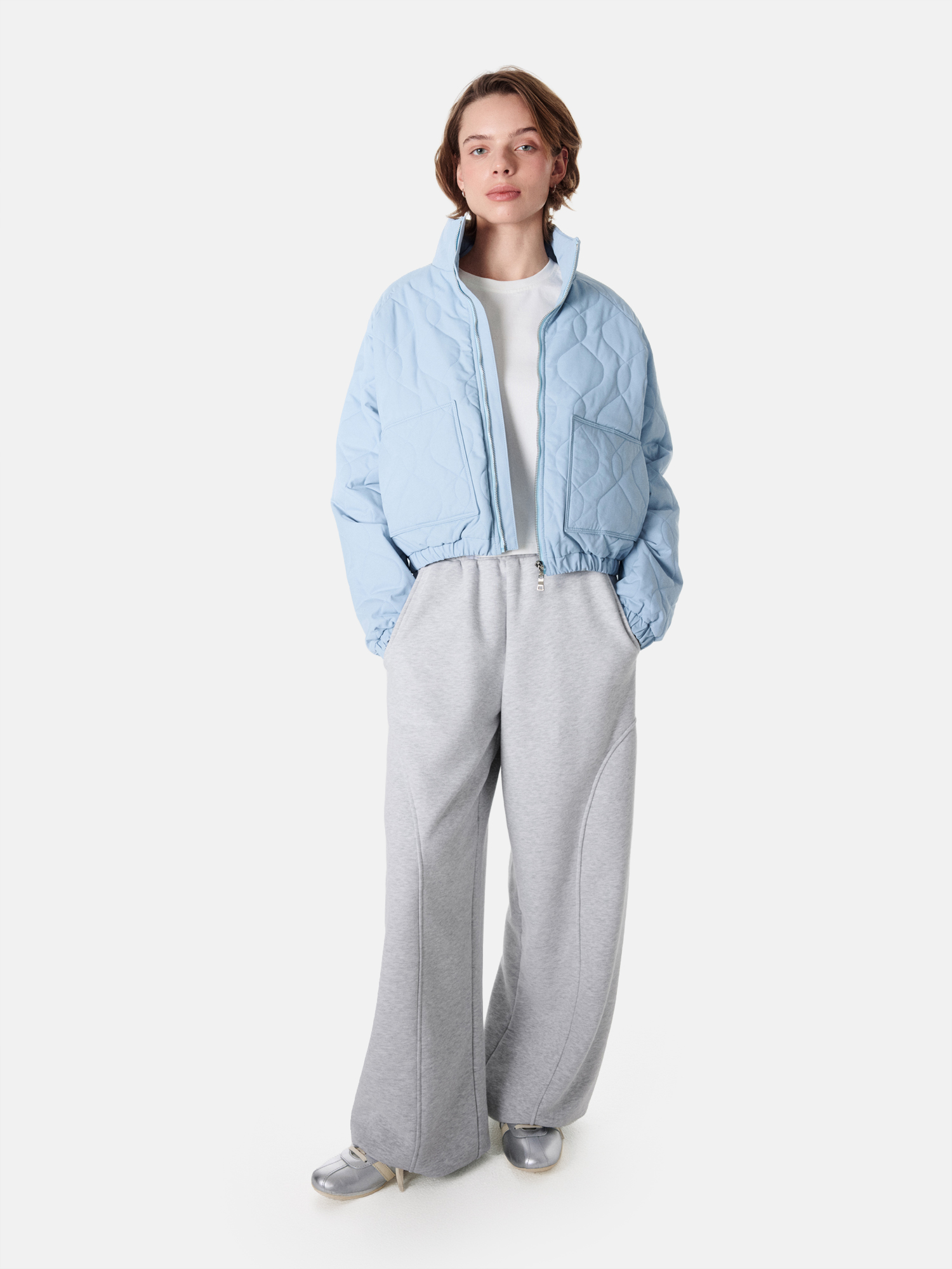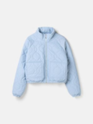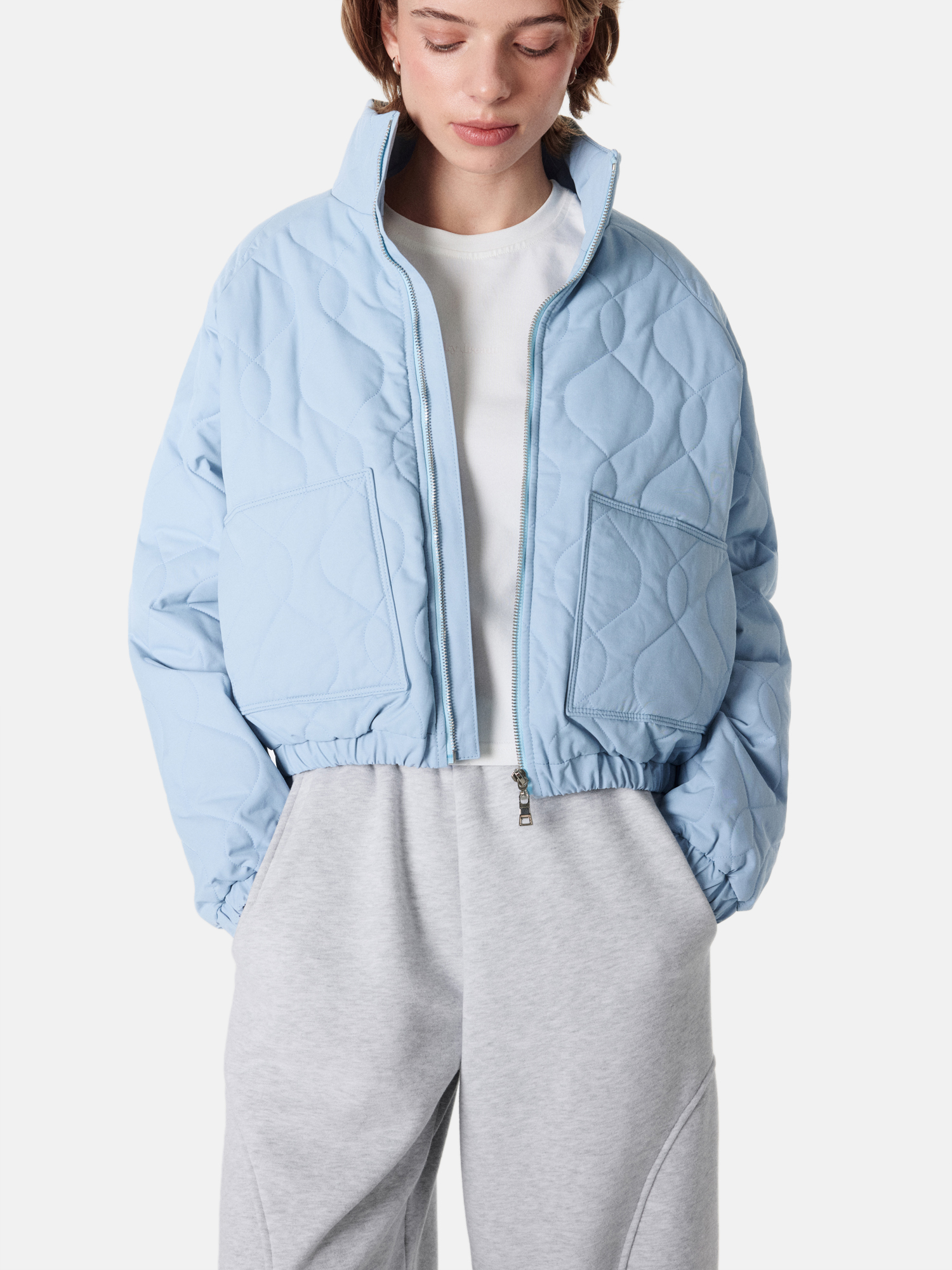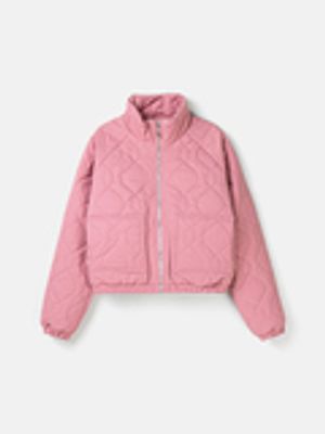 Женская укороченная стёганая куртка на молнии.